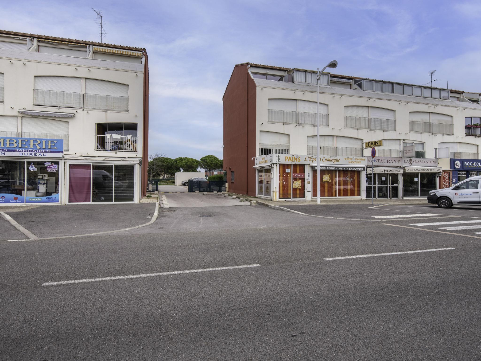 Residenz "Le Marlin", auf 3 Stockwerken. Im Ortsteil le Palais de la Mer, 800 m vom Meer, 800 m vom Strand. Zur Mitbenutzung: Tennis, Boccia, Parkplatz (beschränkte Anzahl). Einkaufsgeschäft 200 m, Lebensmittelgeschäft 50 m, Supermarkt 150 m, Einkaufszentrum 350 m, Restaurant, Bar, Café 50 m, Bushaltestelle "HLM" 550 m, Bahnstation 2 km, Sandstrand "Plage Nord", Freibad 2.2 km, Thermalbad "Thalazur Port Camargue" 4.6 km. Sporthafen 2.3 km, Minigolf 700 m, Reitstall 2 km, Kinderspielplatz 700 m. Nahe gelegene Sehenswürdigkeiten: Casino Flamingo 350 m, Seaquarium 1.4 km, Arènes du Grau du roi 3.2 km. Wandergebiete: P13. Bitte beachten: Die Schlüsselübergabe findet bei der Agentur Interhome in Port Camargue statt, 2 km. Flugplatz 24 km vom Haus.
