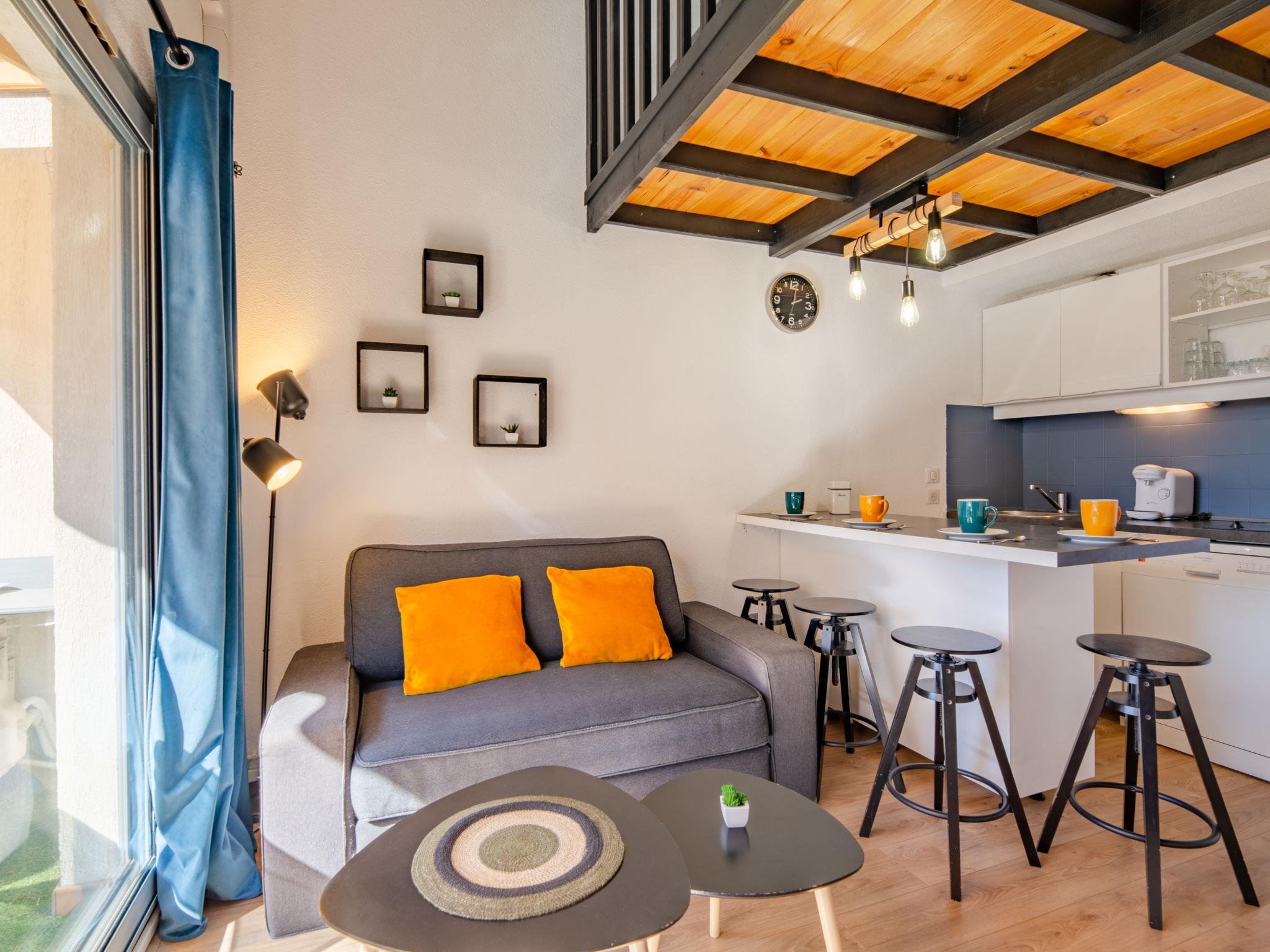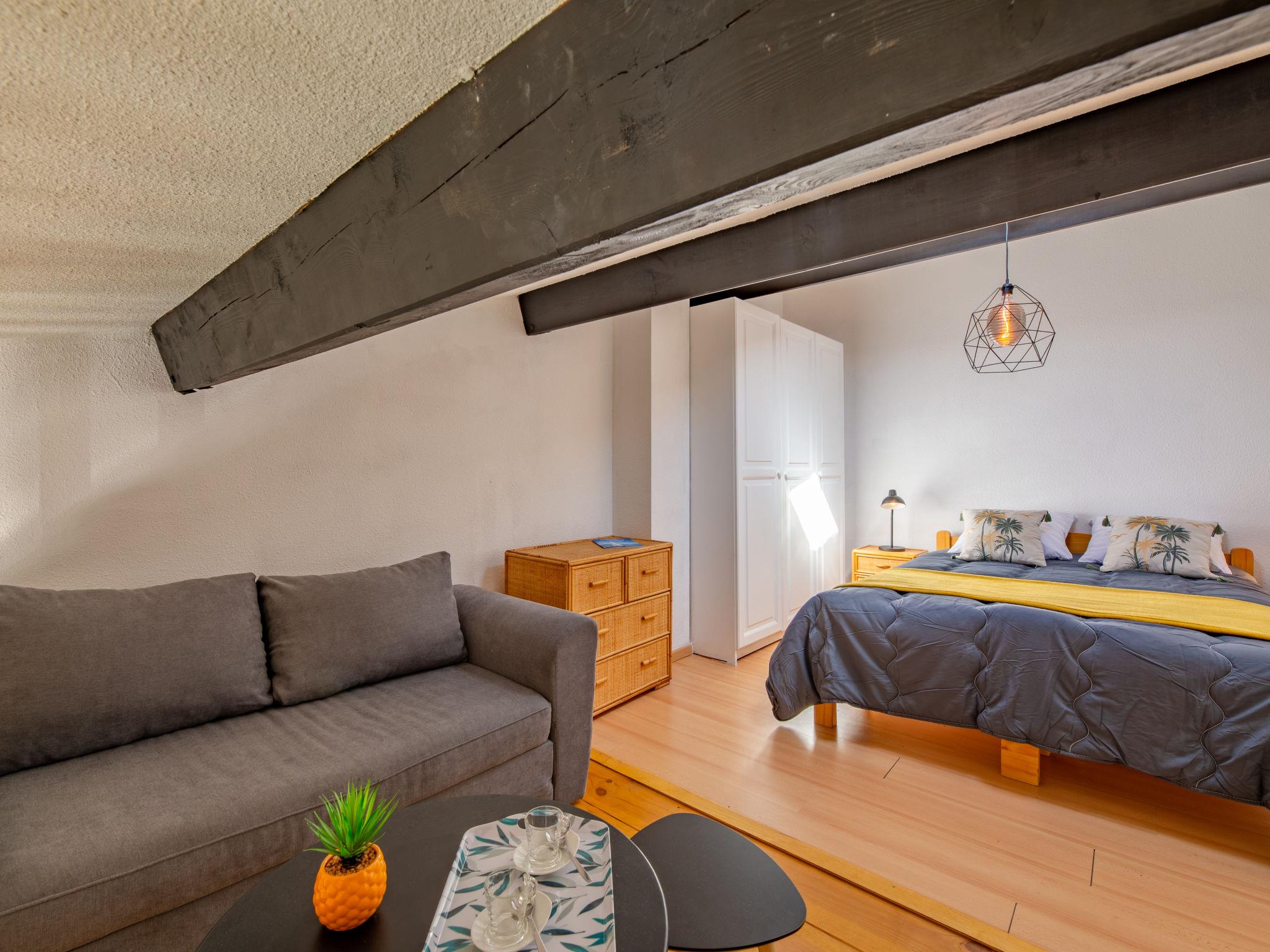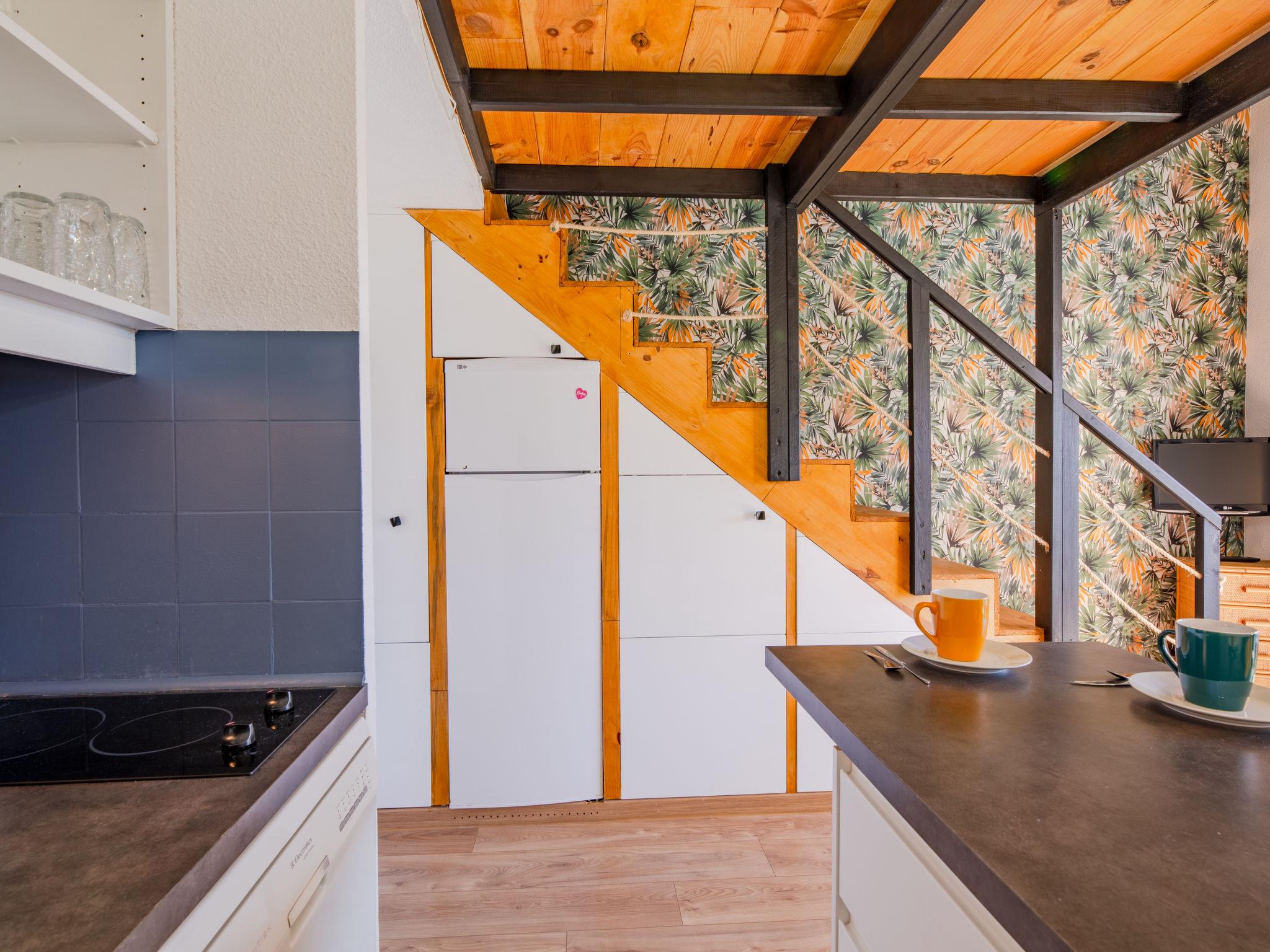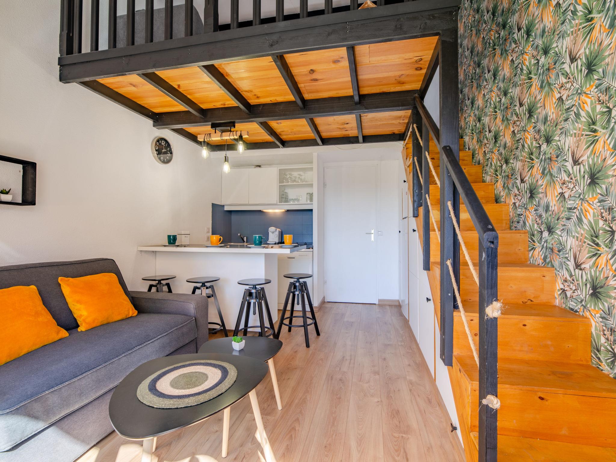 2-Zimmer-Studio 28 m2 auf 2 Stockwerken im 1. Stock, Westlage. Einfach und komfortabel eingerichtet: Wohn-/Esszimmer mit TV (Flachbildschirm). Ausgang zum Balkon. Eingang mit 1 x 2 Etagenbetten (70 cm, Länge 190 cm). Kleine, offene Küche (Geschirrspüler, 2 Induktionskochplatten, Toaster, Wasserkocher, Mikrowelle, Tiefkühler, elektrische Kaffeemaschine). Bad/WC. Klimaanlage, Warmluftheizung. Obergeschoss: 1 abgeschrägtes, offenes Zimmer mit 1 franz. Bett (140 cm, Länge 190 cm). Kleiner Balkon 8 m2, Westlage. Balkonmöbel. Sicht auf den Garten. Zur Verfügung: Waschmaschine, Bügeleisen, Haartrockner. Internet (WLAN, gratis). Parkplatz Nr. 120 (eingezäunt). Bitte beachten: Nichtraucher-Unterkunft. Rauchmelder, kein Fahrstuhl. Inserat einer Privatperson nach Artikel 155, IV, CGI. 83107002563JB