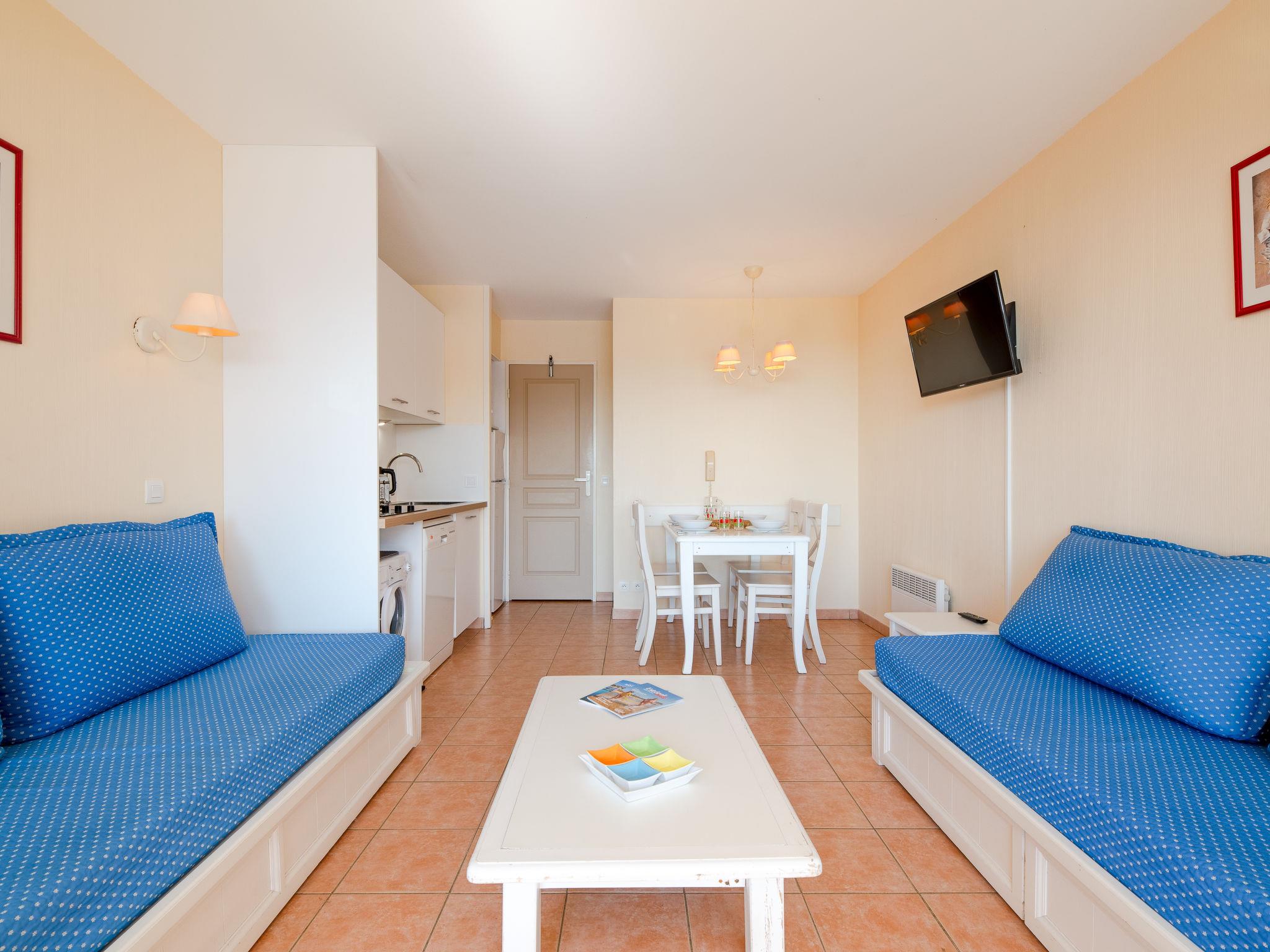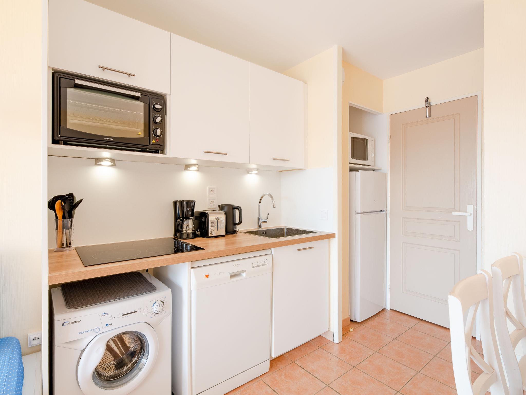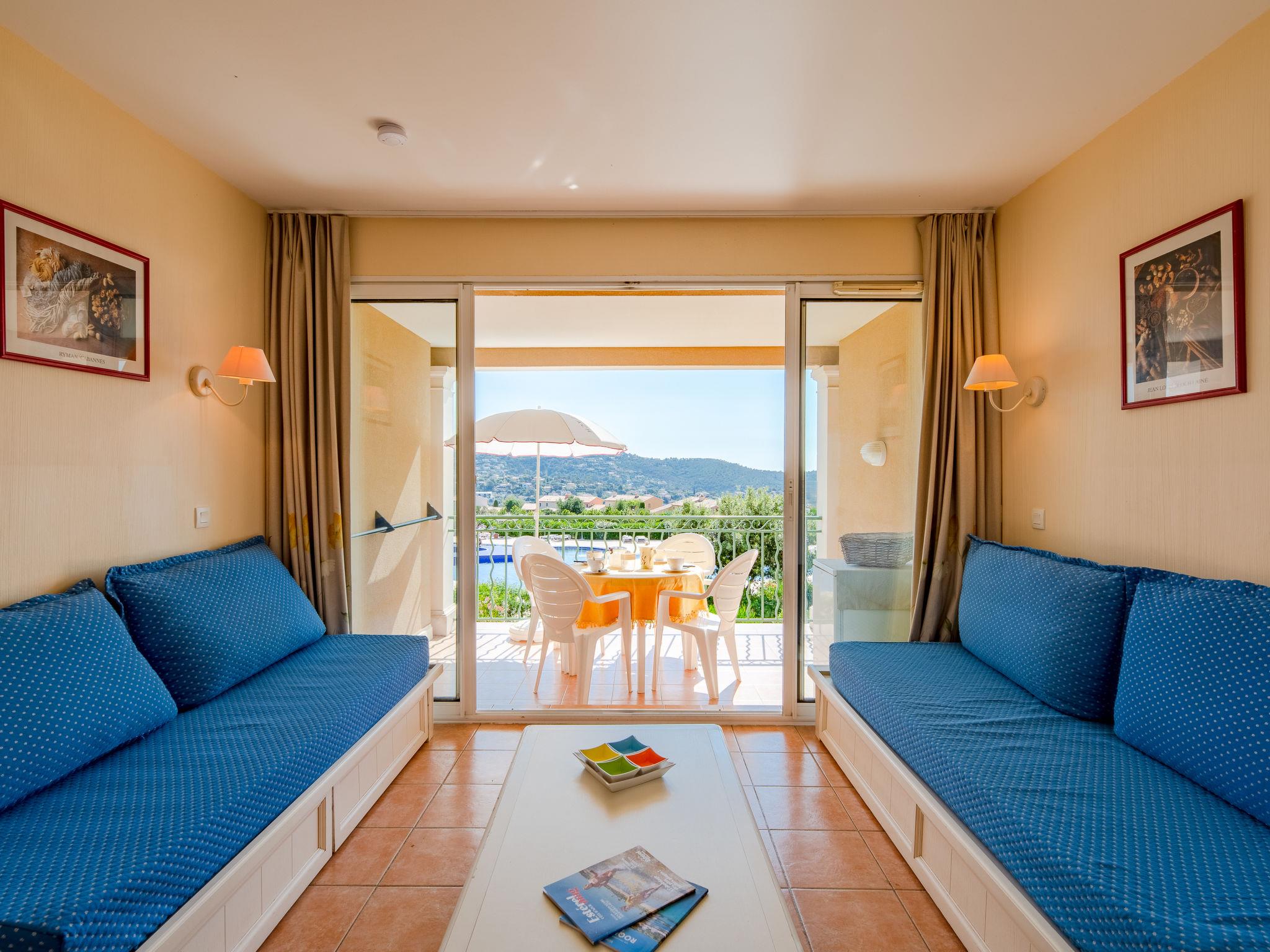2-Zimmer-Wohnung 32 m2 im 1. Stock. Einfach und zweckmässig eingerichtet: Wohn-/Esszimmer mit 2 Betten (80 cm, Länge 190 cm), Klimaanlage. Ausgang zur Terrasse. 1 Zimmer mit 1 franz. Bett (140 cm). Kochnische (Mini-Backofen, Geschirrspüler, 4 Glaskeramikplatten, Toaster, Wasserkocher, Mikrowelle, Tiefkühler, elektrische Kaffeemaschine) mit TV. Dusche, sep. WC. E-Heizung. Terrasse. Schöne Sicht auf das Meer und das Schwimmbad. Zur Verfügung: Waschmaschine, Bügeleisen. Internet (WLAN, extra). Parkplatz beim Haus. Bitte beachten: Nichtraucher-Unterkunft. Maximal 1 kleines Haustier/Hund erlaubt. Rauchmelder, kein Fahrstuhl. 83107 000393 SX
