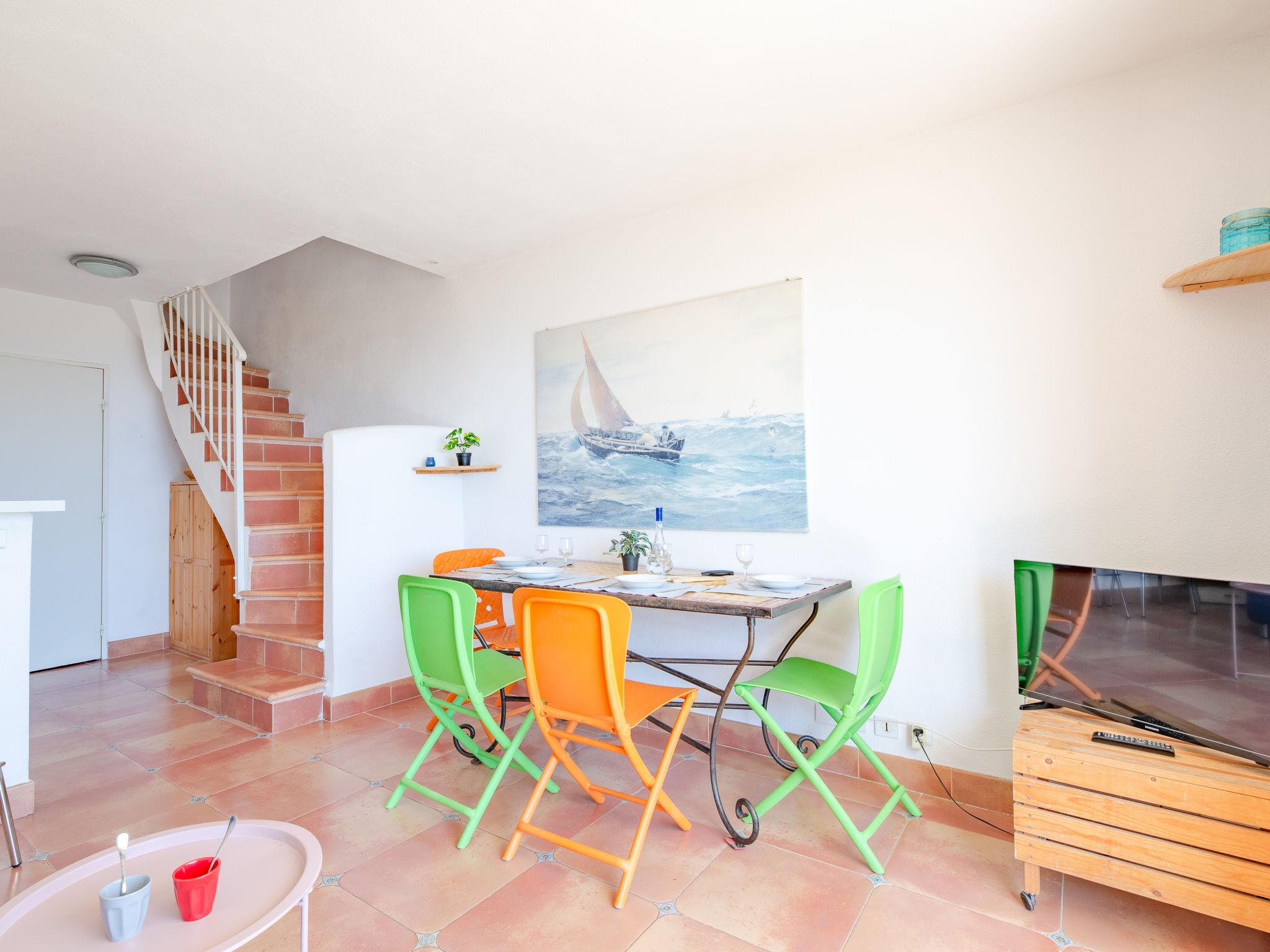 3-Zimmer-Reihenhaus 38 m2 auf 2 Stockwerken. Einfach eingerichtet: Wohn-/Esszimmer mit TV. Ausgang zur Terrasse, zum Gartensitzplatz. Kleine Kabine 3 m2 mit 1 x 2 Etagenbetten (80 cm, Länge 185 cm). Kochnische (3 Kochplatten, Toaster, Wasserkocher, Mikrowelle, elektrische Kaffeemaschine). Sep. WC. Obergeschoss: 1 kleines Zimmer mit 2 Betten (90 cm, Länge 200 cm). Ausgang zum Balkon. Bad, sep. WC. E-Heizung. Balkon 9 m2, Südostlage, Terrasse 9 m2, Südostlage, Gartensitzplatz 5 m2. Terrassenmöbel. Sicht auf das Meer und die Landschaft. Zur Verfügung: Internet (WLAN, extra). Garage Nr. 15, Höhe 242 cm, Breite 190 cm. Bitte beachten: Nichtraucher-Unterkunft. Maximal 1 Haustier/Hund erlaubt. Rauchmelder. Zugang zur Wohnung über Stufen. 83107000178E1