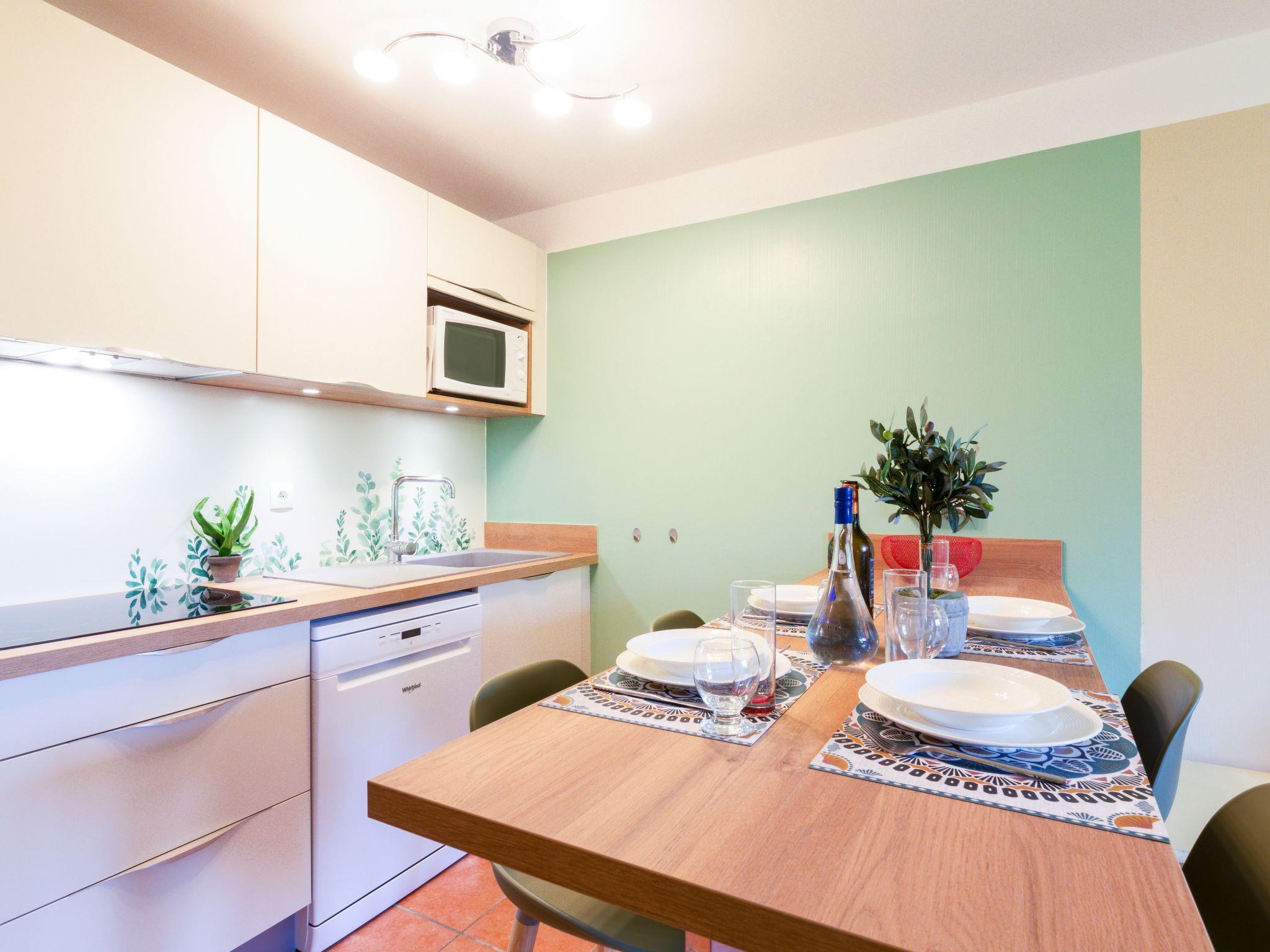 2-Zimmer-Wohnung 35 m2, im Erdgeschoss. Schön eingerichtet: Wohn-/Esszimmer mit 2 Betten (80 cm, Länge 190 cm), TV (Flachbildschirm). Ausgang zur Terrasse. 1 Zimmer mit begehbarem Kleiderschrank mit 1 Doppelbett (1 x 140 cm, Länge 190 cm). Ausgang zur Terrasse. Offene Küche (Geschirrspüler, 1 Induktionskochplatten, 3 Flammen, Toaster, Wasserkocher, Mikrowelle, elektrische Kaffeemaschine). Bad, Dusche, sep. WC. E-Heizung. Terrasse 4 m2. Terrassenmöbel, Elektrogrill. Zur Verfügung: Waschmaschine. Internet (WLAN, extra). Parkplatz. Bitte beachten: Nichtraucher-Unterkunft. Rauchmelder. Inserat einer Privatperson nach Artikel 155, IV, CGI. 83107000470VK