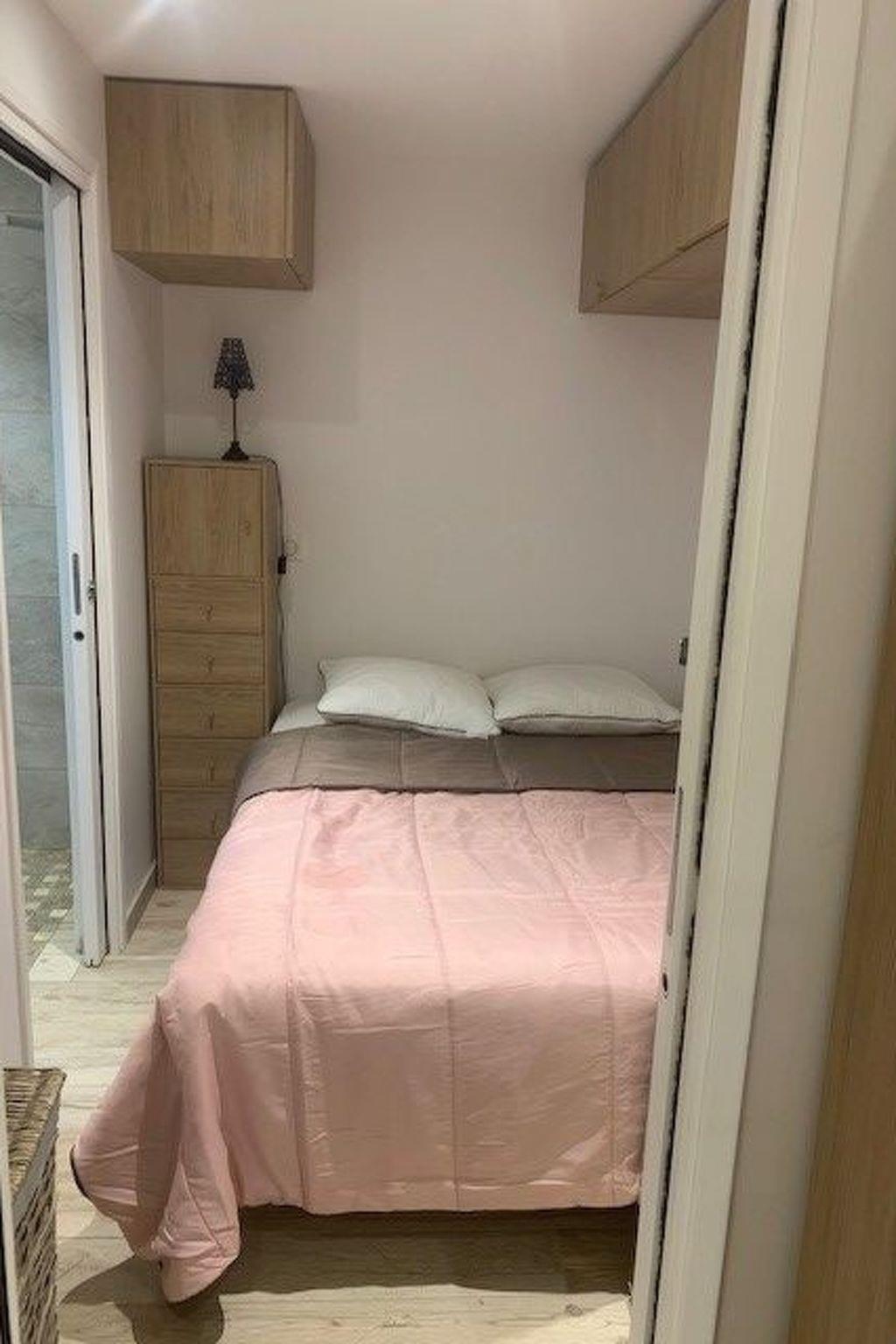 Im Inneren verfügen Sie über ein Schlafzimmer mit 2 Betten und einem angrenzenden Badezimmer mit italienischer Dusche. Das WC (hängend) ist vom Badezimmer getrennt.