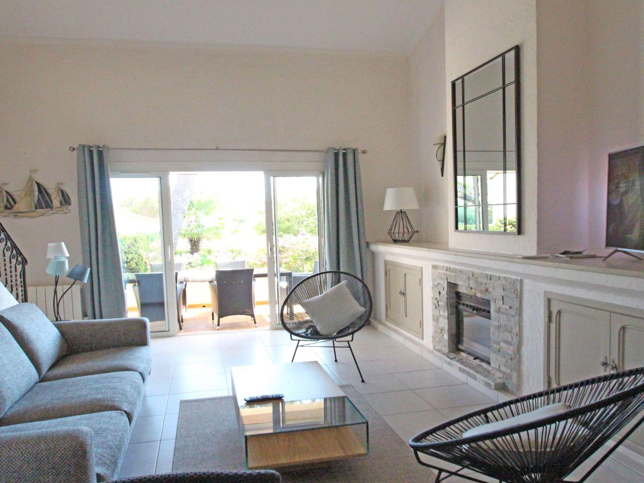 - Schöner Wohnraum mit Zugang nach draußen, aufgeteilt in 2 Bereiche: Wohnzimmer mit Sofa und 2 Sesseln, die alle Gäste aufnehmen können, großer TV-Bildschirm und Essbereich für 6 Personen.