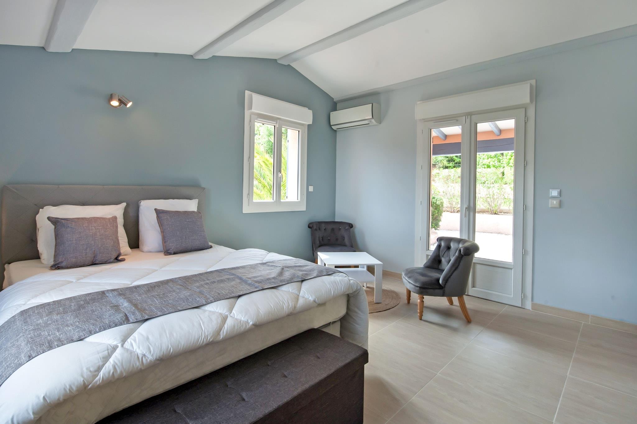 Genießen Sie einen ruhigen Aufenthalt in dieser wunderschönen, geräumigen Villa in Les Issambres, die speziell für große Familien entworfen wurde. Dieses luxuriöse, kürzlich renovierte Haus verfügt über eine Sauna und einen beheizten Pool (vom 15. März bis 15. Oktober), der mit kontrolliertem Zugang für die Eltern gesichert ist und eine Außendusche bietet. Die mit einer Sommerküche mit Kühlschrank und Plancha ausgestattete Terrasse ist für Familienmahlzeiten mit herrlichem Meerblick möbliert. Im Inneren gibt es eine Sauna mit Dusche und separatem WC, einen Fitnessraum mit Zubehör für Yogamatten, Laufbänder und Air Bike, ein Wohnzimmer mit TV, Büchern, Gesellschaftsspielen und Billardtisch. Die Kinder können sich mit der Schaukel und der Rutsche im Garten vergnügen, aber auch im Zwischengeschoss, das mit Spielen, Büchern und Spielzeug ausgestattet ist. Für Babys stehen Ihnen Geschirr, ein Babybett (das vom Hausmeister in das von Ihnen gewünschte Zimmer umgestellt werden kann, bitte fragen Sie ihn im Voraus), ein Hochstuhl, ein Laufgitter (90*90), ein Wickeltisch, ein Töpfchen, ein Toilettenverkleinerer und ein Kinderwagen mit Liegeposition für die Kleinsten zur Verfügung. Das Haus ist voll klimatisiert (außer im Untergeschoss, wo sich die Sauna und der Fitnessraum befinden); Die fünf Schlafzimmer sind mit hochwertiger Bettwäsche ausgestattet; Die vier Elternsuiten mit jeweils eigenem Badezimmer bieten Ihnen einen herrlichen Blick auf das Meer. Im Erdgeschoss bietet eine von ihnen einen direkten Zugang zum Pool und im Obergeschoss verfügt eine von ihnen über eine eigene Terrasse. Es gibt zwei Strände in der Nähe und Sie können alle Ihre Einkäufe im 2,5 km entfernten Supermarkt erledigen. In 3,5 km Entfernung finden Sie das Zentrum von Saint Aygulf mit Reitmöglichkeiten. Der See Etang de Villepey ist 5 km entfernt und das Stadtzentrum von Les Issambres ist 6 km entfernt. Roquebrune sur Argens, wo Sie Golf spielen können, ist 9 km entfernt. Sie können bis zu 4 Autos kostenlos parken. Unser diskreter, aber bei Bedarf verfügbarer Hausmeister wohnt auf dem Grundstück und steht Ihnen gerne mit Informationen zur Seite. Zögern Sie nicht, ihn zu fragen, denn er kennt die Gegend sehr gut.