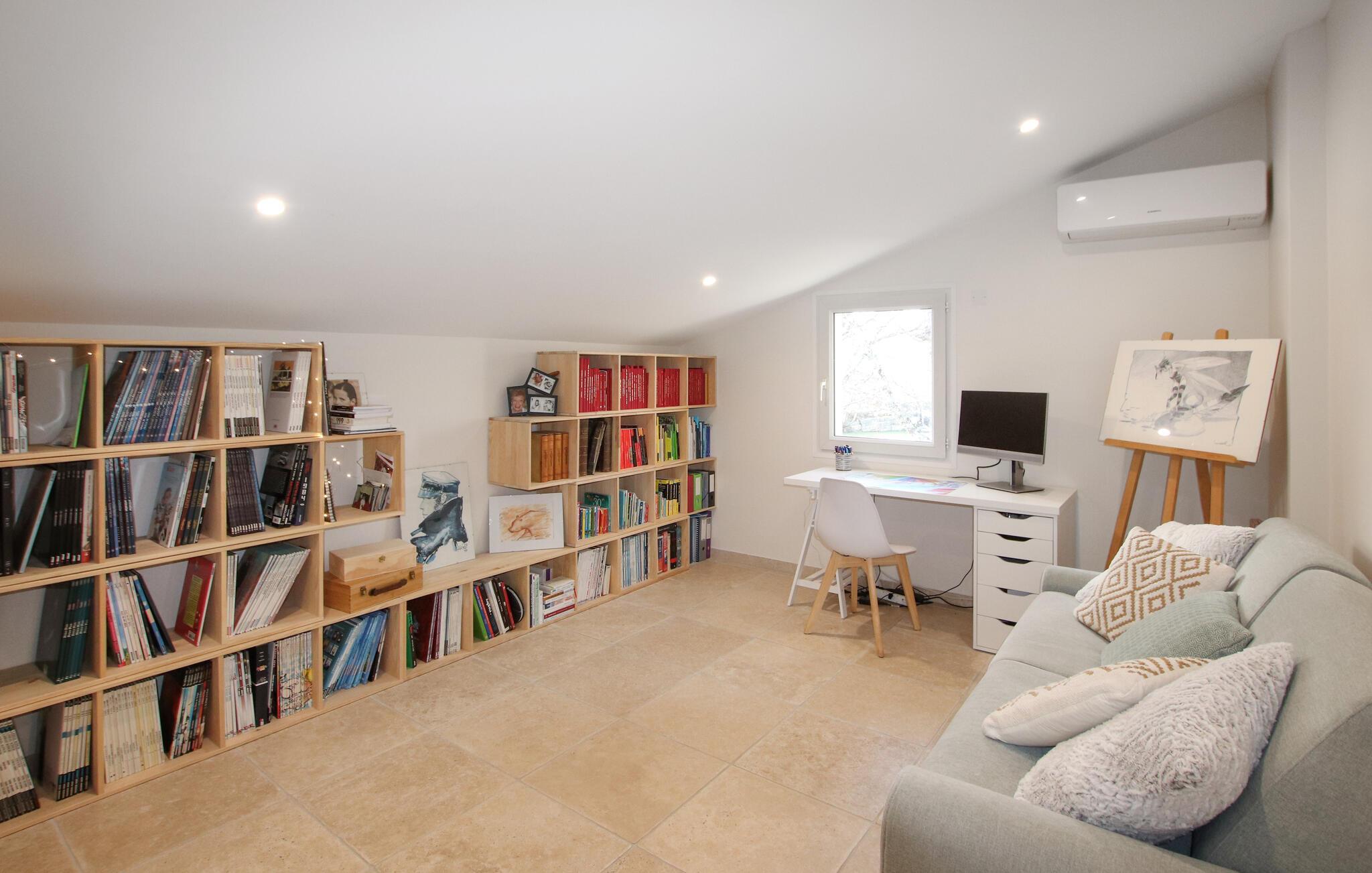 Auf dem Land, inmitten von Weinbergen, liegt dieses schöne, moderne Ferienhaus mit seinem hübschen, großen Privatpool, der durch eine reizende Sommerküche verlängert wird. Spazieren Sie auch in dem großen, romantischen und bukolischen Park mit großen, alten Bäumen, der eine reizende Terrasse mit natürlichem Schatten beherbergt, wo Sie mit einem Buch eine ruhige Zeit verbringen können.