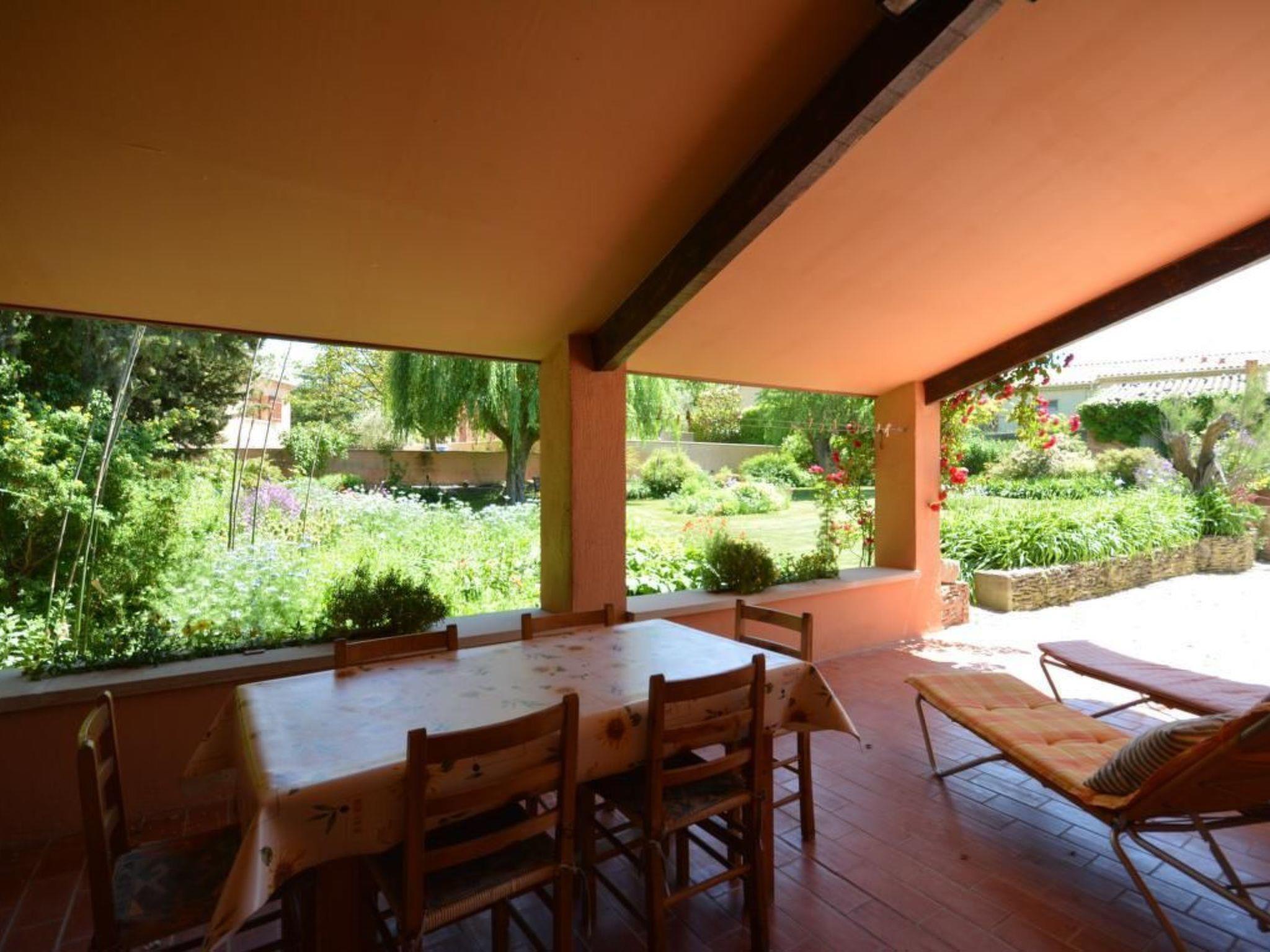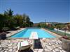 Sie teilen sich die Außenbereiche mit den Eigentümern, darunter ein 11 x 5,5 Meter großer Pool und ein 2500 Quadratmeter großer Garten mit Blumenbeeten, Grill, Gartenmöbeln und einer Tischtennisplatte. Die 25 m² große überdachte Außenterrasse ist nur für die Mieter und kann nicht mitbenutzt werden. Sie finden einen Parkplatz vor dem Haus.