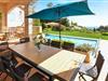 Am Rande Ihres privaten Außenpools umgeben von einer großen Grünfläche können Sie sich auf den Sonnenliegen in der Sonne baden und auf der überdachten Terrasse gemütlich Ihre Mahlzeiten zu sich nehmen.