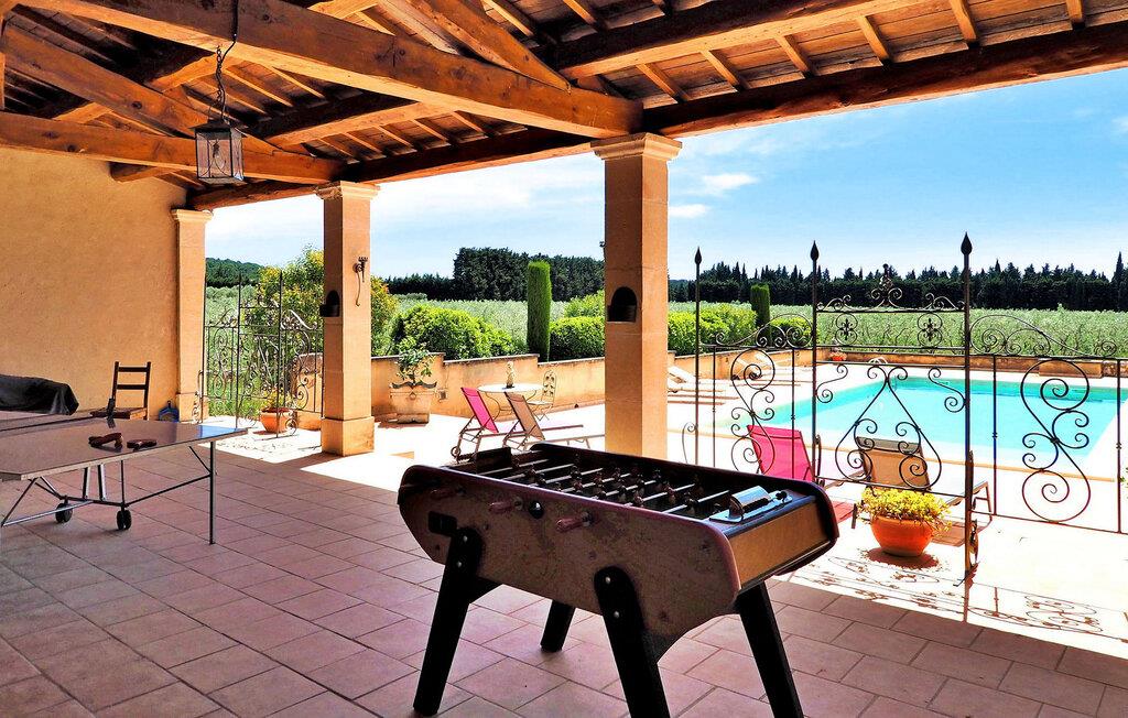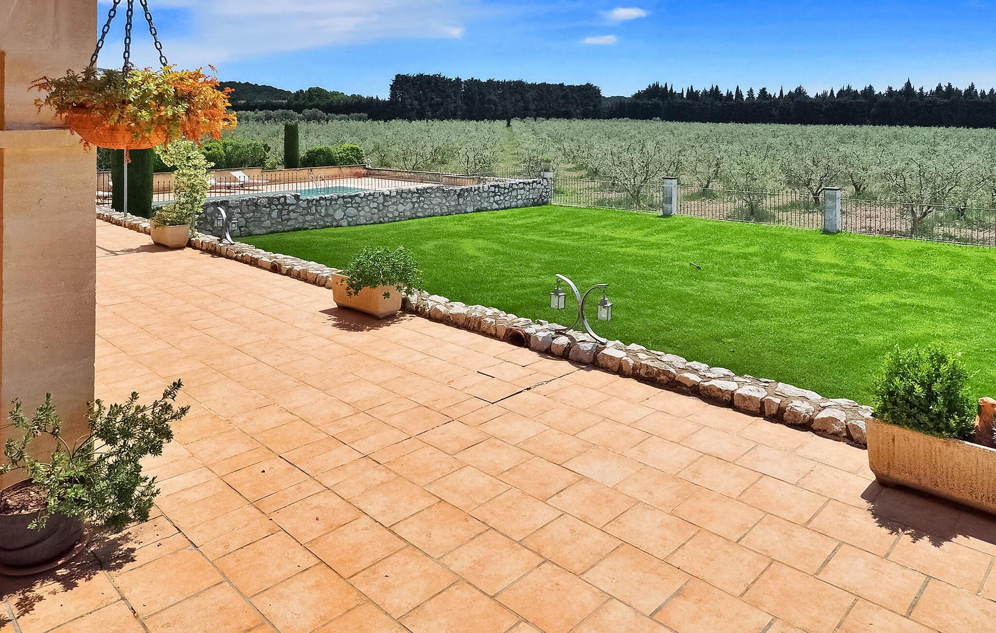 Inmitten eines bezaubernden Olivenhains gelegen, lädt dieses charmante Bauernhaus zu einem ruhigen Urlaubsort ein. Dieses Bauernhaus liegt nur 2,5 km vom hübschen Dorf Maussane entfernt und ist eine idyllische Oase auf dem Land. Dieses Urlaubsparadies bietet eine Reihe herrlicher Annehmlichkeiten für einen komfortablen Aufenthalt. Im Erdgeschoss befindet sich eine einladende offene Küche, die zu einer überdachten Terrasse mit Grill und Essbereich im Freien führt. Der Wohn- und Essbereich strahlt mit seinen bequemen Sitzgelegenheiten und Unterhaltungsmöglichkeiten Wärme aus. Im ersten Stock befinden sich auf dem Treppenabsatz zwei Klimaanlagen, die die Schlafzimmer auf dieser Ebene erfrischen. Draußen liegt das Anwesen inmitten eines umzäunten Gartens inmitten eines weitläufigen Olivenhains. Es erwartet Sie ein privater, geschlossener Pool mit einer Größe von 13 x 6 m und einem flachen Planschbereich, der zu einem tieferen Bereich führt. Überdachte Terrassen mit Gartenmöbeln, Grill, Plancha, Tischtennis und Tischfußball sorgen für herrliche Momente im Freien. Zu den weiteren Angeboten gehören kostenloses Olivenholz für den Grill vom gastfreundlichen Eigentümer und die Möglichkeit, den Olivenhain unter Anleitung des Eigentümers zu erkunden. Gäste können sich mit Sébastien, einem begeisterten Reiter, auf eine unvergessliche Reise durch die Alpilles begeben (Bedingungen gelten vor Ort). Der Zugang zum Bauernhaus erfolgt über eine Sandstraße, was den rustikalen Charme der Umgebung noch verstärkt. Das Bauernhaus liegt im Herzen eines Olivenhains auf dem Land, 2,5 km vom charmanten Dorf Maussane mit allen Geschäften und Restaurants entfernt. Maussane ist ein charmantes provenzalisches Dorf am Fuße der Alpilles in der Provence, Markt am Donnerstagmorgen. Auf dem Dorfplatz mit vielen Restaurants können Sie lokale Spezialitäten wie Tapenade, Olivenöl, Ziegenkäse und Weine probieren.
