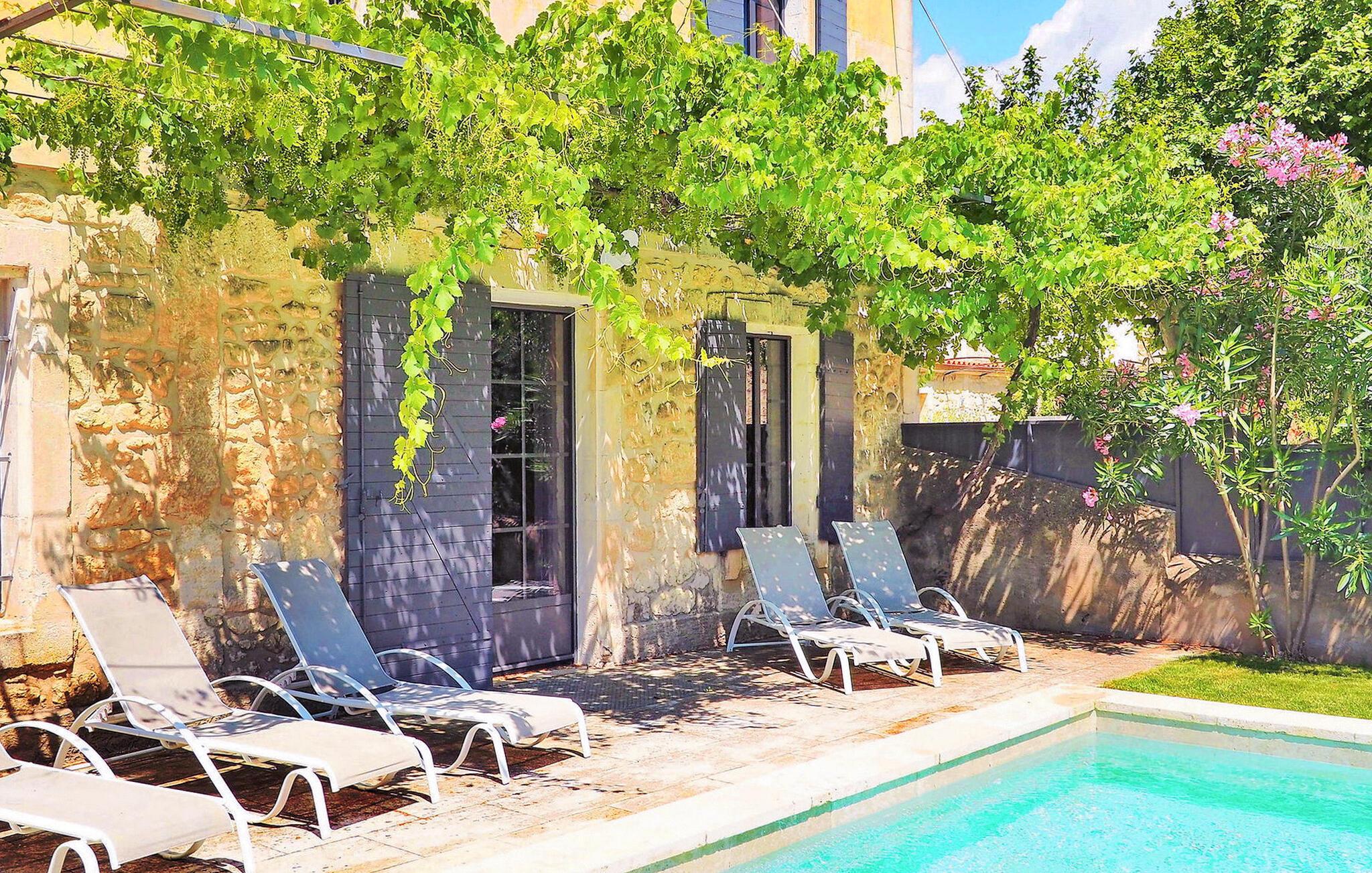 Das entzückende Ferienhaus in Maussane les Alpilles ist ein charmanter Rückzugsort im Herzen des Dorfes. Dieses klimatisierte Haus verfügt über einen privaten Innenhof mit Pool und bietet den Inbegriff von Komfort und Bequemlichkeit. Alle Geschäfte, Restaurants und der nur 3 km entfernte Golfplatz Manville sind bequem zu Fuß erreichbar. Die Residenz ist auf drei Etagen aufgeteilt. Im Erdgeschoss befinden sich ein Wohnzimmer, ein Essbereich und eine gut ausgestattete Küche. Ein vielseitiges, behindertengerechtes Schlafzimmer mit eigenem Bad befindet sich ebenfalls im Erdgeschoss. Beim Aufstieg in die erste Etage finden die Gäste auf dem Treppenabsatz einen Musikbereich sowie zwei Schlafzimmer und Badezimmer. Im zweiten Stock befinden sich zwei weitere Schlafzimmer, jeweils mit eigenem Duschbad. Draußen verfügt der umzäunte Innenhof über eine Pergola und eine überdachte Terrasse. Der private, gesicherte Pool (9 x 4 m) mit Liegestühlen und einer speziellen Abdeckung, die die Wassertemperatur aufrechterhält, lädt zum Entspannen ein. Das Haus liegt im Dorfzentrum; Am Ende der Straße finden Sie den Hauptplatz mit Terrassen, Restaurants und Geschäften. Maussane ist ein charmantes provenzalisches Dorf am Fuße der Alpilles in der Provence. Auf dem Dorfplatz können Sie in den örtlichen Restaurants lokale Spezialitäten wie Tapenade, Olivenöl, Ziegenkäse und Weine probieren. Genießen Sie Ihren Urlaub in den Bouches-du-Rhône in der Provence. Bitte beachten Sie, dass das Haus an einer Nebenstraße im Dorfzentrum von Maussane liegt.