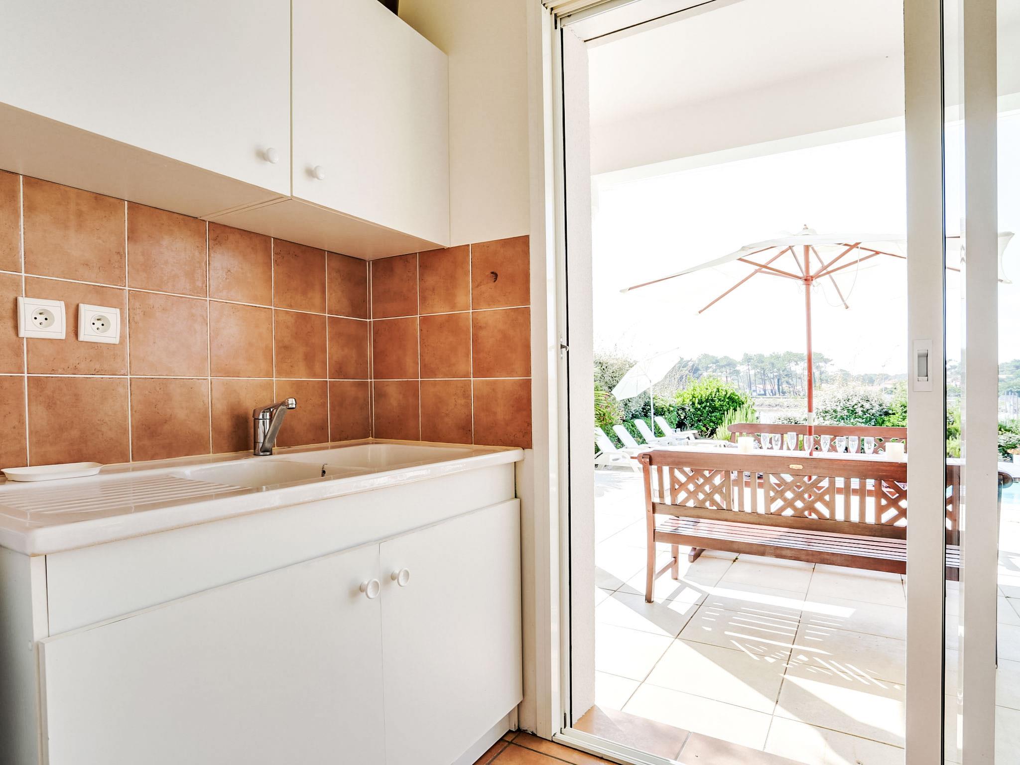 Einfamilienhaus "Les Pinasses". Im Ort, 400 m vom Zentrum von Mimizan Plage, 900 m vom Meer, 900 m vom Strand, 200 m vom Fluss. Zur Alleinbenutzung: Grundstück 750 m2, gepflegter Garten Rasen und Bäumen, Schwimmbad (9 x 5 m, saisonale Verfügbarkeit: 14.Mai. - 24.Sep.) mit Alarmanlage. Aussendusche, Parkplatz auf dem Grundstück, Einzelgarage. Supermarkt 400 m, Bushaltestelle 500 m, Bahnstation "Labouheyre" 30 km, Sandstrand 900 m, Hallenbad 6 km, Badesee "Aureilhan" 10 km. Golfplatz (9 Loch) 6 km, Surfschule 900 m, Reitstall 7 km. Nahe gelegene Sehenswürdigkeiten: Arcachon 70 km, Bordeaux 120 km, Biscarosse 40 km, Centre Nautique 7 km, Casino Mimizan Plage. Wandergebiete: Casino Mimizan Plage. Bitte beachten Sie: Schrägboden.