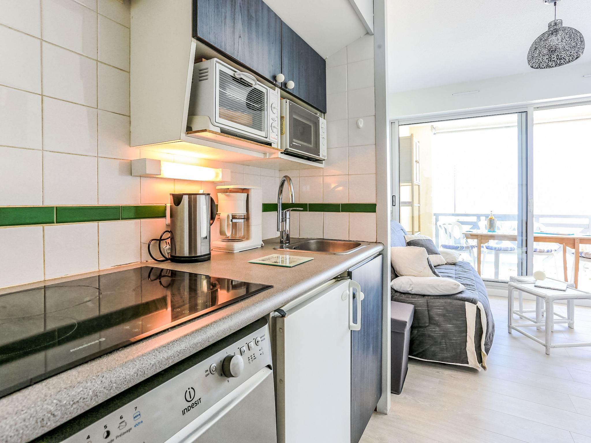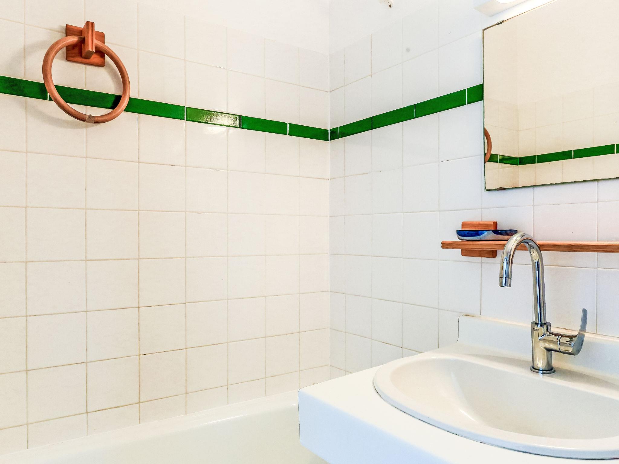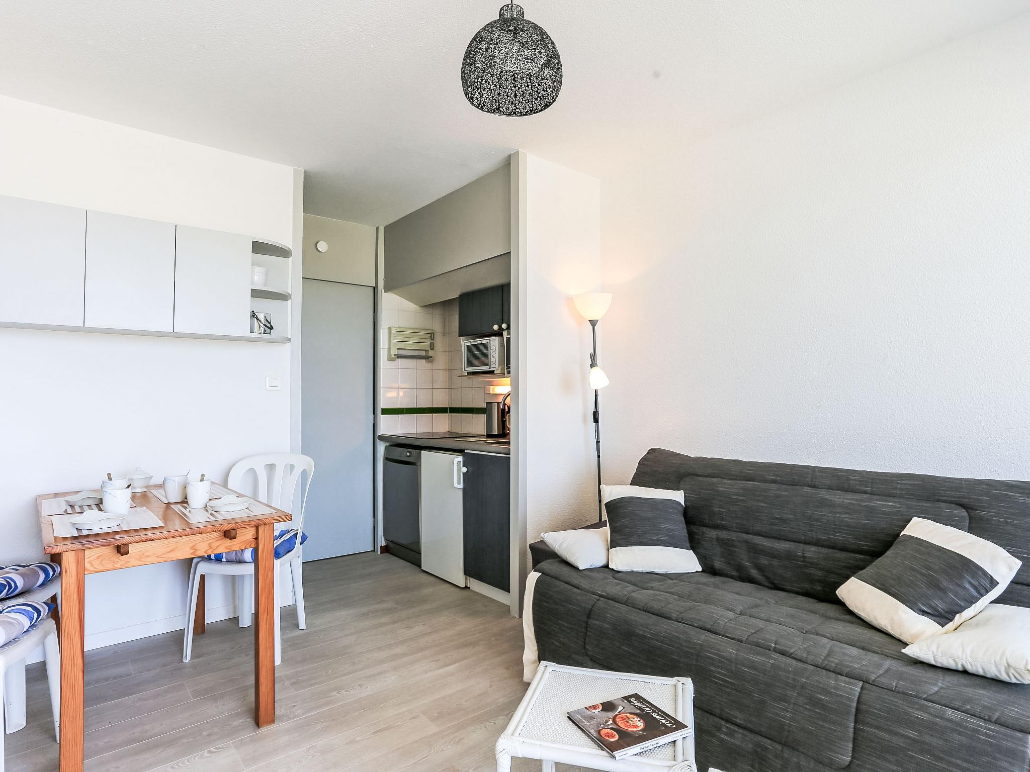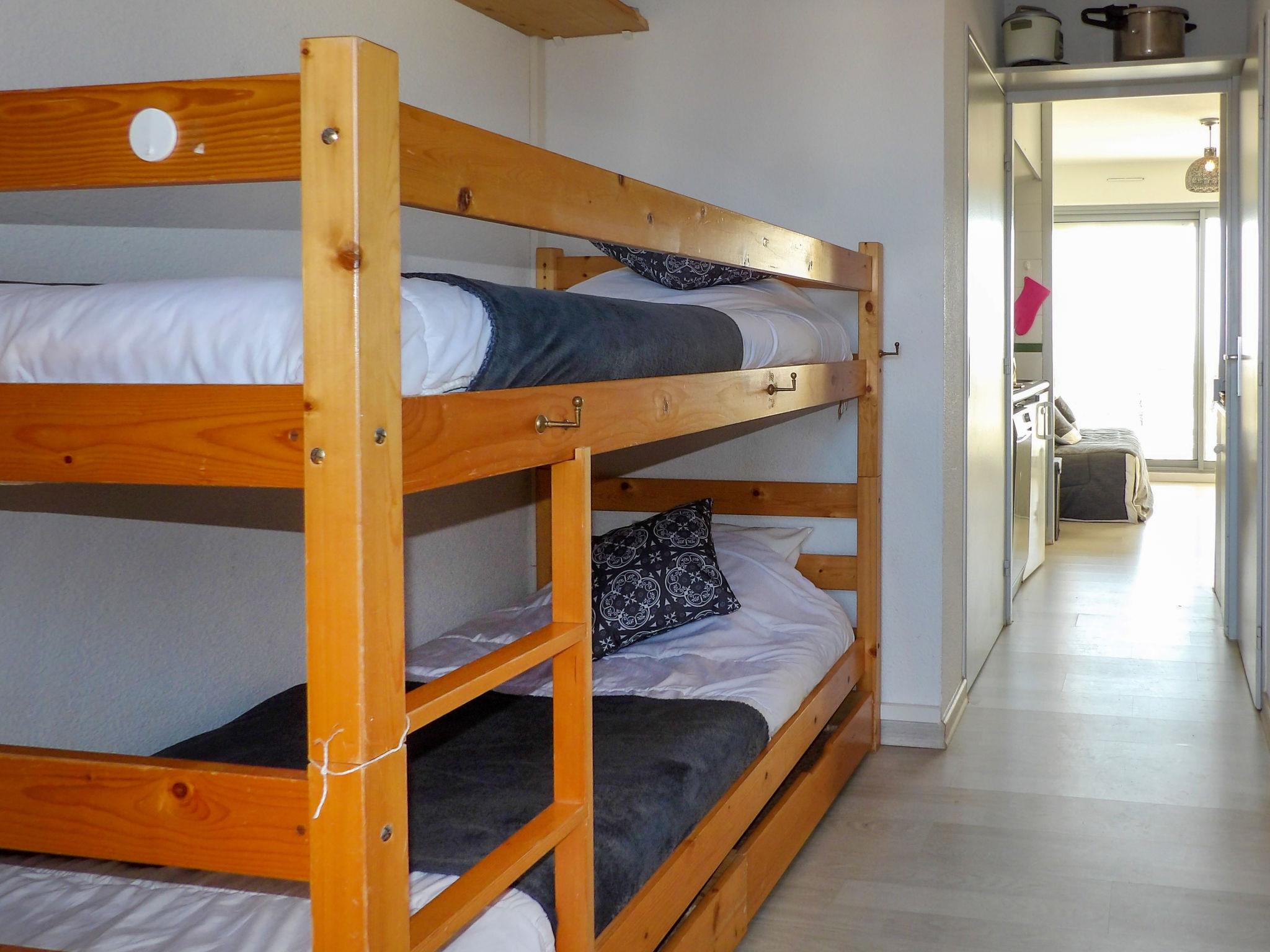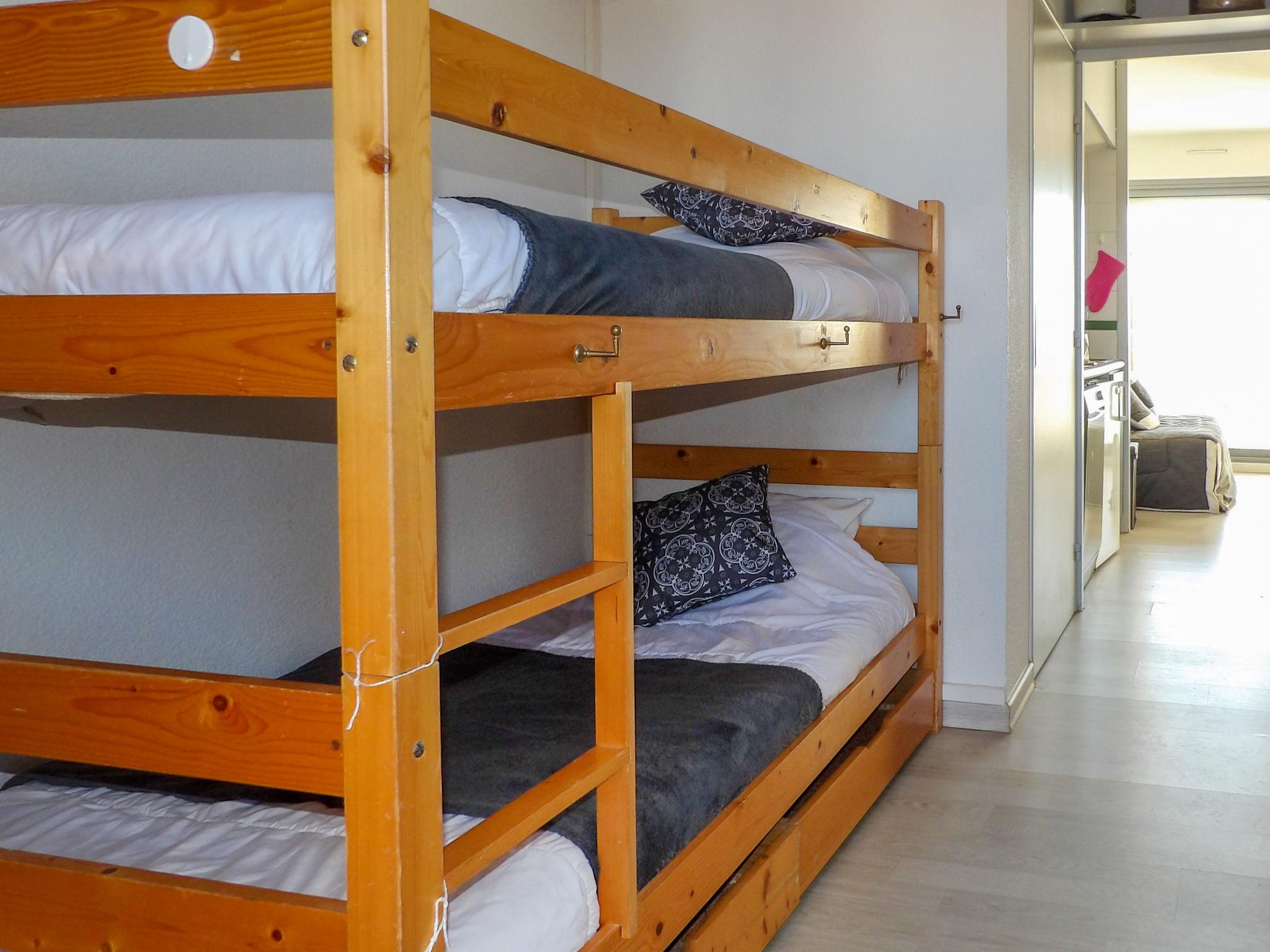2-Zimmer-Wohnung 28 m2 im 1. Stock. Einfach und zweckmässig eingerichtet: Eingang mit 1 x 2 Etagenbetten (90 cm, Länge 190 cm), TV (Flachbildschirm). Ausgang zum Balkon. 1 kleines Zimmer mit 1 franz. Bett (1 x 140 cm, Länge 190 cm). Kochnische (Mini-Backofen, Geschirrspüler, 1 Glaskeramikplatte, 4 Flammen, Mikrowelle, elektrische Kaffeemaschine). Bad/WC. E-Heizung. Balkon. Balkonmöbel. Sicht auf das Meer. Zur Verfügung: Waschmaschine. Internet (Wireless LAN, gratis). Parkplatz Nr. 108 (1 Auto). Bitte beachten: Parkplatz nur für kleine Wagen. TV nur FR. Rauchmelder. FR62285