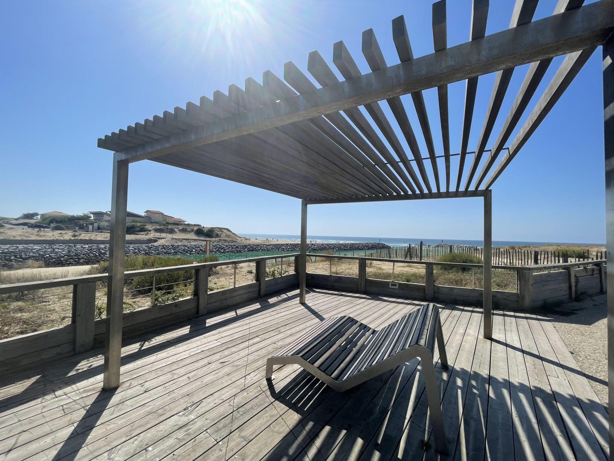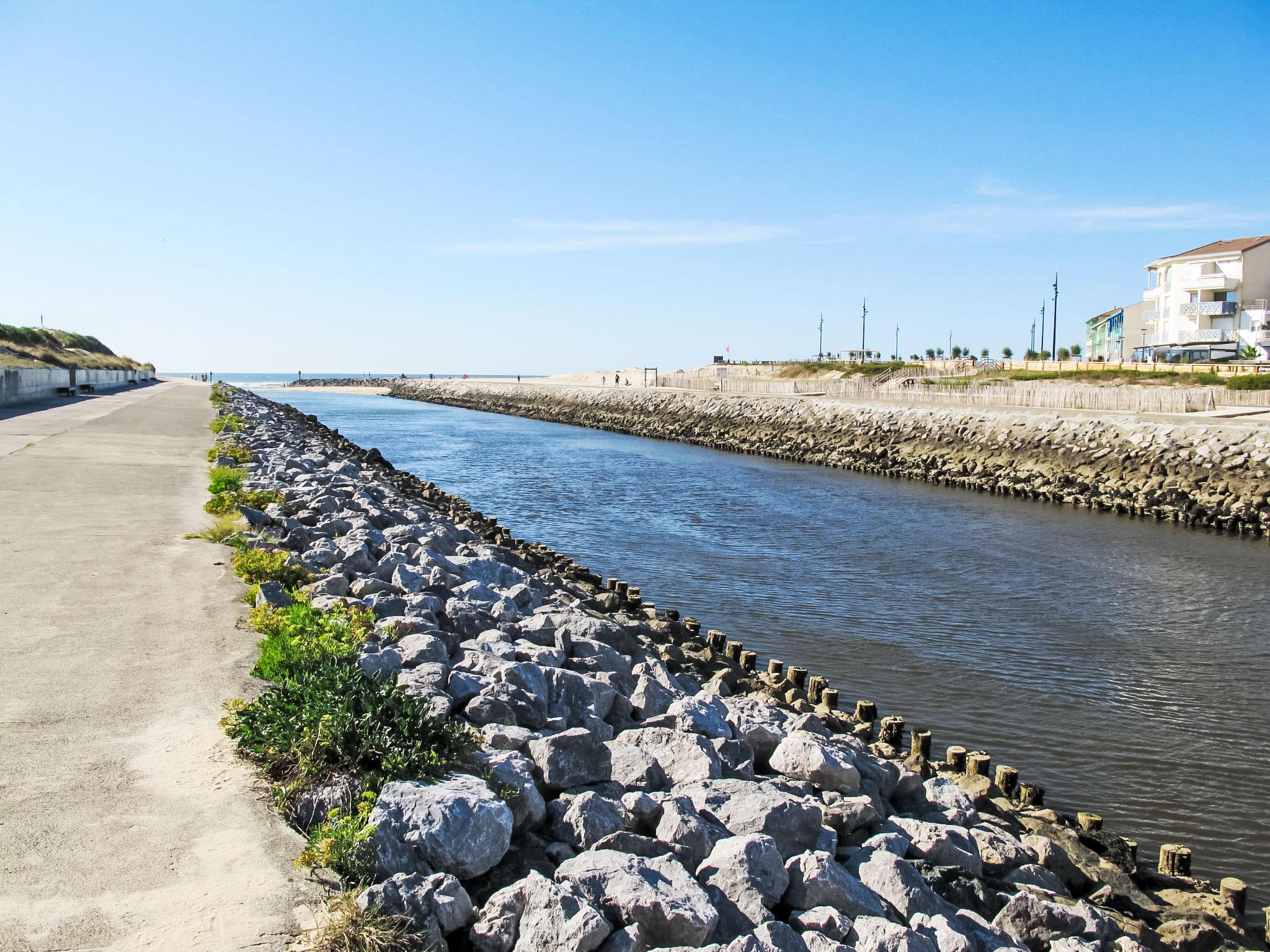 Mimizan-Plage: Residenz "Grand Pavois", auf 3 Stockwerken, Baujahr 1987. Im Ort, 100 m vom Zentrum von Mimizan Plage, zentrale, belebte Lage, 100 m vom Meer, 10 km vom See, 100 m vom Strand, 30 m vom Fluss. In der Anlage: Fahrstuhl. Einkaufsgeschäft 100 m, Lebensmittelgeschäft 150 m, Supermarkt 600 m, Restaurant 10 m, Bar 100 m, Bäckerei 150 m, Fahrradverleih 300 m, Bushaltestelle 450 m, Bahnstation "Labouheyre" 30 km, Sandstrand "la garluche" 150 m, Park "Landes Aventure" 6 km, Hallenbad 6 km, Badesee "Aureilhan" 10 km. Golfplatz (9 Loch) 6 km, Surfschule 350 m, Reitstall 10 km. Nahe gelegene Sehenswürdigkeiten: Bordeaux 120 km, Arcachon 70 km, Biscarrosse 40 km, Centre Nautique 7 km, Casino Mimizan Plage. Wandergebiete: Parc naturel régional des Landes 45 km.