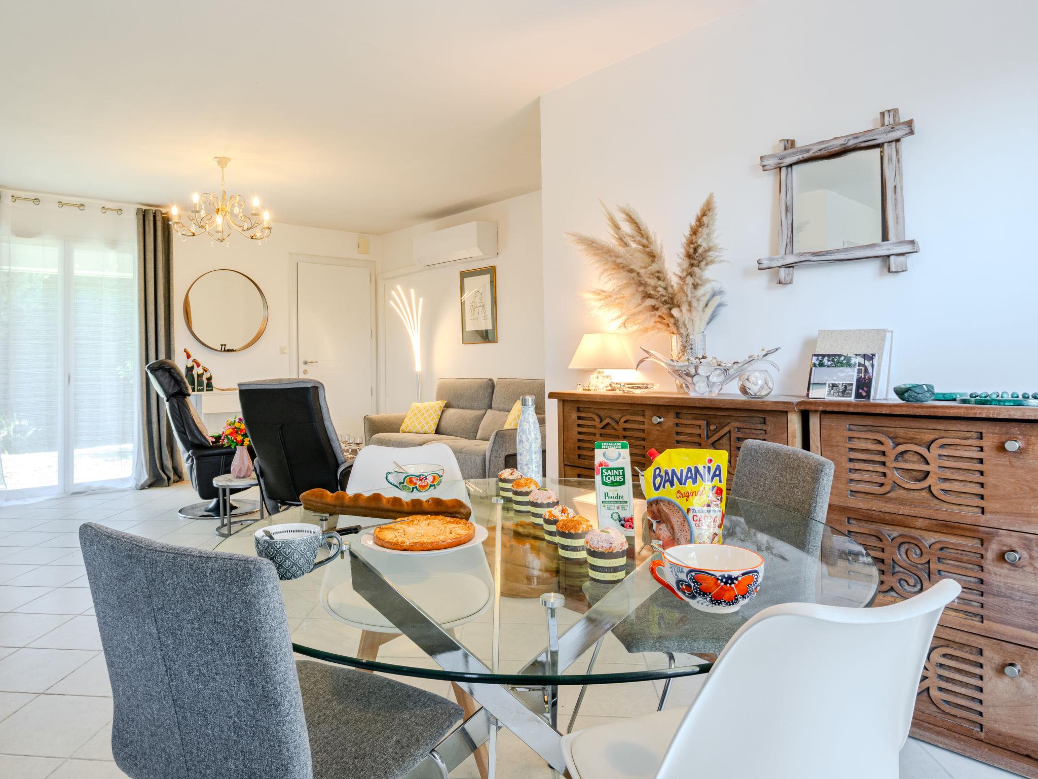 4-Zimmer-Haus 90 m2. Schön und modern eingerichtet: Wohn-/Esszimmer mit TV (Flachbildschirm), Klimaanlage. 1 Zimmer mit 1 franz. Bett (1 x 140 cm, Länge 190 cm). 1 Zimmer mit 1 franz. Bett (1 x 140 cm, Länge 190 cm). 1 Zimmer mit 1 franz. Bett (1 x 140 cm, Länge 190 cm). Offene Küche (Backofen, Geschirrspüler, 1 Induktionskochplatten, 4 Flammen, Toaster, Wasserkocher, Mikrowelle, Tiefkühler, elektrische Kaffeemaschine, Kapseln für die Kaffeemaschine (filtre)). Dusche, sep. WC. Klimaanlage, Warmluftheizung. Grosse Terrasse 36 m2, Ostlage. Terrassenmöbel, Gartengrill. Zur Verfügung: Waschmaschine, Wäschetrockner, Bügeleisen, Haartrockner. Internet (WLAN, gratis). Parkplatz (eingezäunt). Bitte beachten: Nichtraucher-Unterkunft. 1 kleines Haustier/Hund erlaubt. Rauchmelder. Inserat einer Privatperson nach Artikel 155, IV, CGI.