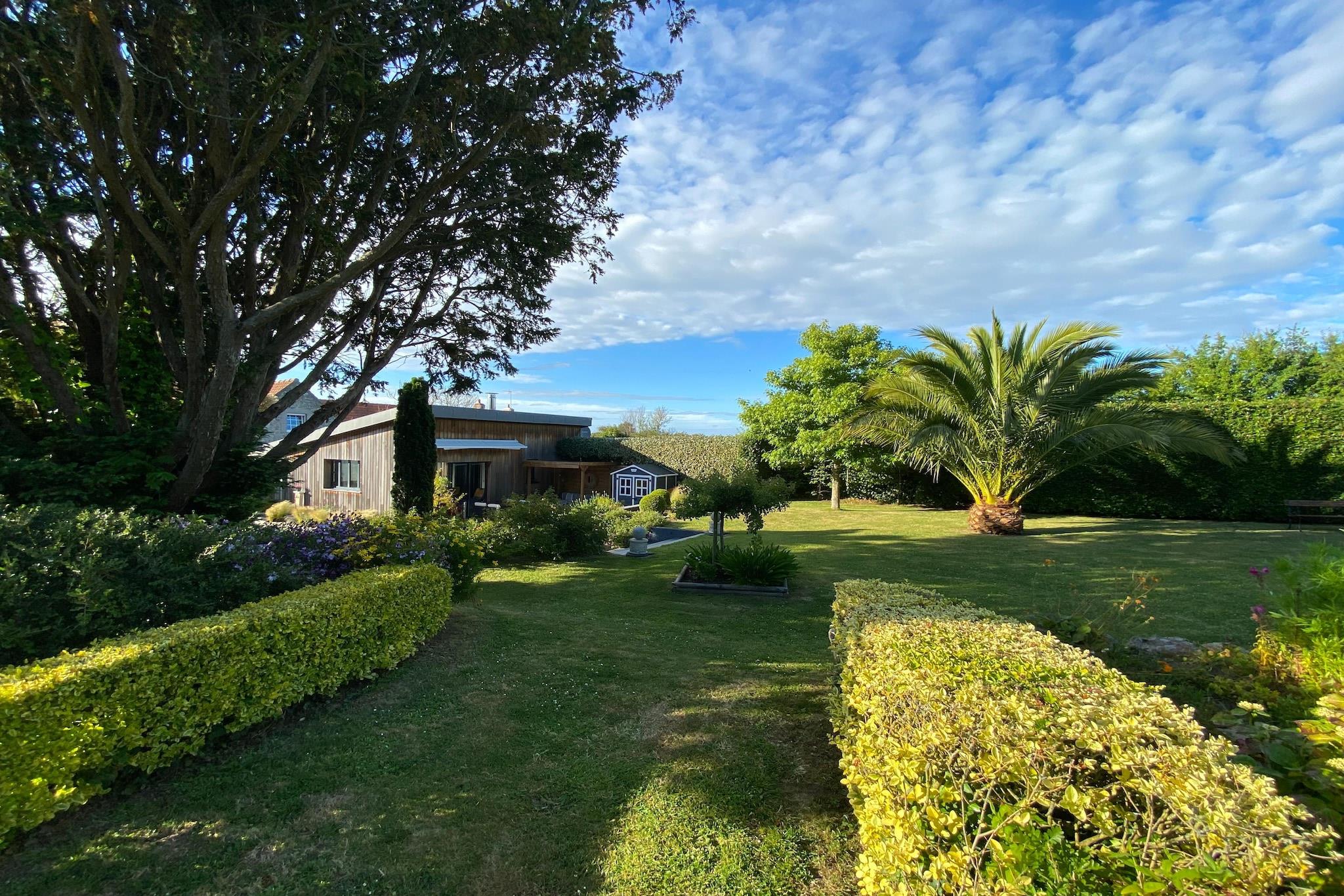 Geschmackvoll ausgestattetes Ferienhäuschen mit Holzfassade auf einem großen gepflegten Anwesen mit zwei Wohneinheiten. Vom lichtdurchfluteten Wohnraum und der weitläufigen Südterrasse genießen Sie den herrlichen Blick auf den malerisch angelegten privaten Gartenbereich. Das Anwesen grenzt an einen, typisch normannischen Weiler, in sehr ruhiger Lage nur wenige Minuten von den schönen Küstenlandschaften des Cotentin entfernt. Der kleine Ort Néville-sur-Mer bietet eine ideale Lage inmitten des Val de Saire, im grünen Cotentin mit seinen herrlichen Sandstränden, endlosen Wanderwegen und vielen geschichtsträchtigen Schlössern und Herrenhäusern. Aktivitäten in der Nähe: Das Cotentin bietet zahlreiche, auch kulturell interessante, Ausflugsziele wie Bayeux mit den bekannten Wandteppichen, Avranches, die Bischofsstadt mit ihrer schönen Kathedrale, sowie die belebten Hafenorte Barfleur und Granville. Auf dem Weg nach Barfleur empfehlen wir Ihnen an der Höhe von La Pernelle anzuhalten. Von hier aus, 123 Meter über dem Meeresspiegel, genießen Sie einen herrlichen Panoramablick über das Val de Saire und die gesamte Küste.