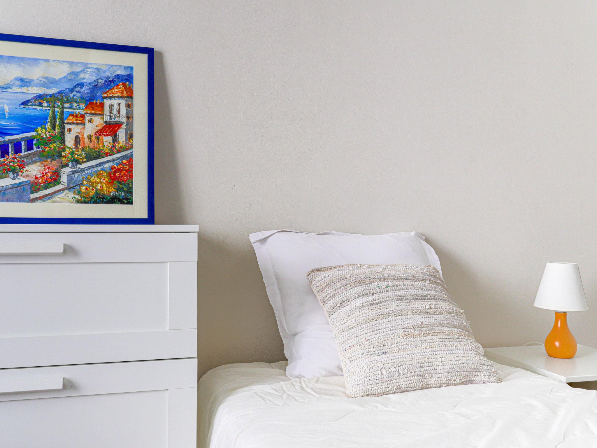 3-Zimmer-Wohnung 100 m2 im 2. Stock. Komfortabel und schön eingerichtet: Wohn-/Esszimmer mit 1 Doppeldiwanbett (160 cm, Länge 200 cm), Flachbildschirm. Ausgang zur Terrasse. 1 Zimmer mit 2 Betten (90 cm, Länge 190 cm). Ausgang zum Balkon. 1 Zimmer mit 1 Doppelbett (160 cm, Länge 200 cm). Offene Küche (Backofen, Geschirrspüler, 4 Induktionskochplatten, Mikrowelle, Tiefkühler, elektrische Kaffeemaschine). Bad/WC, Dusche, sep. WC, Doppelwaschbecken. Heizung, Klimaanlage. Sicht auf die Ortschaft. Zur Verfügung: Waschmaschine, Haartrockner. Internet (Wireless LAN, gratis). 06088000793QJ