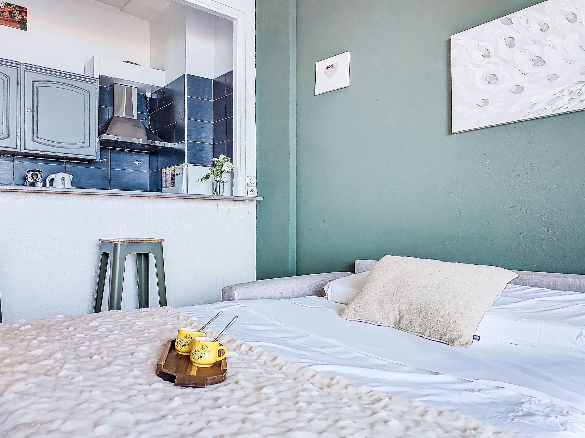1-Zimmer-Studio 35 m2 im 2. Stock. Komfortabel eingerichtet: Wohn-/Schlafzimmer mit Panoramafenster mit 1 Doppeldiwanbett (140 cm, Länge 190 cm), TV (Flachbildschirm), Klimaanlage und elektrischem Rollladen. Ausgang zum Balkon. Offene Küche (Toaster, Wasserkocher, Mikrowelle, Tiefkühler, elektrische Kaffeemaschine, Kapseln für die Kaffeemaschine (Nespresso) extra) mit Klimaanlage. Bad/WC. Warmluftheizung. Balkon 9 m2. Balkonmöbel. Sehr schöne Panoramasicht auf das Meer. Zur Verfügung: Waschmaschine, Bügeleisen, Haartrockner. Internet (WLAN, gratis). Inserat einer Privatperson nach Artikel 155, IV, CGI. US0608819S1835