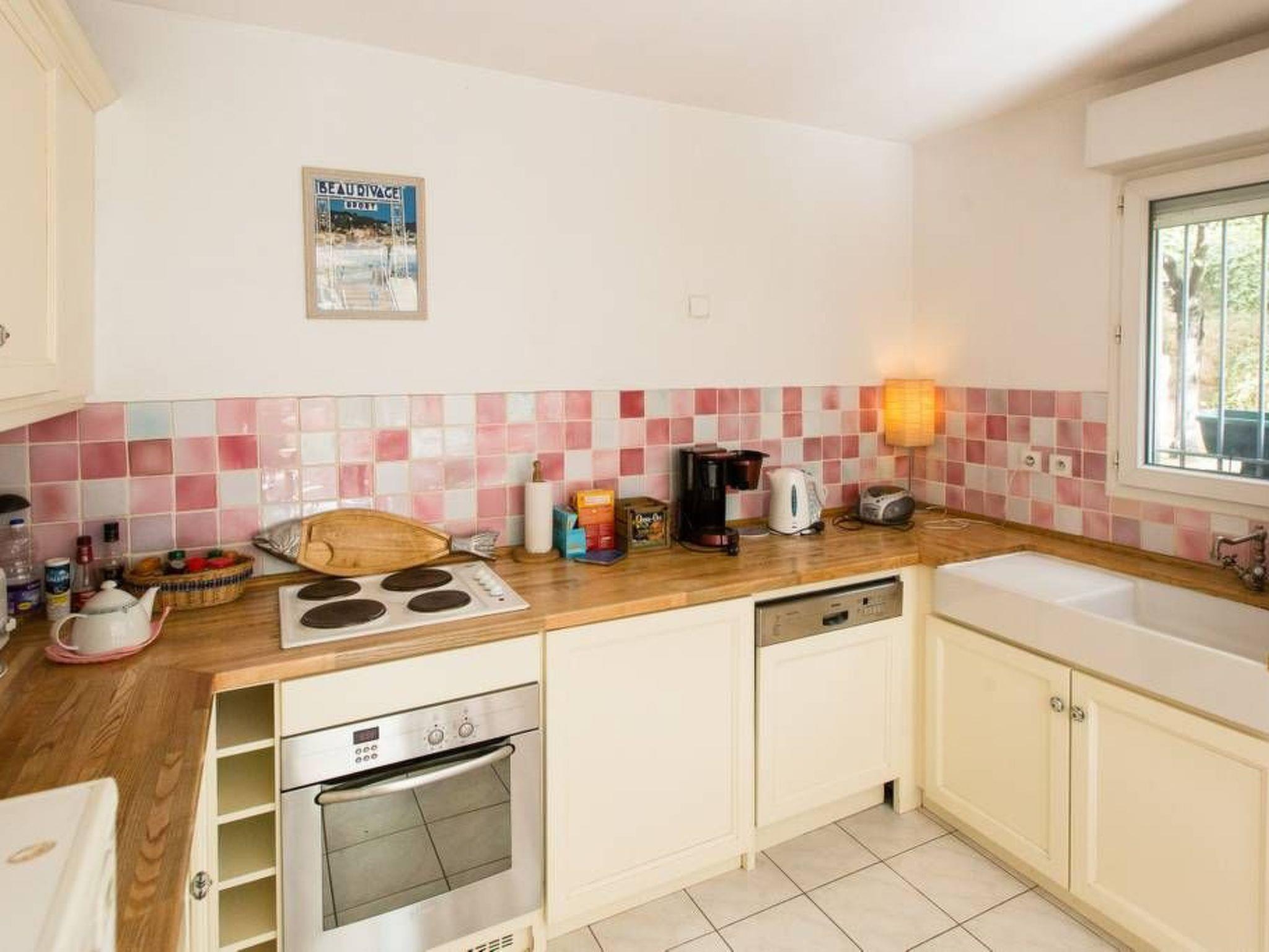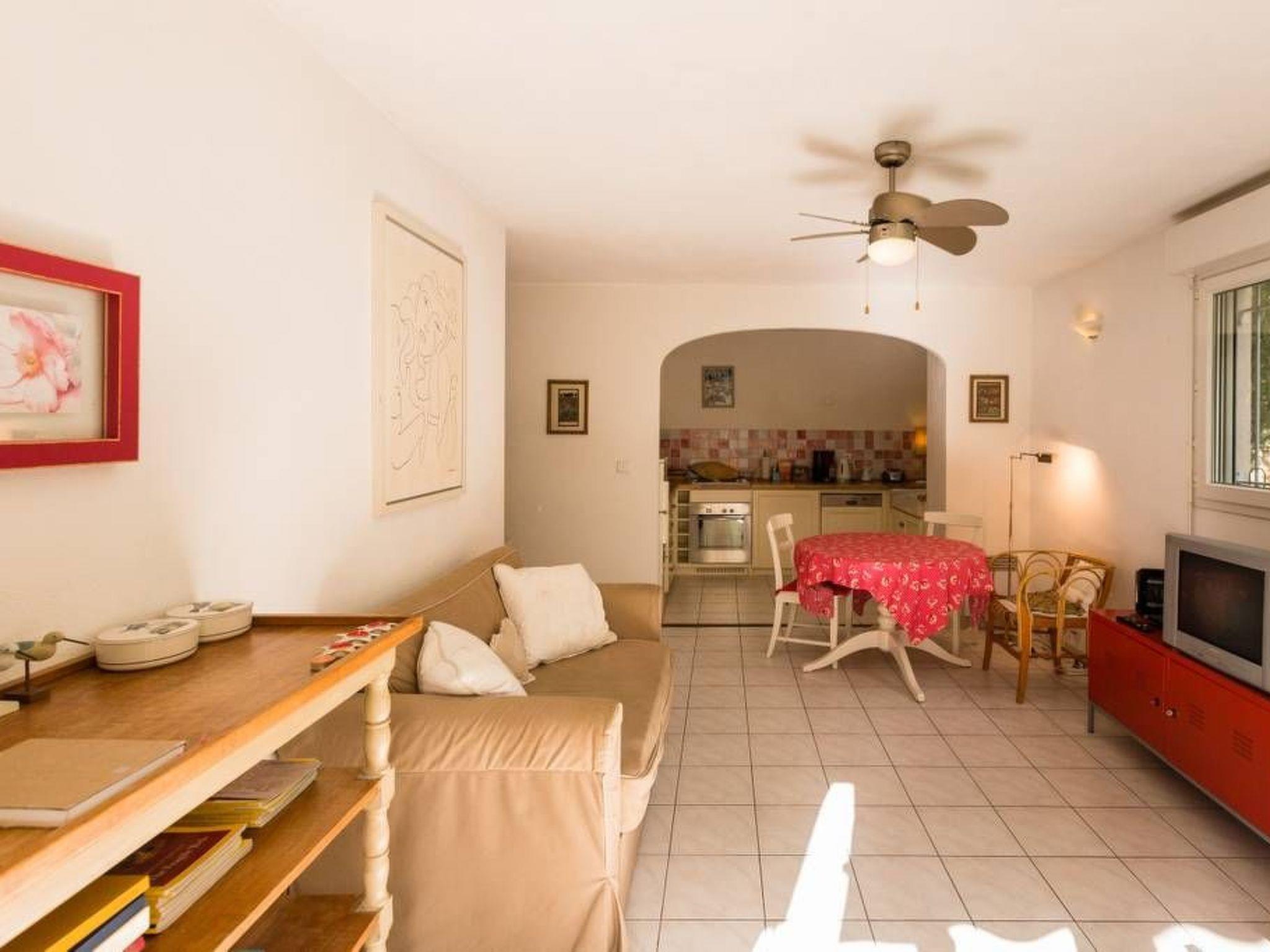 Großer Garten von nicht weniger als 215m2 mit Olivenbaum, Kräutergarten, Mimosen. Dieser Garten ist komplett eingezäunt. Terrasse, Patio, schöne Stühle zum Sonnenbaden. Sie haben den ganzen Tag Sonne, sondern kann auch Schatten suchen.