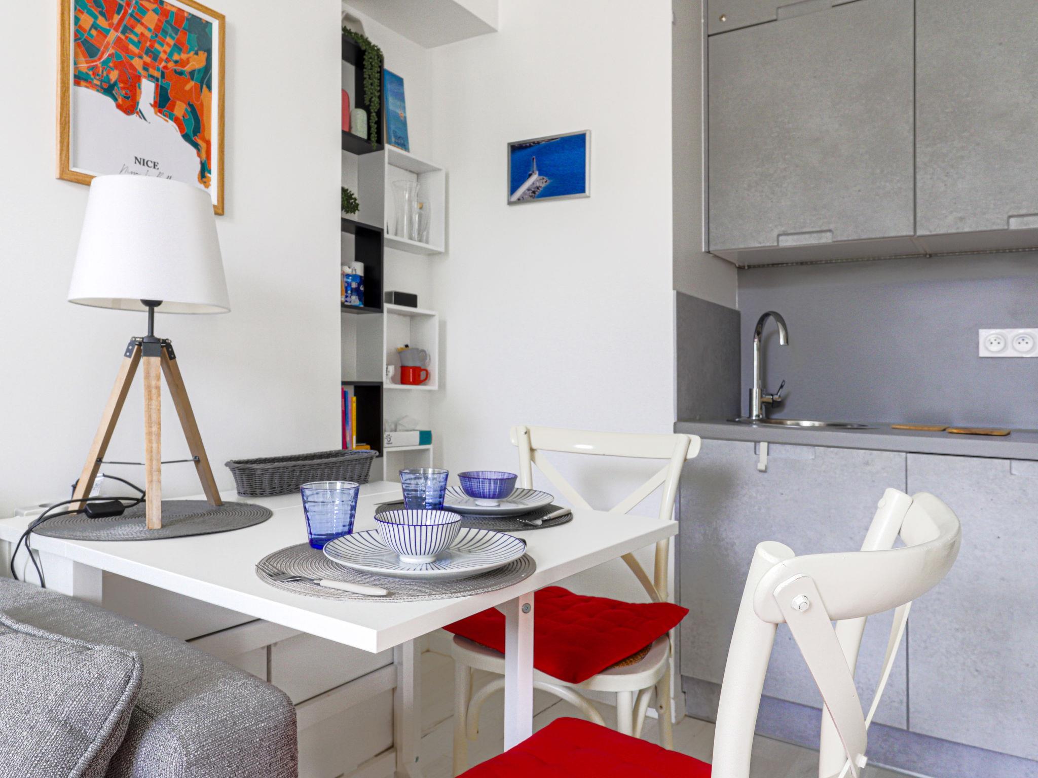 Mehrfamilienhaus "Le Palais du Vieux Port", auf 5 Stockwerken. Im Ortsteil du Port, im Ortszentrum von Nice, zentrale, belebte Lage, 50 m vom Meer, 500 m vom Strand. Im Hause: Fahrstuhl. Öffentliches Parkhaus in 700 m, öffentliche Parkplätze auf der Strasse extra. Einkaufsgeschäft 200 m, Lebensmittelgeschäft, Supermarkt 100 m, Einkaufszentrum 2 km, Restaurant 50 m, Bar 200 m, Bäckerei 100 m, Café 20 m, Fußgängerzone 200 m, Straßenbahn "Port Lympia" 50 m, Bushaltestelle "Lympia" 50 m, Bahnstation "Riquier" 1.5 km, Steinstrand 1.5 km, Felsstrand 600 m. Sporthafen 50 m, Golfplatz (18 Loch) 23 km, Tennis 3 km. Nahe gelegene Sehenswürdigkeiten: Musée Matisse 3 km, Musée Chagall 2.5 km, Colline du Château 500 m, Place Masséna 1.5 km, Musée Océanographique de Monaco 22 km, Jardin exotique d'Eze 15 km. Bekannte Seen in der Umgebung sind gut erreichbar: Saint Cassien 62 km. Wandergebiete: Parc National du Mercantour 52 km.