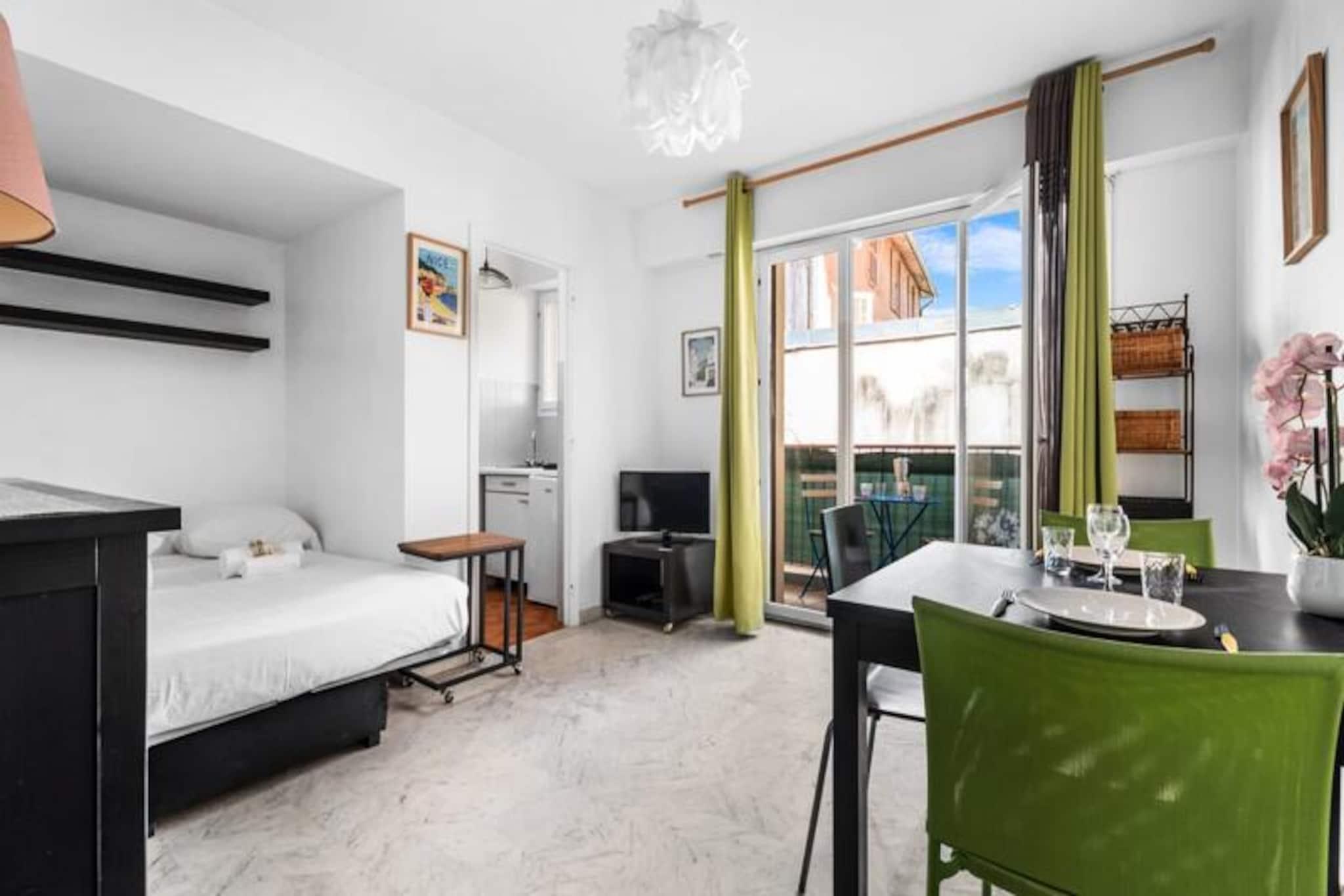 Treten Sie ein in dieses charmante Studio im pulsierenden Herzen von Nizza, wo der Charme der Côte d’Azur auf modernen Komfort trifft. Ob romantischer Kurzurlaub oder produktive Geschäftsreise – dieses gemütliche Refugium bietet von seinem privaten Balkon einen ruhigen Blick auf den Innenhof und lädt zum Entspannen bei einer Tasse Kaffee am Morgen oder einem Glas Wein am Abend ein. Dank der zentralen Lage tauchen Sie ein in die lebendige Atmosphäre von Nizza und genießen gleichzeitig eine Oase der Ruhe zum Erholen und Auftanken. \n\nDieses gut ausgestattete Studio erstreckt sich über 23 m² und ist durchdacht gestaltet für bis zu zwei Gäste. Der helle Wohnbereich verfügt über ein komfortables Doppelbett und einen Essbereich und schafft so eine einladende Atmosphäre zum Entspannen oder Arbeiten. Die separate Küche ist komplett ausgestattet mit Kaffeemaschine, Toaster, Wasserkocher, Mikrowelle, Herd und Kühlschrank, sodass Sie alles haben, um sich während Ihres Aufenthalts Mahlzeiten zuzubereiten. Das Badezimmer ist mit Dusche und WC sowie praktischen Annehmlichkeiten wie Föhn, Bügeleisen und Kleiderbügeln ausgestattet. Zu den weiteren Annehmlichkeiten gehören WLAN, TV, Zentralheizung und Sicherheitsmerkmale wie Kohlenmonoxid- und Rauchmelder. \n\nNur eine Gehminute von der Straßenbahnhaltestelle Libération und fünf Minuten vom Bahnhof Thiers entfernt, ist dieses Studio ideal gelegen, um Nizza und die Umgebung zu erkunden. Spazieren Sie zu nahegelegenen Attraktionen wie dem lebhaften Markt Libération, der Einkaufsstraße Jean Médecin oder kulturellen Highlights wie den Museen Matisse und Chagall. Die berühmten Strände von Nizza sind nur wenige Straßenbahnhaltestellen entfernt und bieten die perfekte Mischung aus Stadt- und Strandvergnügen. \n\nOb Sie die mediterrane Sonne genießen oder in das reiche kulturelle Erbe der Côte d’Azur eintauchen möchten, dieses charmante Studio ist der ideale Ausgangspunkt für Ihre Abenteuer. Lassen Sie sich von der Schönheit Nizzas verzaubern und genießen Sie den Komfort und die Annehmlichkeiten dieses liebevoll gestalteten Apartments.