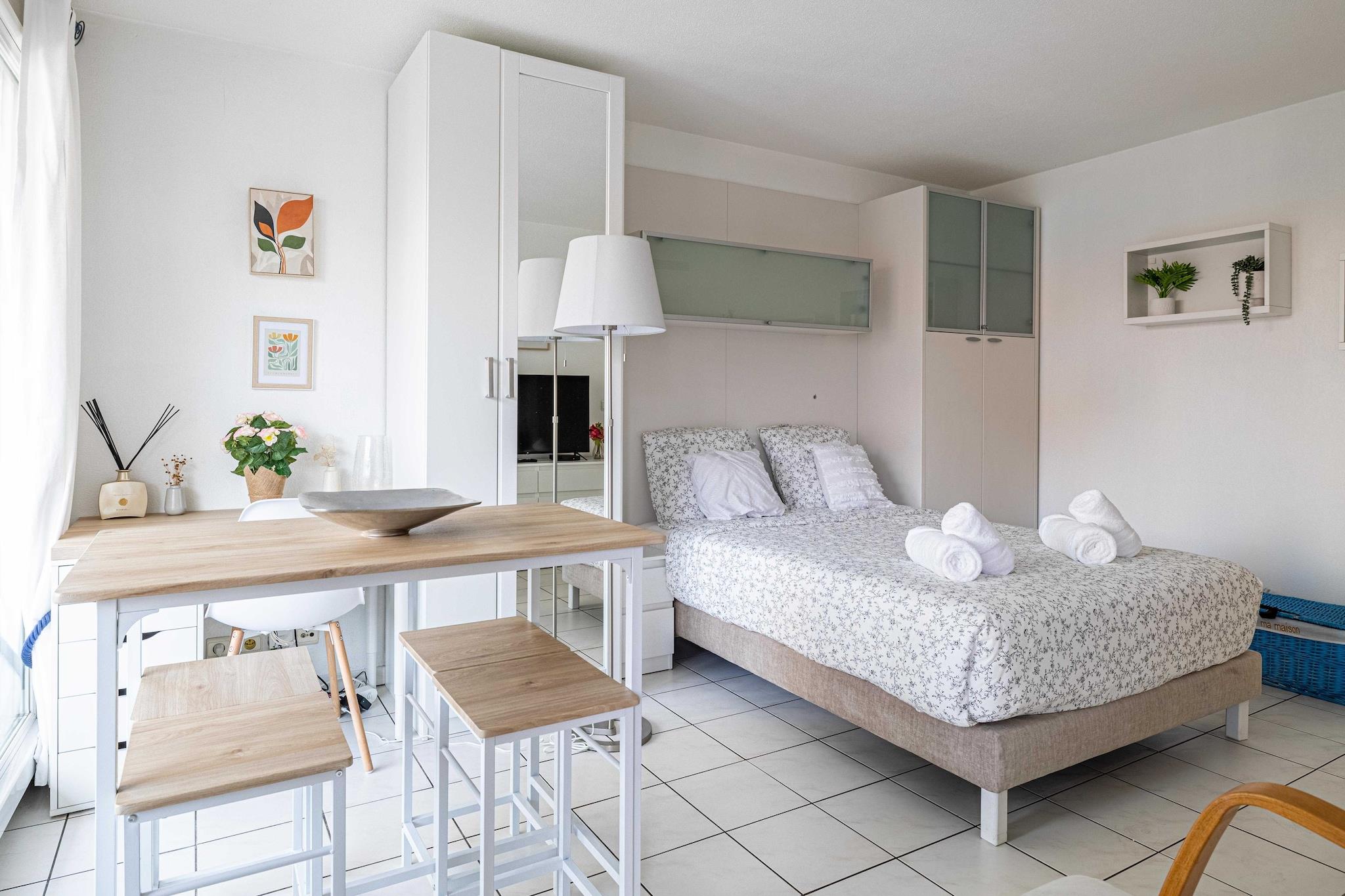 Entdecken Sie den Komfort unseres charmanten Studios für zwei Personen im Herzen von Nizza. Der Swimmingpool der Residenz steht Ihnen vom 1. Juni bis zum 30. September jeden Jahres zur Verfügung! Voll ausgestattetes Apartment mit Klimaanlage, ruhigem Balkon und geräumigem Wohnbereich. Die Lage des Studios ermöglicht es Ihnen, sich schnell und einfach fortzubewegen: Öffentliche Verkehrsmittel sind ebenfalls in der Nähe (Straßenbahn, Flughafen-Shuttle und Bus innerhalb von 5 Minuten) und ermöglichen es Ihnen, Sehenswürdigkeiten außerhalb der Stadt (Monaco, Cannes, Antibes, Villefranche-sur-Mer, Saint-Paul-de-Vence, Eze usw.) bequem zu besuchen. - MIT DEM FLUGZEUG: Flughafen Nizza-Côte d'Azur (2 km) - MIT DEM FLUGZEUG: Flughafen Cannes-Mandelieu (30 km) - MIT DEM ZUG: Bahnhof Nizza - MIT DEM AUTO: Autobahn A8 - MIT DEM AUTO: National 85