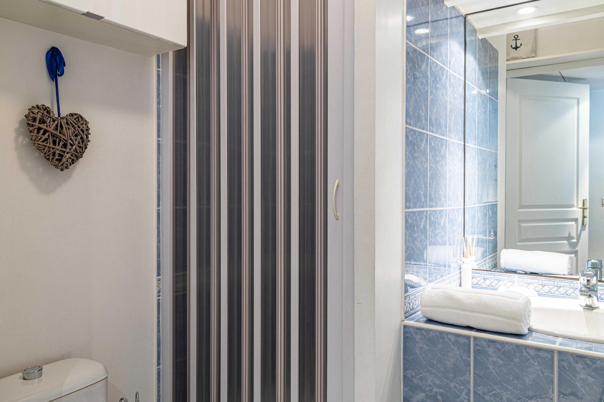 In der 1. Etage: (Küche(Herd, Wasserkocher, Toaster, Kaffeemaschine, Backofen, Mikrowelle, Kühlschrank, ), Wohn-/Schlafzimmer(Doppelbett), Badezimmer(Dusche, Waschbecken, Toilette), Balkon) , , , , , Erste-Hilfe-Station, Spielplatz, TV, Babybett, Heizung, Klimaanlage, Pool, Bügeleisen, Föhn, Handtücher/Bettwäsche (inklusive), , , , Carbon monoxide detector, Cleaning Disinfection, Enhanced cleaning practices, High touch surfaces disinfected, Long term stays allowed, Near Ocean, Room-darkening shades, Village