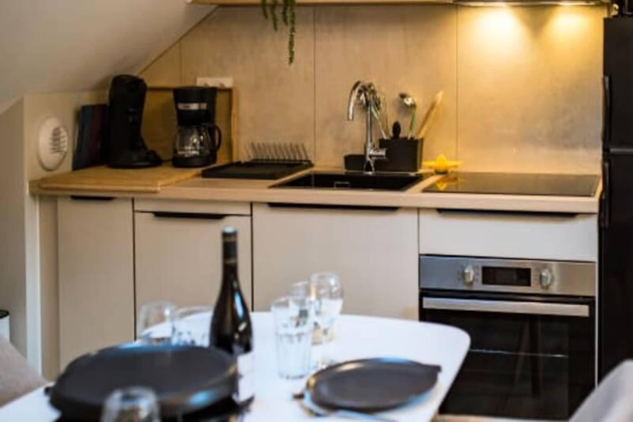 Im idyllischen Örtchen Orelle bietet dieses charmante Apartment mit einem Schlafzimmer einen gemütlichen Rückzugsort für Paare oder Familien, die Abenteuer und Entspannung suchen. Umgeben von den majestätischen Alpen ist diese Unterkunft der ideale Ausgangspunkt für Winter- und Sommeraktivitäten. Die Seilbahn von Orelle, die Sie mit dem weltberühmten Skigebiet 3 Vallées verbindet, erreichen Sie in nur 3 Fahrminuten. Ob Sie im Winter auf unberührten Pisten die Hänge hinabsausen oder im Sommer legendäre Bergpässe erkunden – dieses Apartment ist der perfekte Ausgangspunkt für unvergessliche alpine Erlebnisse. Das 40 m² große Apartment ist komfortabel und funktional gestaltet. Das Wohnzimmer verfügt über ein bequemes Queensize-Schlafsofa, einen Smart-TV und eine offene Küche mit modernen Geräten wie Raclette-Grill, Geschirrspüler und Kaffeemaschine. Das separate Schlafzimmer bietet zwei Einzelbetten mit kuscheliger französischer Bettwäsche und garantiert erholsame Nächte für bis zu vier Gäste. Ein neu renoviertes Badezimmer mit Dusche und kostenlosen Handtüchern sorgt für zusätzlichen Komfort. Treten Sie hinaus in den hellen Wintergarten mit großem Esstisch und Grill für unvergessliche Mahlzeiten unter dem Alpenhimmel. Ein traditioneller Brotbackofen in der Nähe verleiht Ihren kulinarischen Erlebnissen eine besondere Note. Zu den weiteren Annehmlichkeiten gehören Highspeed-WLAN, ein Gemeinschaftswaschraum und ein Skiraum, die Ihren Aufenthalt so angenehm wie möglich gestalten. Familien mit Kleinkindern freuen sich über die auf Anfrage verfügbaren Reisebetten und Hochstühle, während Brettspiele für vergnügliche Abende sorgen. Abseits der Wohnung lockt das Maurienne-Tal mit unvergleichlichen Möglichkeiten zum Skifahren, Radfahren und Wandern. Von den legendären Pisten von Val Thorens bis zu den malerischen Wegen des Nationalparks Vanoise ist die Region ein Paradies für Outdoor-Fans. Dank der guten Anbindung an nahegelegene Orte wie Valmeinier und Valloire sowie legendäre Radrouten wie den Galibier- und den Télégraphe-Pass verspricht jeder Tag ein neues Abenteuer. Ob Sie nun wegen des Schnees oder der Sonne hier sind, dieses alpine Paradies lädt Sie ein, unvergessliche Erinnerungen im Herzen der französischen Alpen zu schaffen.