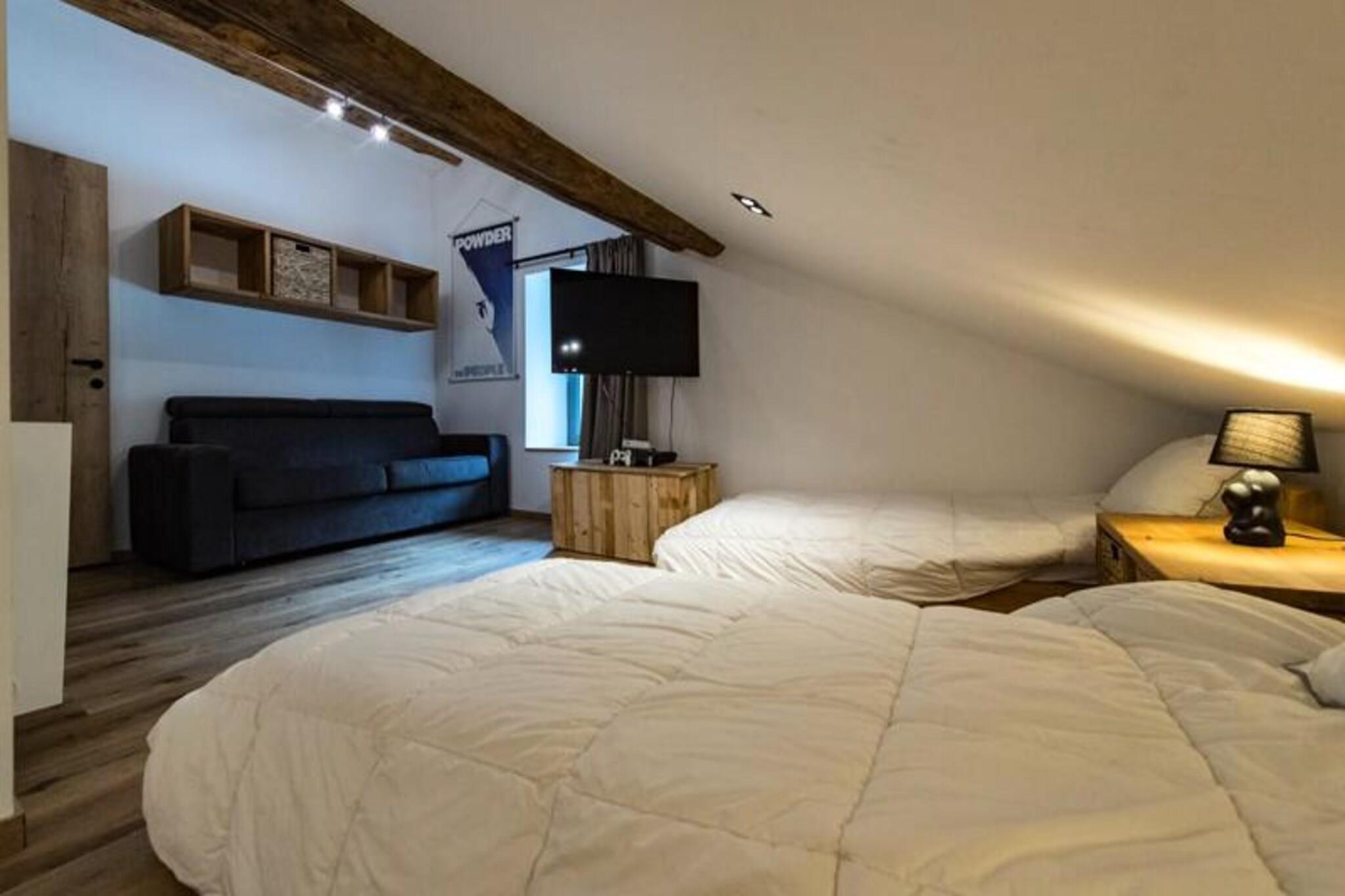 Hoch oben im Herzen der französischen Alpen bietet dieses atemberaubende 220 m² große Triplex-Chalet eine harmonische Verbindung von traditionellem Alpencharme und modernem Luxus. Mit einem atemberaubenden Blick auf die umliegenden Gipfel bietet dieses komplett renovierte Refugium Platz für bis zu 15 Gäste und besticht durch Komfort und Stil. Ob Sie ein Winter-Skiabenteuer oder eine Sommerauszeit planen – dieses Chalet ist der perfekte Ausgangspunkt für unvergessliche Bergerlebnisse. Der großzügige Innenbereich verfügt über sechs stilvoll eingerichtete Schlafzimmer und fünf moderne Badezimmer, die ausreichend Platz und Privatsphäre für alle gewährleisten. Der Hauptwohnbereich umfasst eine gemütliche Lounge mit Streaming-fähigem Fernseher, einen Essbereich mit bequemen Sitzplätzen für alle Gäste und eine voll ausgestattete offene Küche mit allem, was man zum Raclette-Grillen und zur Kaffeemaschine braucht. Ein zweites Wohnzimmer mit eigener Küche im Untergeschoss bietet zusätzlichen Komfort und Unabhängigkeit für größere Gruppen. Im Obergeschoss sorgt ein separates Kinderzimmer mit vier Einzelbetten, einem Sofa und einer PS3-Spielkonsole für Unterhaltung der kleinen Gäste. Treten Sie hinaus auf eine der beiden großen Terrassen – perfekt, um die Alpensonne zu genießen oder Mahlzeiten im Freien einzunehmen. Das Chalet bietet außerdem Skischließfächer an der Talstation der Orelle-Seilbahn, einen sicheren Fahrradabstellraum und ausreichend kostenlose Parkplätze in der Nähe. Nur 1 km von der Orelle-Seilbahn entfernt.