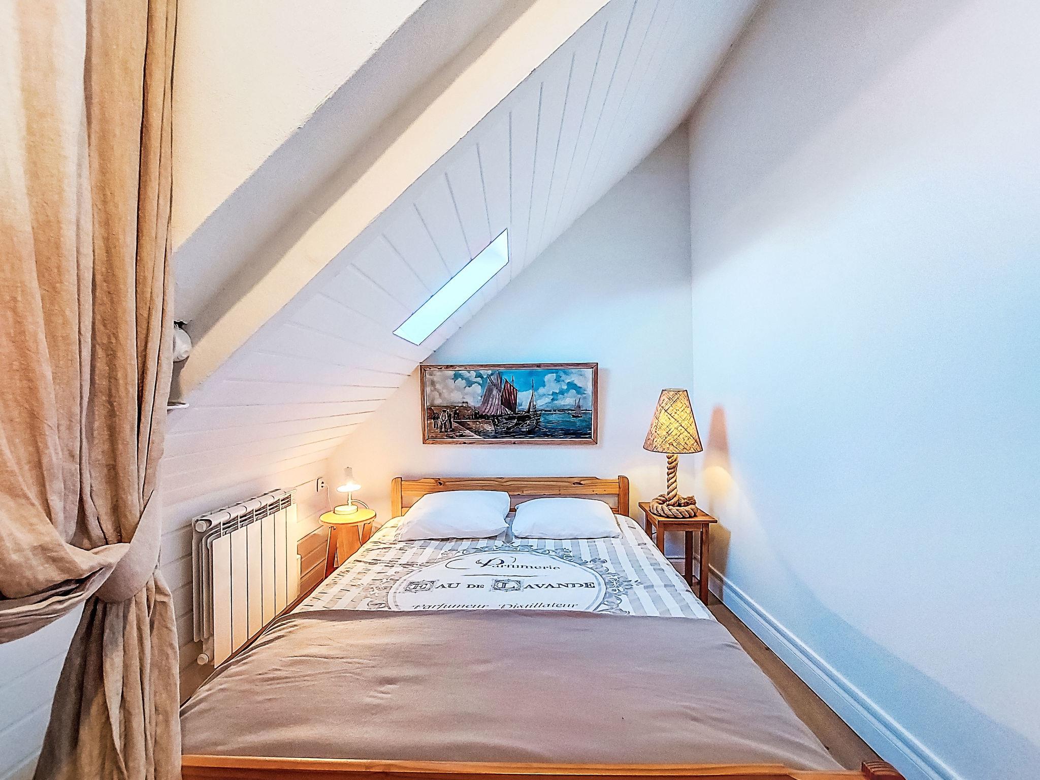 "Gwenn", 3-Zimmer-Doppelhaushälfte 60 m2 auf 2 Stockwerken. Teilweise renoviert im Jahre 2025, schön und gemütlich eingerichtet: Wohn-/Esszimmer mit Esstisch und TV (Flachbildschirm). Kochnische (Backofen, 2 Glaskeramikplatten, Toaster, Wasserkocher, elektrische Kaffeemaschine). Bad/WC. E-Heizung. Dachgeschoss: 1 abgeschrägtes Zimmer mit Dachfenster mit 1 franz. Bett (140 cm). 1 abgeschrägtes Zimmer mit Dachfenster mit 1 Bett und 1 franz. Bett (140 cm). Terrassenmöbel, Liegestühle (2). Zur Verfügung: Waschmaschine, Bügeleisen. Internet (WLAN, gratis). Bitte beachten: Nichtraucher-Haus. Rauchmelder. Inserat einer Privatperson nach Artikel 155, IV, CGI.