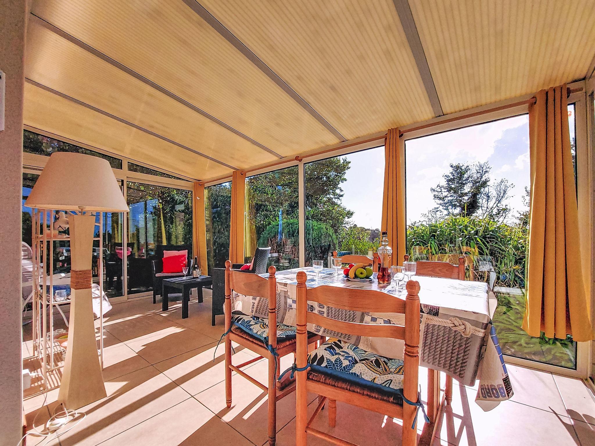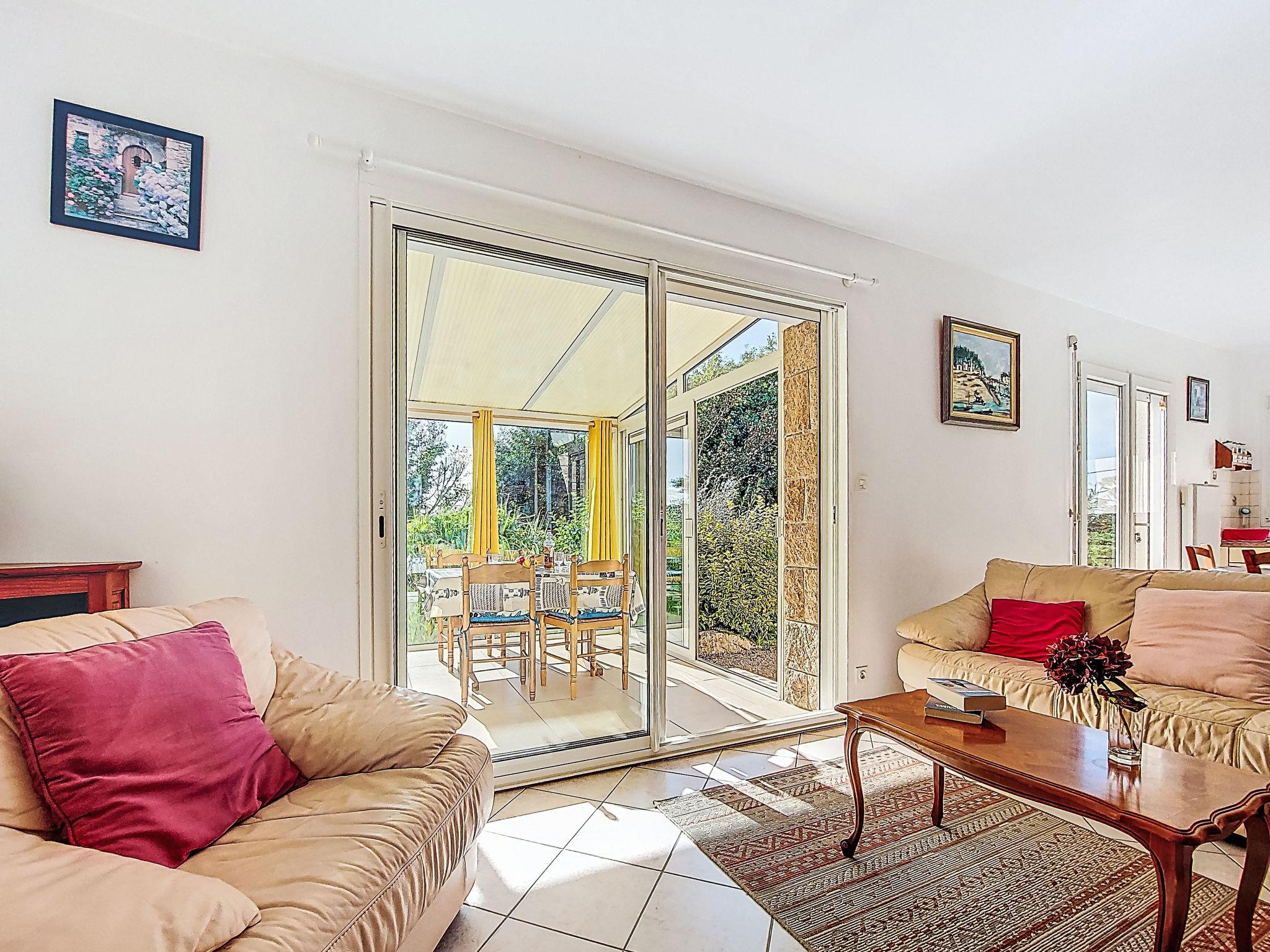 "Kerguntuil", 3-Zimmer-Haus 60 m2. Hell, schön und gemütlich eingerichtet: Wohnzimmer mit Veranda mit Esstisch und TV. Ausgang zur Veranda. 1 Zimmer mit 1 franz. Bett (160 cm, Länge 200 cm). 1 Zimmer mit 2 Betten (90 cm, Länge 200 cm). Offene Küche (Backofen, Geschirrspüler, 3 Induktionskochplatten, Toaster, Mikrowelle, Tiefkühler, elektrische Kaffeemaschine). Ausgang zum Garten. Bad, sep. WC. E-Heizung. Terrassenmöbel, Gartengrill (mobil), Liegestühle (4), Abstellkammer. Zur Verfügung: Waschmaschine. Internet (WLAN, gratis). Bitte beachten: Nichtraucher-Haus. Maximal 2 Haustiere/Hunde erlaubt. Rauchmelder.
