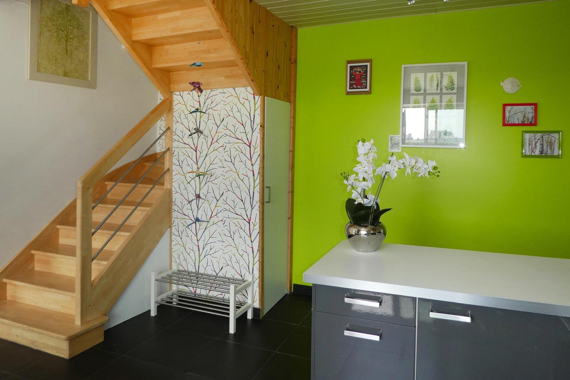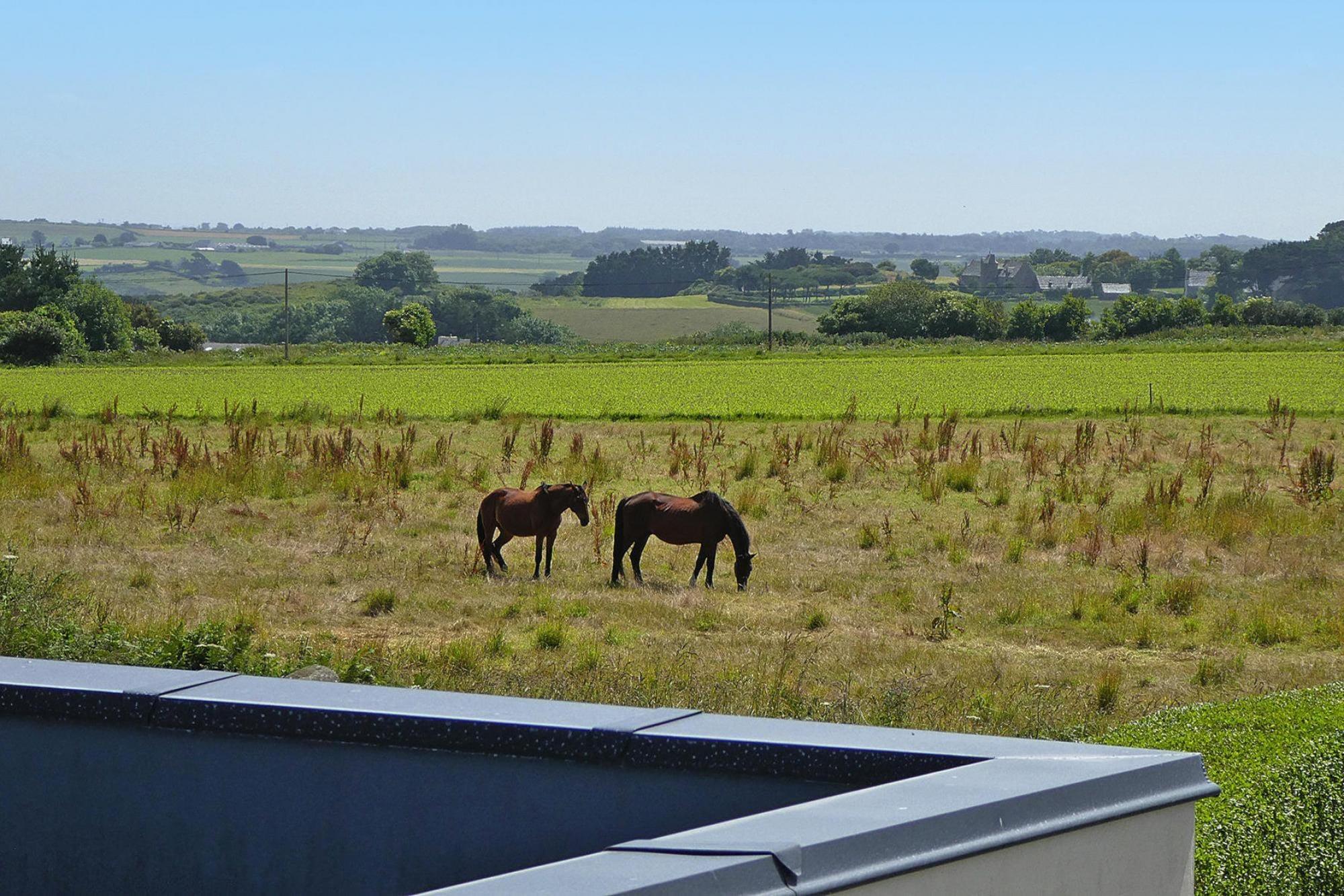 Geschmackvoll und modern renoviertes Ferienhaus zwischen Land und Meer. Der besondere Clou des Hauses ist die kleine Dachterrasse, die Ihnen einen freien Blick über das Land bis hin zum Meer gewährt. Die hellen, lichtdurchfluteten Räume, deren Dekoration von der Natur inspiriert wurde, strahlen eine angenehme Atmosphäre aus. Vom Wohnzimmer aus mit seiner gemütlichen Kaminecke gelangen Sie durch breite Glastüren direkt auf die blickgeschützte Terrasse, wo Sie leckere Mahlzeiten im Freien einnehmen können oder sich einfach in der Sonne entspannen. Direkt hinter dem Ferienhaus erreichen Sie über einen kleinen Zöllnerpfad nach nur einem Kilometer den langgezogenen Sandstrand von Primel. Oberhalb des Strandes befindet sich eine Strandpromenade mit mehreren Restaurants und Crêperien. Der typisch bretonische Ferienort Plougasnou liegt am Rande der Bucht von Morlaix und bietet feine Sandstrände und kleine Felsbuchten. Jeden Dienstag findet vormittags auf dem Kirchenplatz der beliebte Markt statt. Eine ideale Lage, am östlichen Rand des Finistère und an der Grenze der Côtes d’Armor! Von hier aus kann man von hier aus ideal beide Départements erkunden und nicht nur die einzigartige Natur, sondern auch viel Geschichte, interessante Kleinstädte und wunderschöne zerklüftete Felsküsten erleben. Westlich, die Bucht von Morlaix mit u.a. dem malerischen Hafen- und Kurort Roscoff, östlich die wunderschöne Rosa Granitküste mit dem