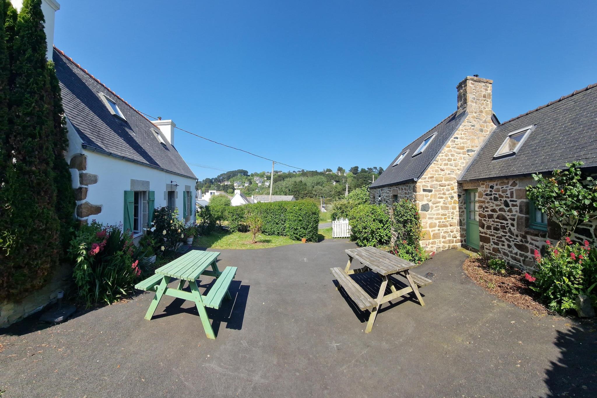 Ihre Unterkunft befindet sich auf einem malerischen, geschlossenen Anwesen und besteht aus zwei Gebäuden, die die Bucht von Le Diben überragen. Ty Coz, das Natursteinhaus und Ty Gwenn, das weiße Haus, stehen zu ihrer alleinigen Verfügung. Eine ideale Aufteilung für eine große Familie oder kleine Freundesgruppe, die gemeinsam Urlaub machen wollen und dennoch etwas Privatsphäre zu schätzen wissen. Ty Coz bietet im EG. ein Wohn-Esszimmer (mit Pelletofen), eine offene Küche und ein Bad,WC. Im OG befindet sich der Schlafbereich mit einem ersten offenen Schlafzimmer mit 2 EB und einem 2. Schlafzimmer mit DB. Das Ty Gwenn bietet im EG einen auf 2 Räume aufgeteilten Wohnbereich mit Möglichkeit Ihr Frühstück oder einen kleinen Imbiss zuzubereiten (Kaffeemaschine, Kühlschrank, Geschirrspüler) und ein Bad, WC. Im OG befindet sich der Schlafbereich mit einem ersten offenen Schlafzimmer mit 2 EB und einem 2. Schlafzimmer mit DB. Ein privater Parkplatz vor dem Anwesen steht Ihnen ebenfalls zur Verfügung. Die Gemeinde Plougasnou liegt im Grenzbereich zwischen den beiden Departments Finistère und Côtes d’Armor; ein idealer Standort, um zahlreiche attraktive Ausflugsziele der Nordbretagne zu erreichen. Auch auf dem beliebten Fernwanderweg GR34, der in nur 150 m von dem Anwesen vorbeiführt, können Sie die fantastischen Küstenlandschaften der nahen Umgebung erkunden, ohne das Auto zu nehmen. Das Meer (300m),der kleine Hafen von Le Diben und die ersten Strände (1,5 km) sind in ein paar Minuten zu Fuß erreichbar.