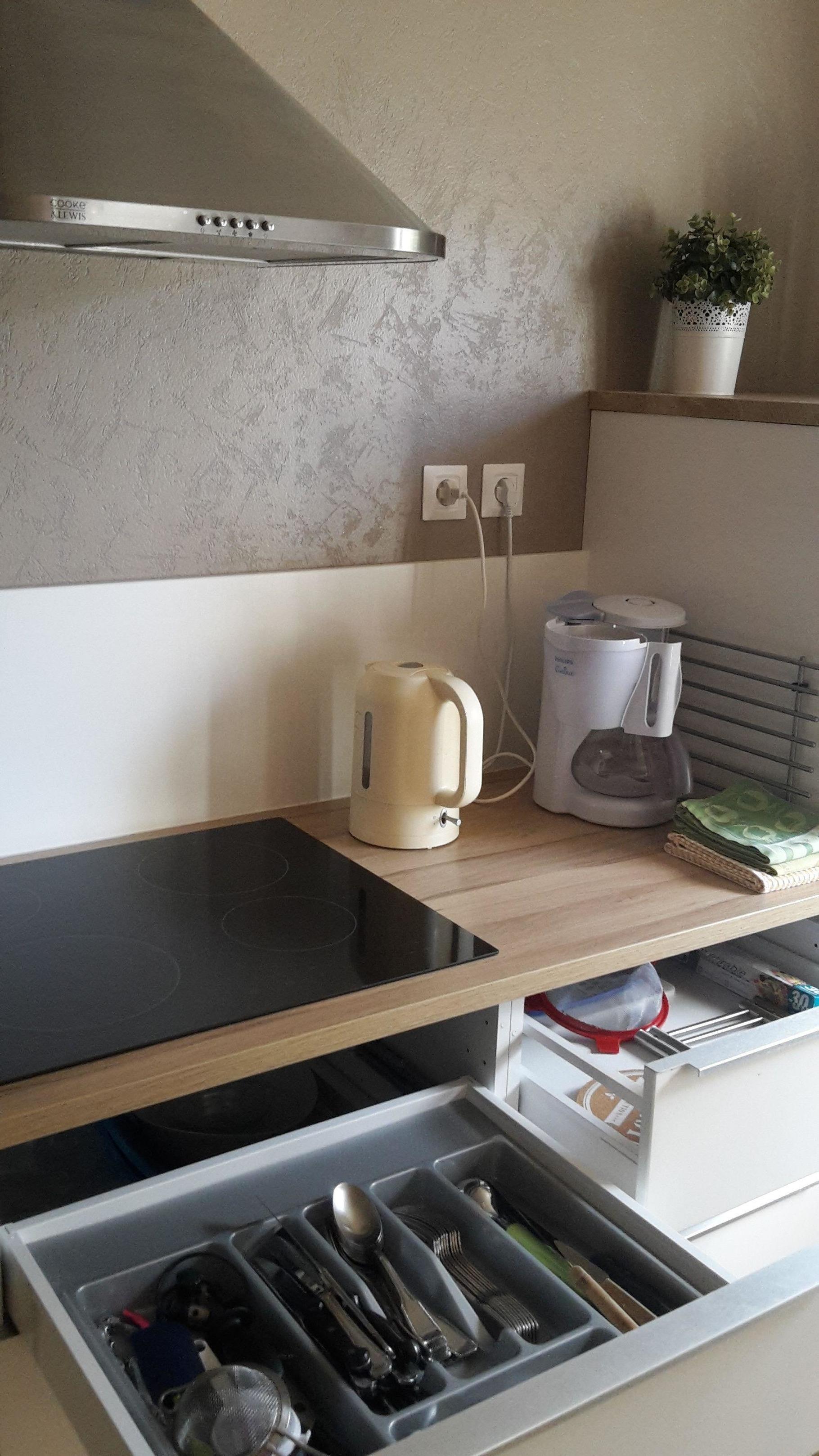 Im Erdgeschoss ist eine offene Küche und Esswohnzimmer. Die Küche ist neu (Mai 2016) und komplett eingerichtet mit Microwelle, Spülmaschine, Backofen, Kühlschrank, ausreichend Kochustensilien, Elektro- Kochplatten. Im Wohnzimmer istein Fernseher und DVD-Spieler, WLAN und Telefon (für lokale Anrufe und Empfang). Hier steht auch einen Holzofen zur Verfügung. Die Toilette und ein Abstellkammer sind ebenfalls im Erdgeschoss.