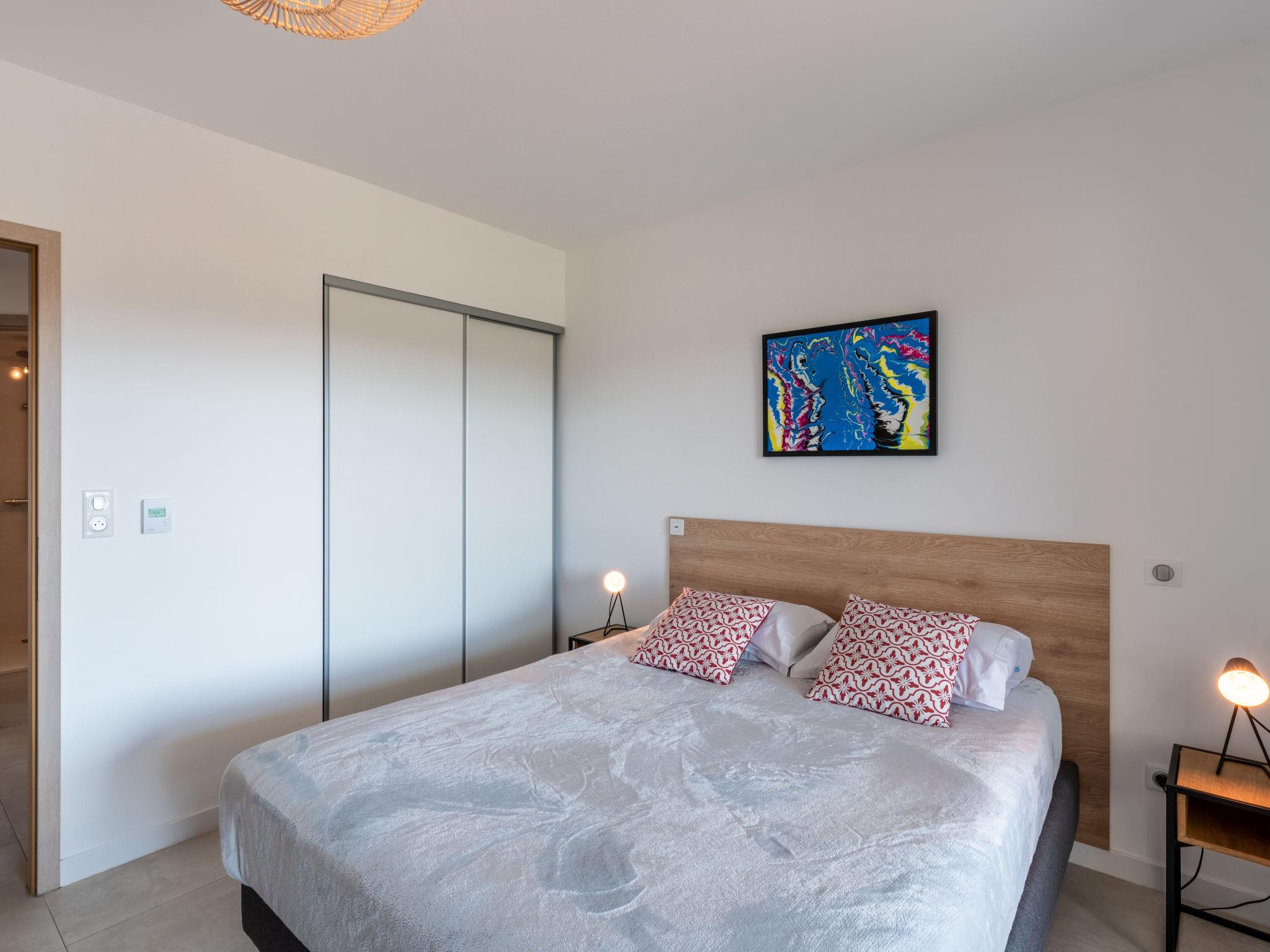 3-Zimmer-Wohnung 72 m2 im 5. Stock. Sehr schön und modern eingerichtet: Wohn-/Esszimmer mit 1 Doppeldiwanbett (160 cm, Länge 200 cm), TV (Flachbildschirm). Ausgang zur Terrasse. 1 Zimmer mit 1 franz. Bett (160 cm, Länge 200 cm). Ausgang zur Terrasse. 1 Zimmer mit 2 Betten (90 cm, Länge 190 cm). Offene Küche (Backofen, Geschirrspüler, 4 Induktionskochplatten, Toaster, Wasserkocher, Mikrowelle, Tiefkühler, elektrische Kaffeemaschine). Dusche/WC. E-Heizung, Klimaanlage. Terrasse 25 m2. Terrassenmöbel. Schöne Sicht auf die Berge. Zur Verfügung: Waschmaschine, Wäschetrockner. Internet (WLAN, gratis). Parkplatz. Bitte beachten: geeignet für Familien. Nichtraucher-Unterkunft. Rauchmelder. 2A247000320EC