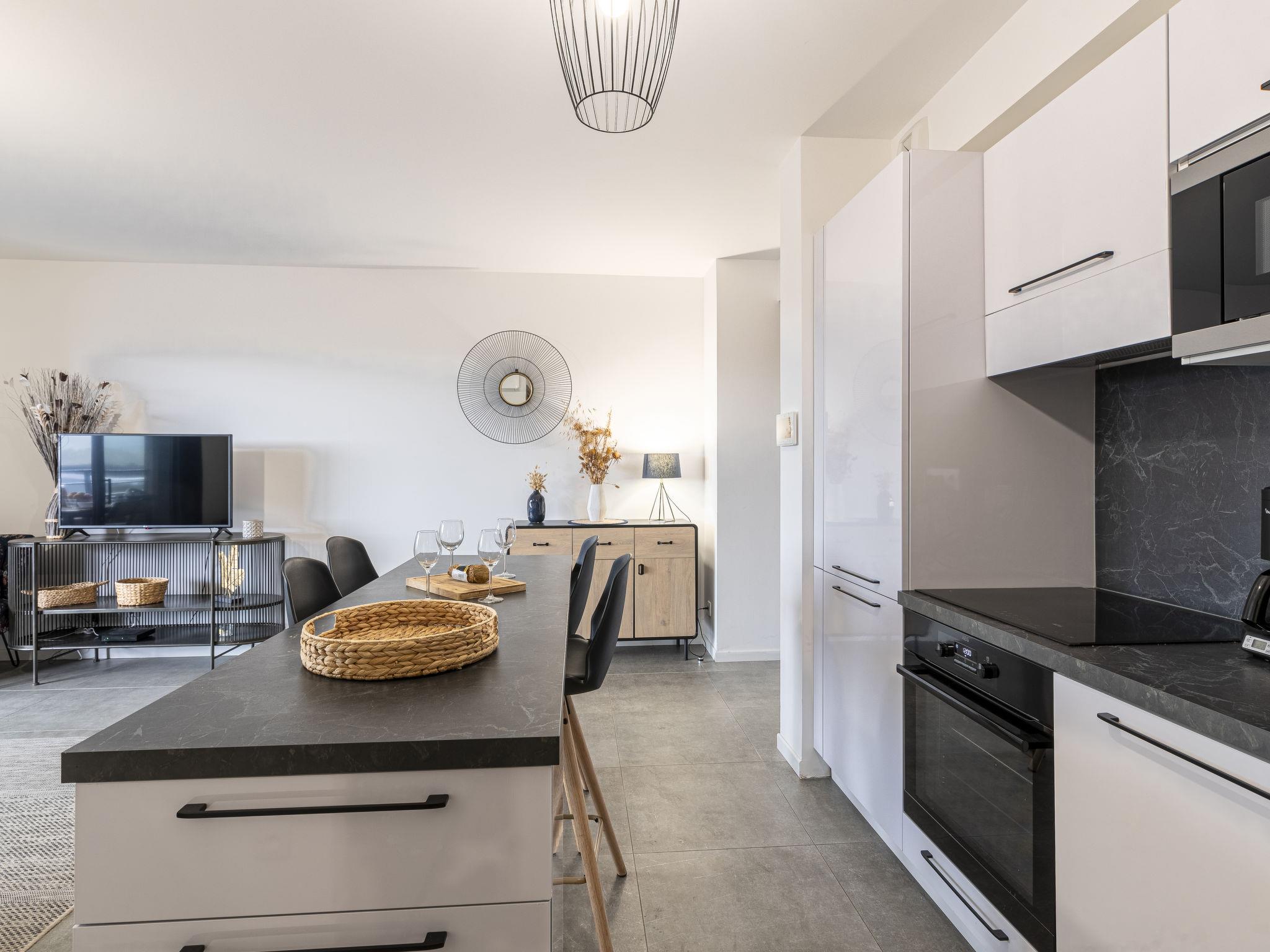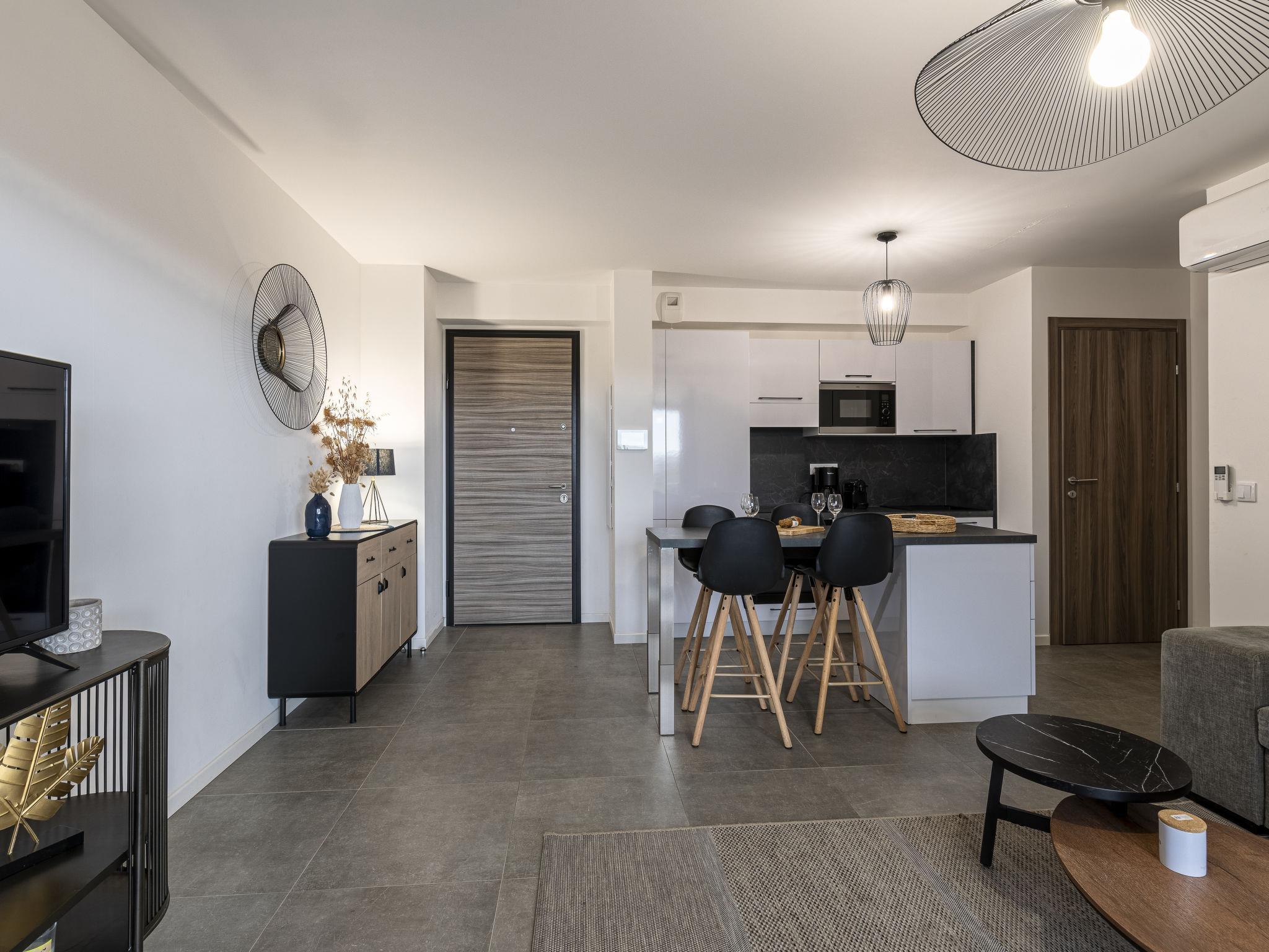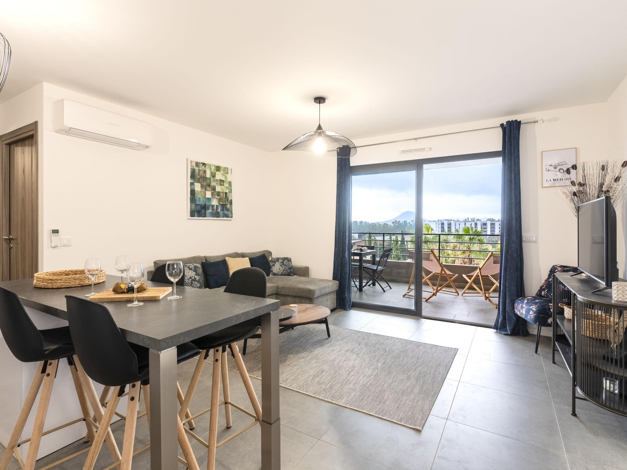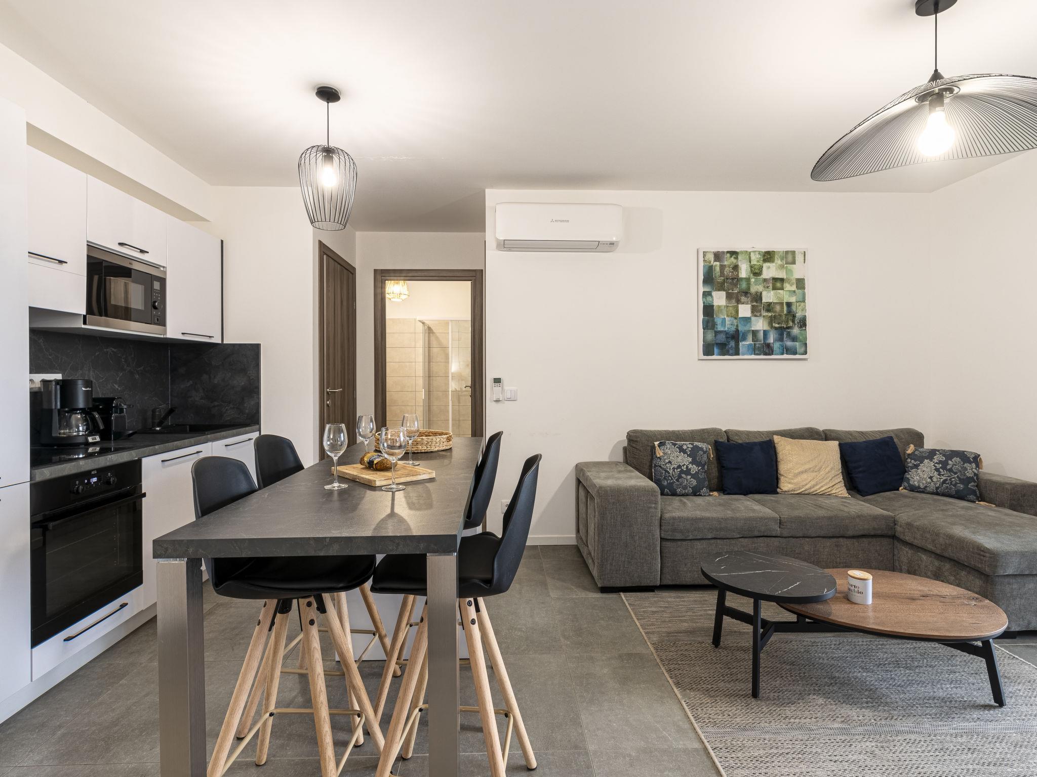 2-Zimmer-Wohnung 45 m2 im 2. Stock. Modern eingerichtet: Wohn-/Esszimmer mit Panoramafenster mit 1 Doppeldiwanbett (140 cm, Länge 190 cm), TV (Flachbildschirm). Ausgang zum Balkon, zur Terrasse. 1 Zimmer mit 1 franz. Bett (160 cm, Länge 200 cm). Ausgang zum Balkon, zur Terrasse. Offene Küche (Backofen, Geschirrspüler, 1 Induktionskochplatten, 4 Flammen, Toaster, Wasserkocher, elektrische Kaffeemaschine). Bad/WC. E-Heizung, Klimaanlage. Terrasse 20 m2, Südlage. Terrassenmöbel. Zur Verfügung: Waschmaschine. Internet (WLAN, gratis). Parkplatz Nr. 29 (1 Auto). Bitte beachten: Nichtraucher-Unterkunft. Rauchmelder. Inserat einer Privatperson nach Artikel 155, IV, CGI. 2A24700135994