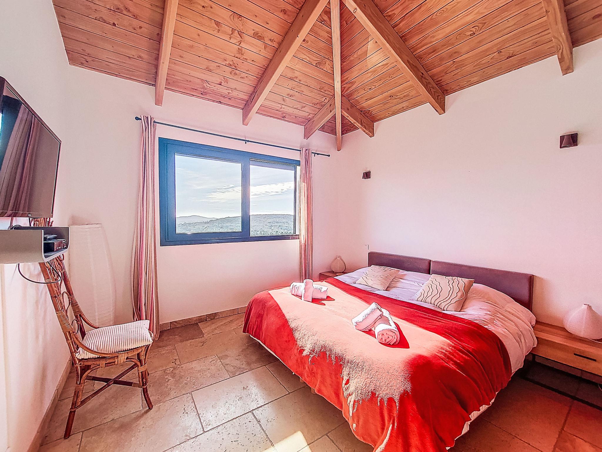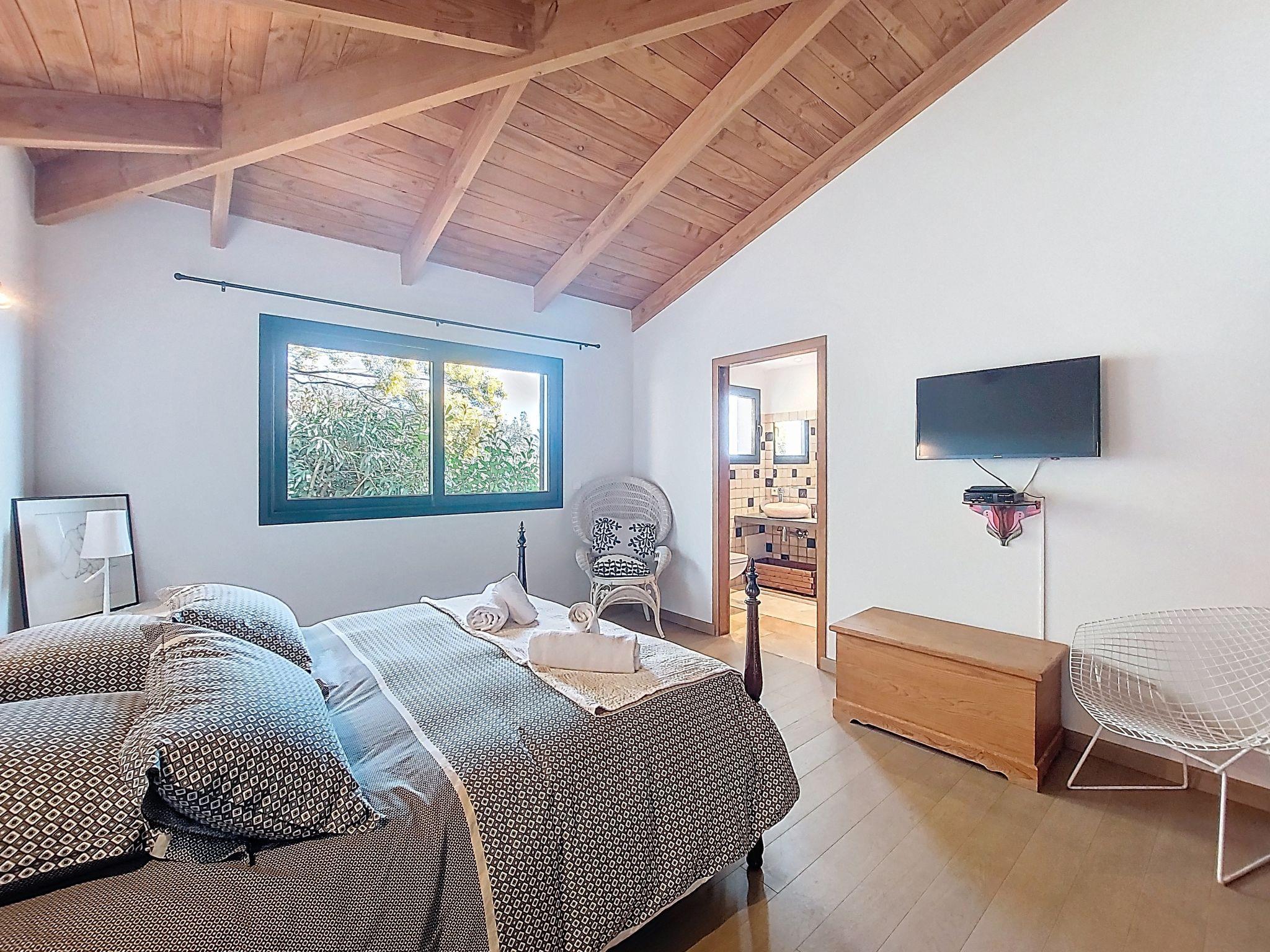Sehr schöne Villa "La Dorianzza", auf 2 Stockwerken. Im Weiler Qur Ferruccio, ruhige, erhöhte Lage, 8 km vom Meer, 8 m vom Strand. Zur Alleinbenutzung: grosser, gepflegter terrassierter Garten, 5'000 m2 (nicht eingezäunt) Pflanzen und Bäumen, Schwimmbad beheizt, nicht einsehbar, geschützt (15 x 4 m, 100 - 300 cm tief, saisonale Verfügbarkeit: 01.Jun. - 01.Okt.) mit Rollladenabdeckung. Boccia, Terrasse, Gartenmöbel, Grillhaus, Parkplatz (für 5 Autos). Supermarkt 7 km, Restaurant 2.3 km, Bushaltestelle "Porto-Vecchio Centre" 7 km, Sandstrand "Plage de Cala Verde" 8 km. Sporthafen 7 km, Golfplatz (9 Loch) 15 km. Nahe gelegene Sehenswürdigkeiten: Plage de Santa Giulia 15 km, Plage de Palombaggia 18 km, Porto-Vecchio 8 km. Bekannte Seen in der Umgebung sind gut erreichbar: Lac de l'Ospédale 16 km. Wandergebiete: Les Aiguilles de Bavella 40 km. Bitte beachten: Fahrzeug empfohlen.