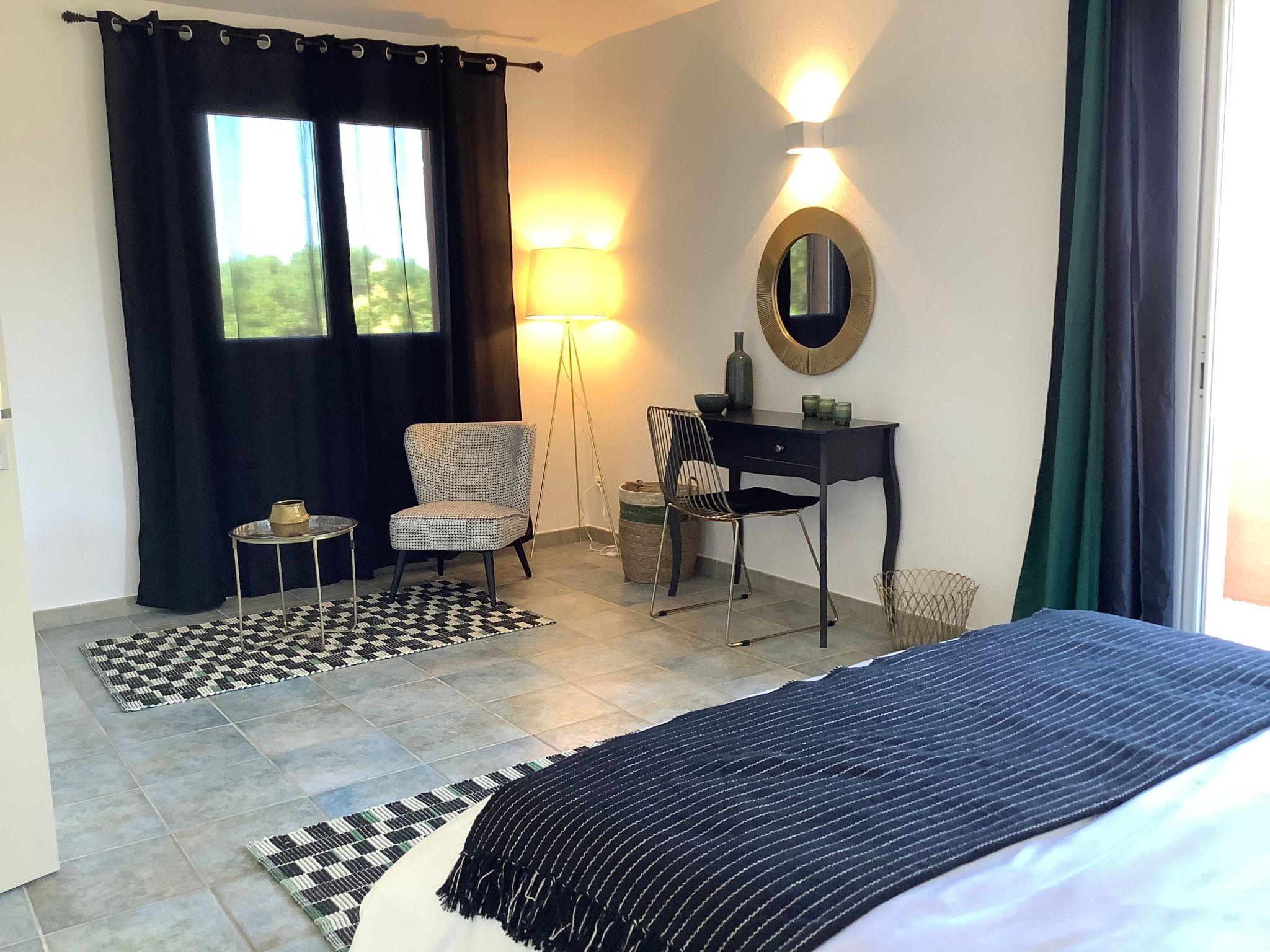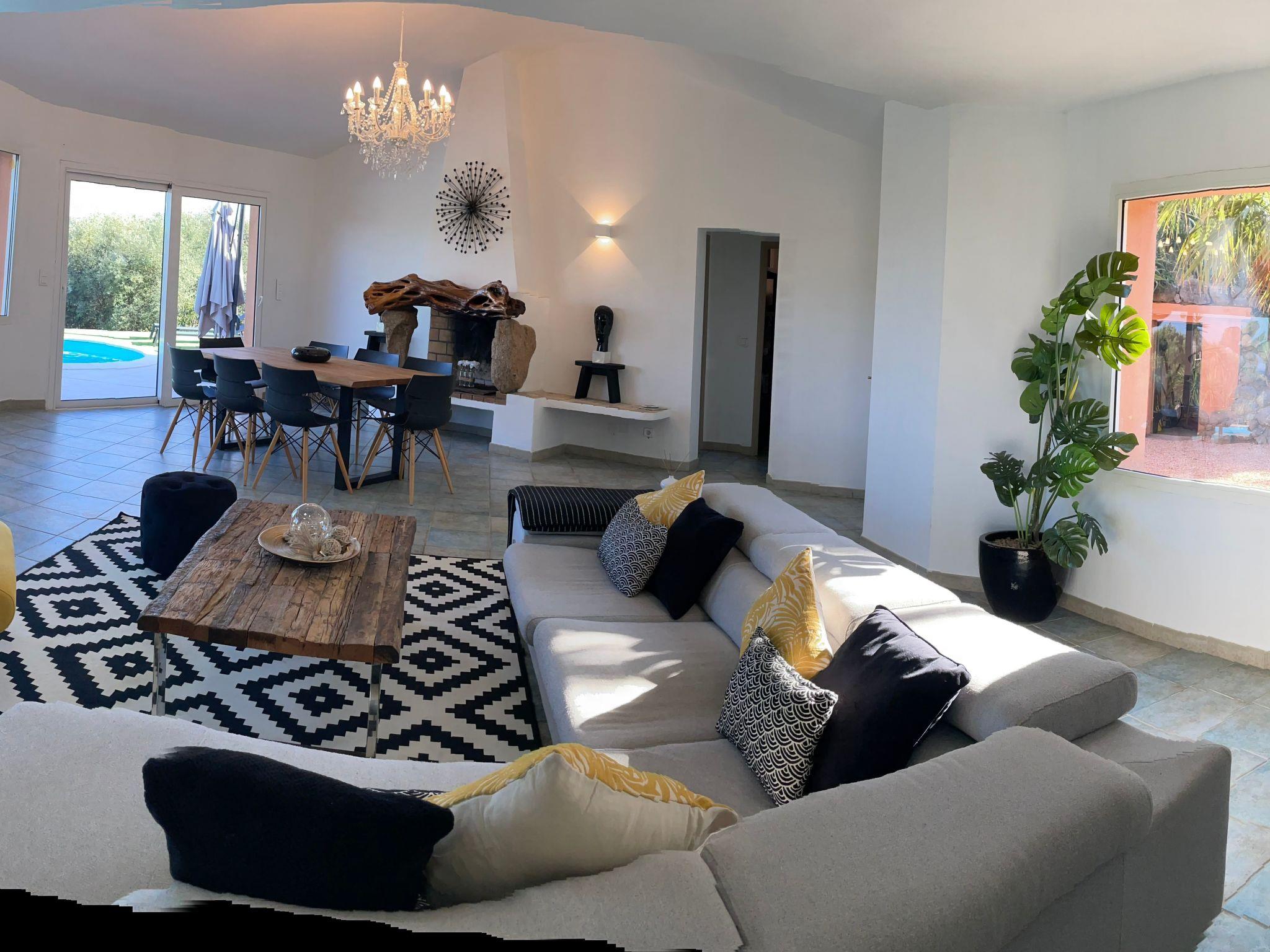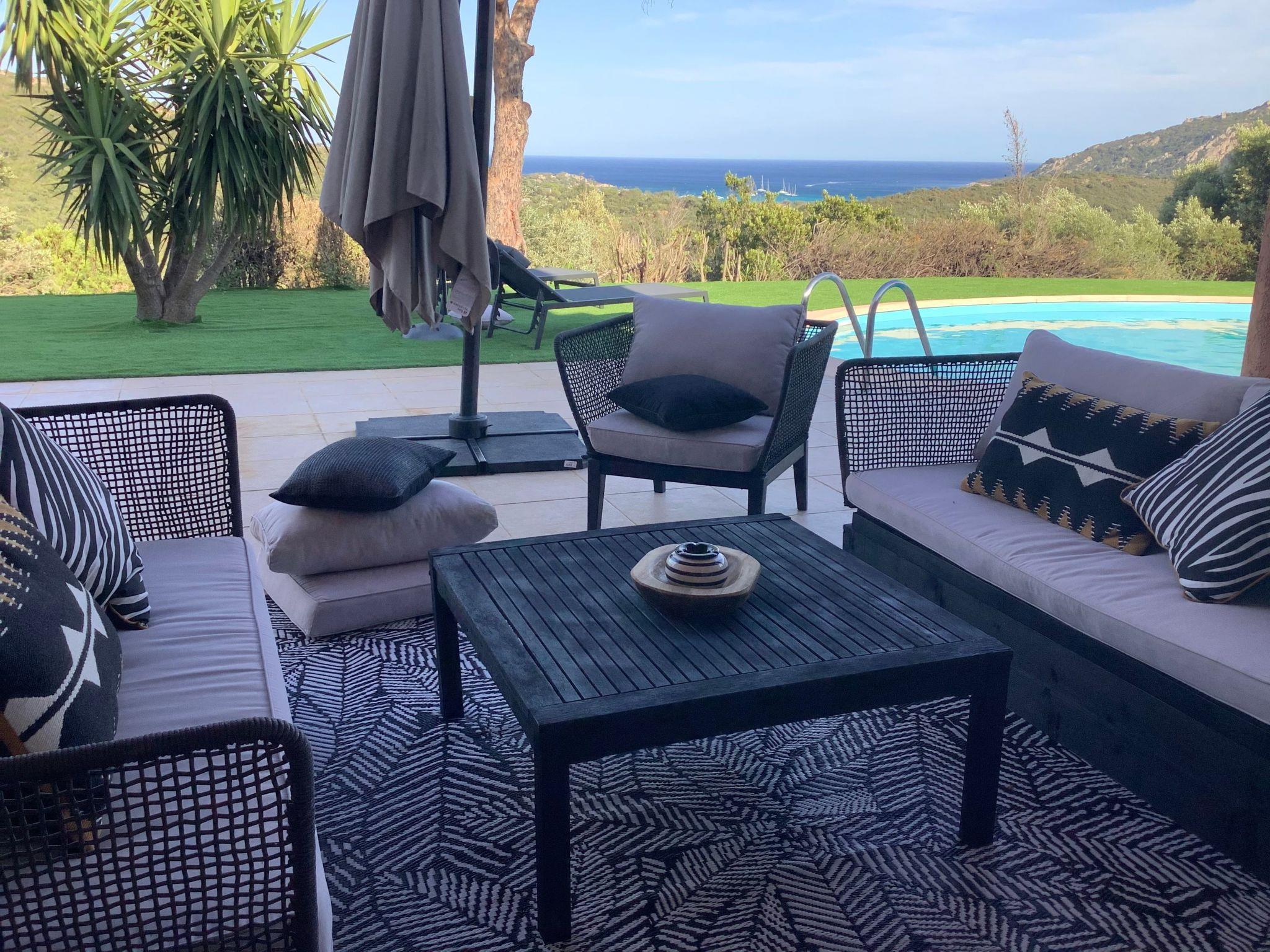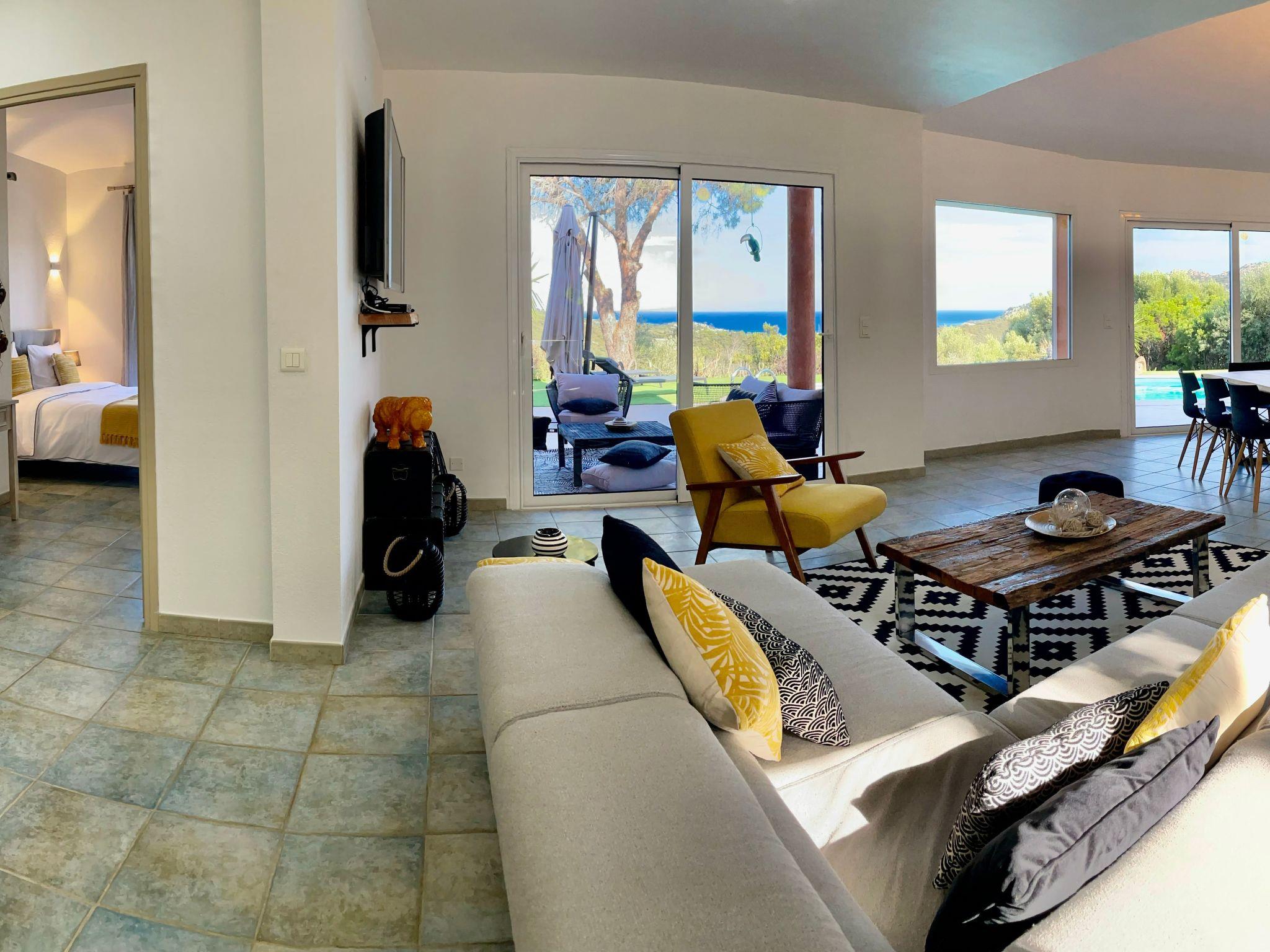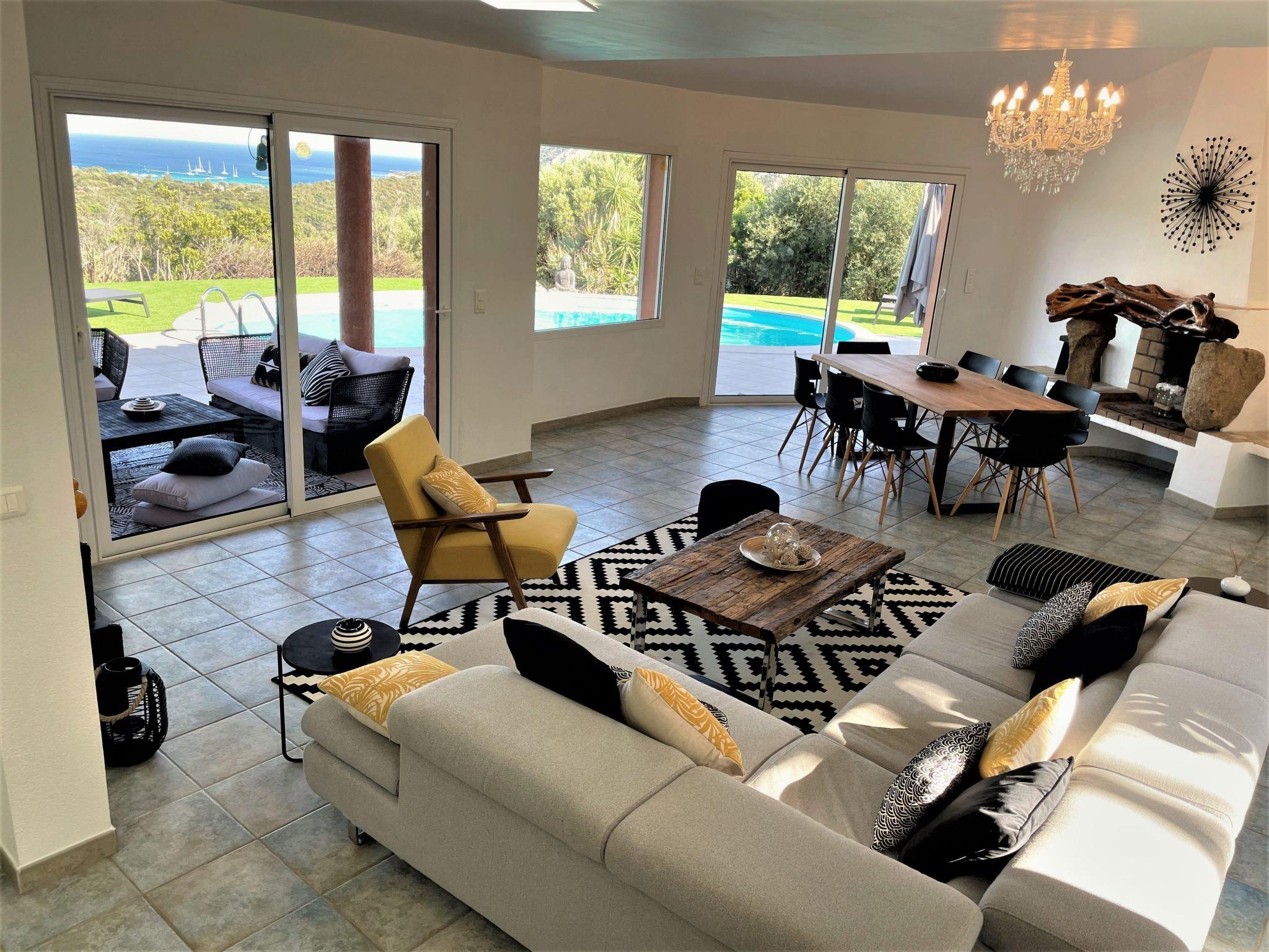 Die Villa befindet sich in ruhiger Lage, weniger als einen Kilometer vom Strand entfernt, und bietet einen Panoramablick auf das Meer. Sie verfügt über ein 3550 m² großes, eingezäuntes Grundstück mit einem Digicode-Tor. Sie ist freistehend und befindet sich in einer gut besuchten und ruhigen Umgebung.