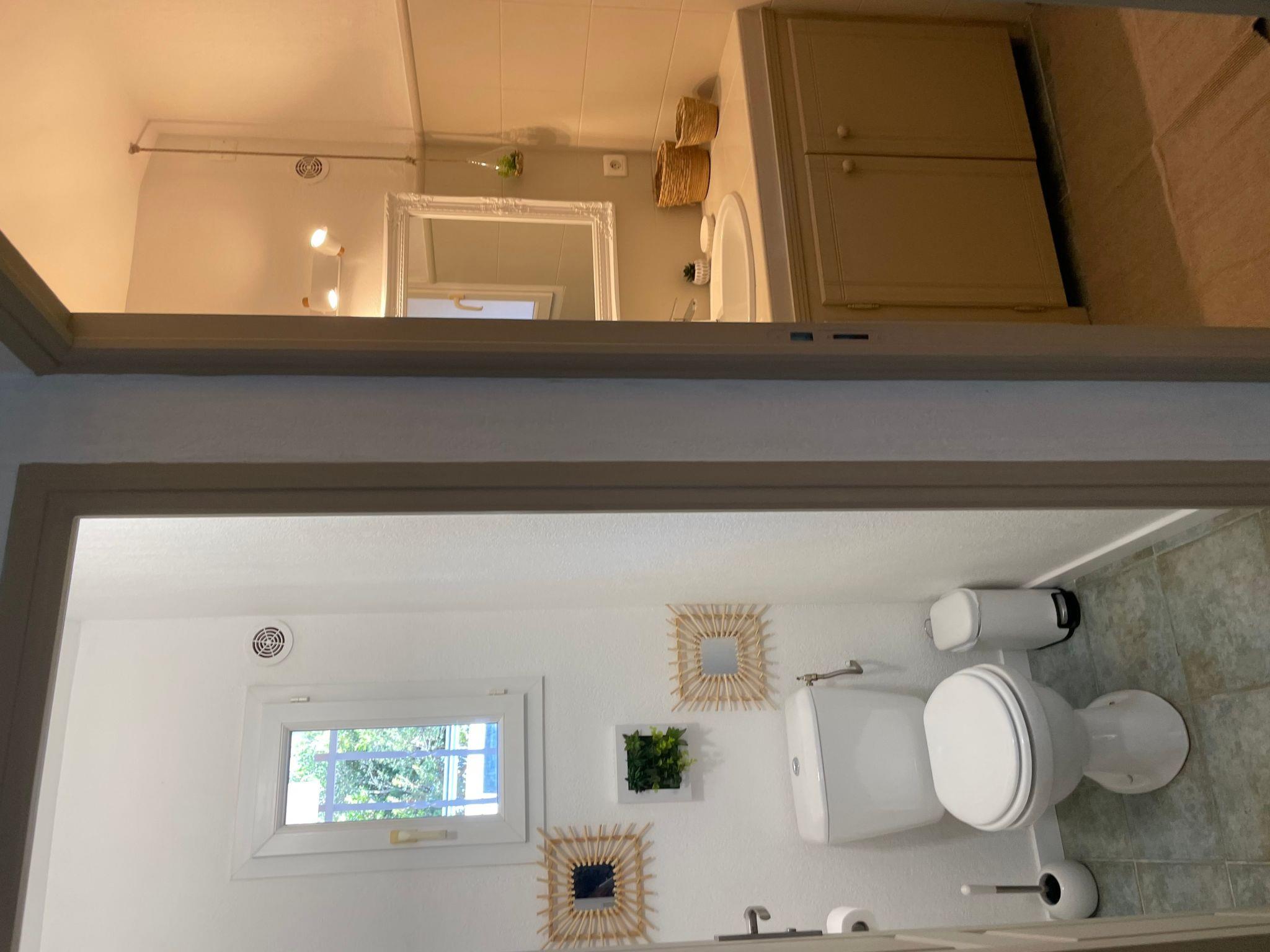 Voll ausgestattete Küche mit Geschirrspüler, Mikrowelle, Kühlschrank mit Gefrierfach, Induktionskochfeld, etc. 2 Badezimmer, 2 WC, begehbare Dusche und Badewanne. Dusche im Freien. Kostenloses WiFi-Breitband.