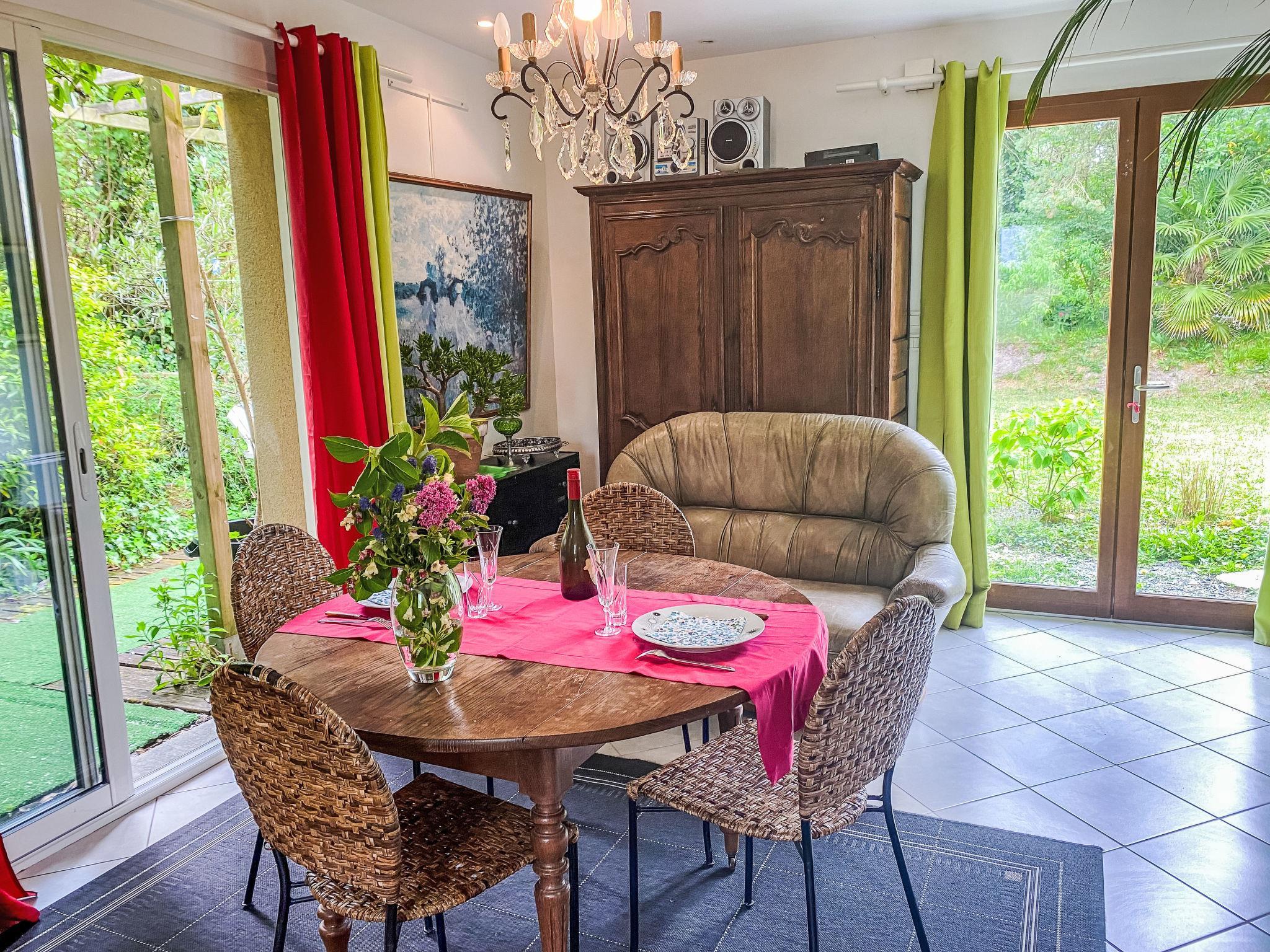 "Les Coquelicots", 2-Zimmer-Haus 50 m2. Komfortabel und schön eingerichtet: Wohn-/Esszimmer mit Esstisch und TV. Ausgang zum Gartensitzplatz. 1 Zimmer mit 1 franz. Bett (140 cm, Länge 190 cm). Ausgang zum Gartensitzplatz. Offene Küche (Backofen, 1 Induktionskochplatten, 3 Flammen, Toaster, Wasserkocher, Mikrowelle, Tiefkühler, elektrische Kaffeemaschine). Dusche, sep. WC. E-Heizung. Terrasse, Rasen 500 m2. Terrassenmöbel. Zur Verfügung: Waschmaschine, Bügeleisen. Internet (WLAN, gratis). Bitte beachten: Nichtraucher-Haus. Rauchmelder. Inserat einer Privatperson nach Artikel 155, IV, CGI.