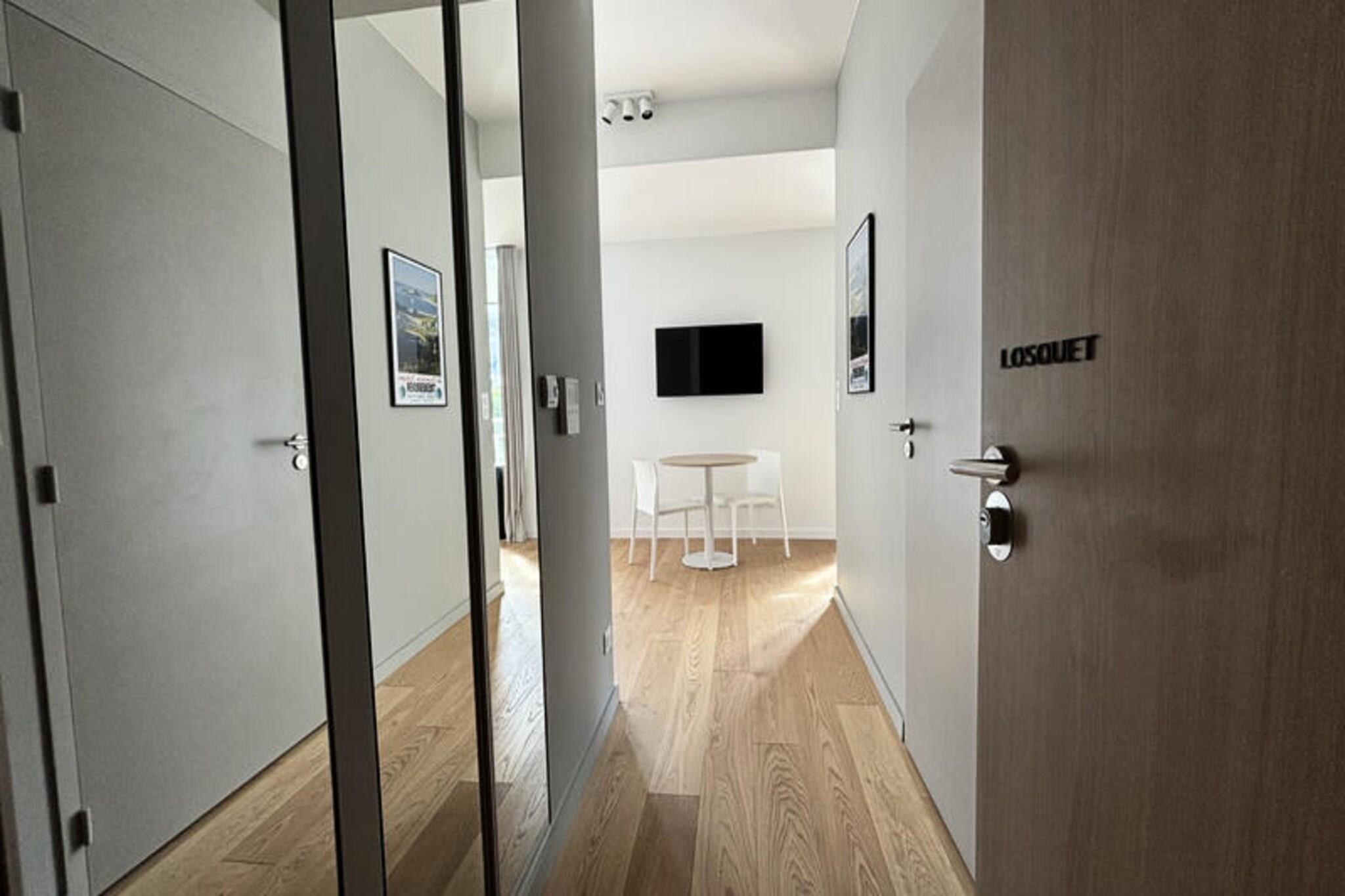 Willkommen in „Losquet“ – Ihrer Oase der Ruhe in Trébeurden! Entdecken Sie „Losquet“, unser charmantes Studio im 2. Stock des Centre Philippe-Joppé, ein architektonisches Werk des renommierten Büros Wilmotte & Associés. Mit direktem Zugang zum Strand Tresmeur in Trébeurden ist dieses kleine Paradies der perfekte Ort für einen unvergesslichen Urlaub am Meer. Unser 25 m² großes Studio wurde so gestaltet, dass es Komfort und Ruhe bietet. Nach einem erlebnisreichen Tag an der bretonischen Küste können Sie in einem gemütlichen Innenbereich entspannen oder die wunderschön angelegten Außenbereiche genießen. Das Studio verfügt über einen voll ausgestatteten Küchenbereich, ein modernes Badezimmer und eine Toilette. Das Schlafsofa im Wohnzimmer ist sehr bequem. Für Ihren Komfort finden Sie in der Wohnung einen Waschtrockner, eine Nespresso-Kaffeemaschine und alles, was Sie für die Zubereitung Ihrer Mahlzeiten benötigen. Wenn Sie im „Losquet“ übernachten, haben Sie auch Zugang zu einem herrlichen beheizten Innenpool (15 x 4 m; Tiefe 1,40 m), der das ganze Jahr über zugänglich ist und sich bei jedem Wetter perfekt zum Entspannen eignet. Die Residenz ist durch einen Wachmann vor Ort gesichert und ein Aufzug steht Ihnen zur Verfügung, um Ihre Reise zu vereinfachen. Wir würden uns freuen, Sie in „Losquet“ zu einem unvergesslichen Kurzurlaub in der Bretagne begrüßen zu dürfen. Lassen Sie sich diese einmalige Gelegenheit nicht entgehen, am Meer neue Energie zu tanken. Buchen Sie jetzt Ihren Aufenthalt in unserer Oase der Ruhe!