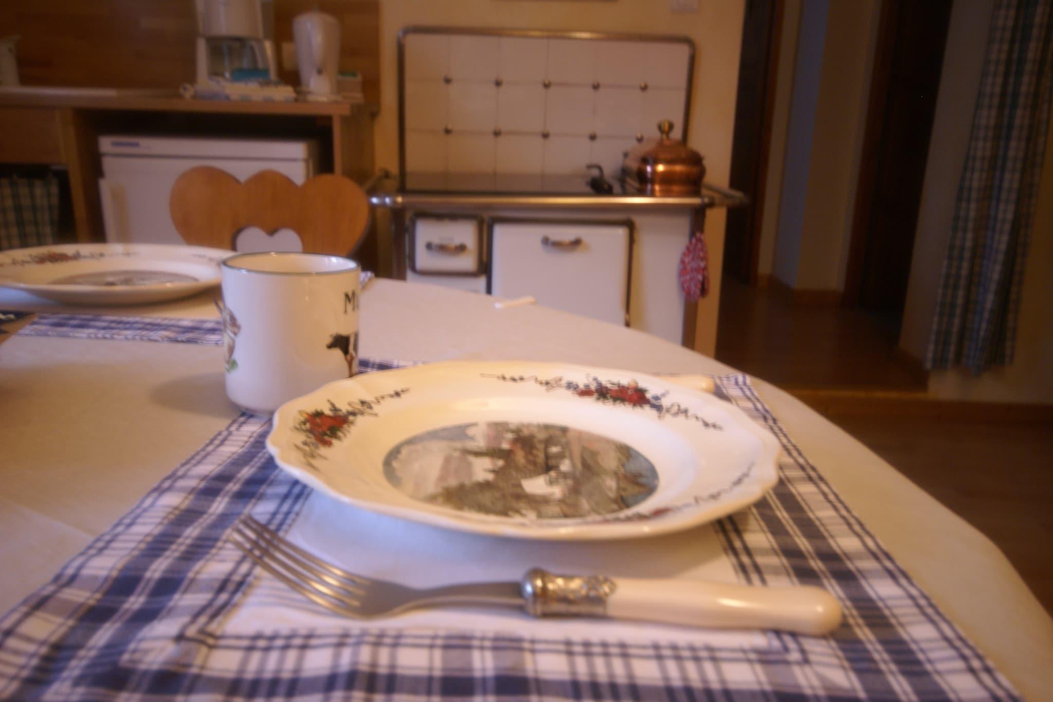 In der 1. Etage: (offene Küche(Kochherd(Ceranfeld), Backofen, Mikrowelle), Wohn-/Schlafzimmer(Einzelunterschiebebett, Schlafcouch 1 Pers., TV), Schlafzimmer(Doppelbett), Badezimmer(Dusche, Waschbecken), Toilette) Heizung, Terrasse(Gemeinschaftliche Nutzung mit anderen Gästen), Gartenmöbel, Kinderbett(auf Anfrage), Hochstuhl(auf Anfrage)