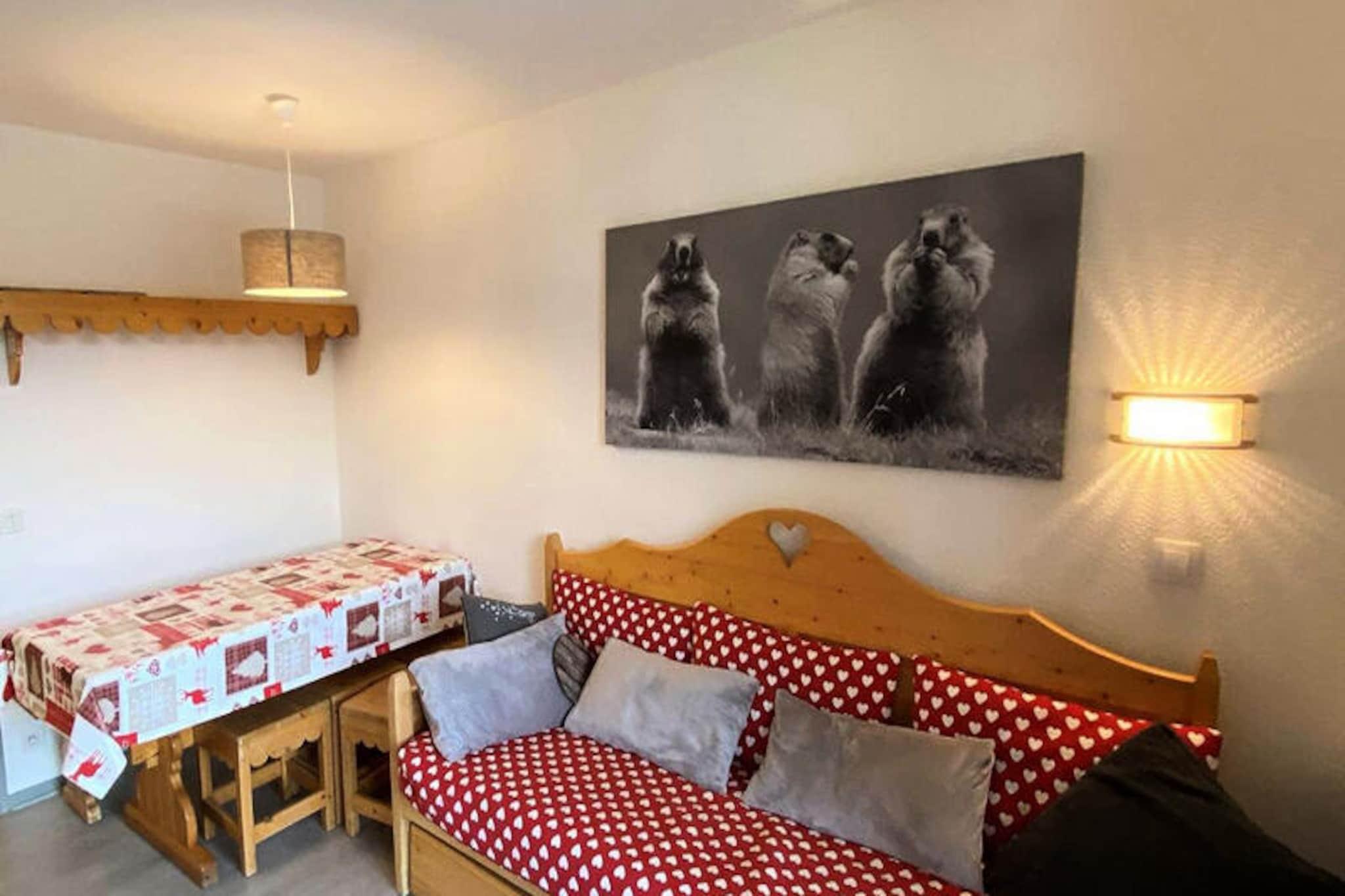 Mitten in einem charmanten Alpendorf bietet dieses reizende Apartment im zweiten Stock den perfekten Rückzugsort für Familien und Freunde, die einen gemütlichen Bergurlaub verbringen möchten. Mit seiner warmen Einrichtung und durchdachten Ausstattung bietet es eine einladende Atmosphäre für bis zu sechs Gäste. Die Unterkunft liegt ideal, nur 100 Meter von den Pisten, Geschäften und Freizeitmöglichkeiten entfernt, sodass Sie alles Notwendige bequem erreichen können. Ob Sie zum Skifahren, Wandern oder einfach nur zum Entspannen kommen – diese Ferienwohnung verspricht einen unvergesslichen Aufenthalt in den französischen Alpen. Im Inneren erwartet Sie eine durchdachte Raumaufteilung mit einem komfortablen Wohnzimmer mit Ausziehbett, einer voll ausgestatteten Küche zur Zubereitung köstlicher Mahlzeiten und zwei einladenden Schlafzimmern – eines mit Ausziehbett und das andere mit Etagenbett. Zusätzlich bietet ein separater Schlafbereich ein Einzelbett, ideal für weitere Gäste oder Kinder. Das Apartment verfügt außerdem über ein modernes Badezimmer und ein separates WC. Ein privater Balkon rundet das Angebot ab und bietet einen atemberaubenden Blick auf die umliegende Alpenlandschaft – der perfekte Ort, um Ihren Morgenkaffee zu genießen oder nach einem erlebnisreichen Tag zu entspannen. Die Lage ist unschlagbar: Ortskern, Skipisten und Geschäfte sind bequem zu Fuß erreichbar. Im Winter können Sie in wenigen Minuten auf der Piste sein, während der Sommer zum Wandern, Mountainbiken und Erkunden der atemberaubenden Landschaft einlädt. Haustiere sind willkommen (gegen Aufpreis) – ideal für Familien. WLAN steht Ihnen gegen Gebühr zur Verfügung, damit Sie während Ihres gesamten Aufenthalts in Verbindung bleiben. Ob Sie den Nervenkitzel der Pisten, die Ruhe alpiner Wanderwege oder den Charme eines traditionellen Bergdorfs suchen – dieses Apartment ist der perfekte Ausgangspunkt für Ihre Abenteuer. Buchen Sie jetzt und erleben Sie unvergessliche Momente im Herzen der französischen Alpen.
