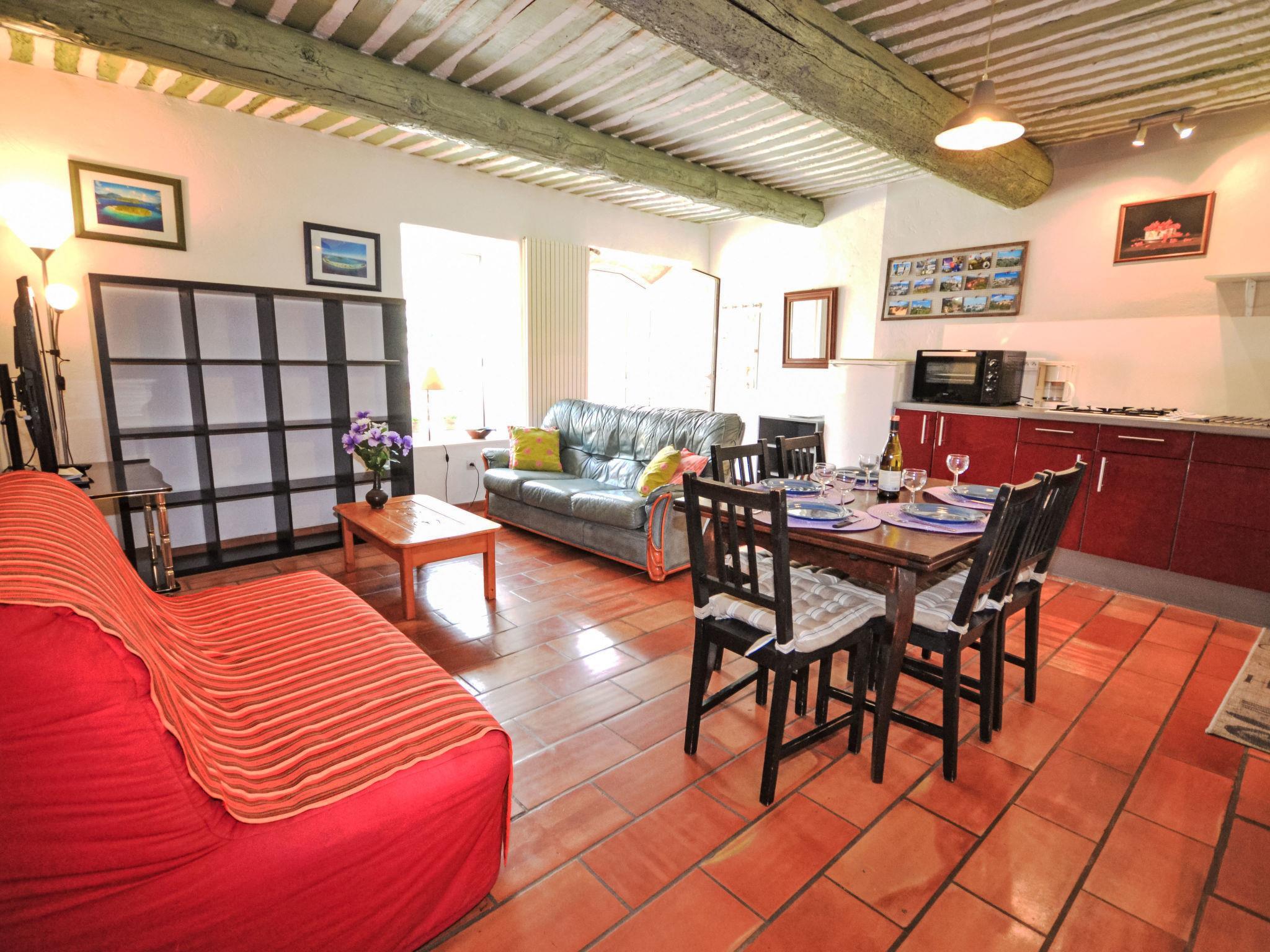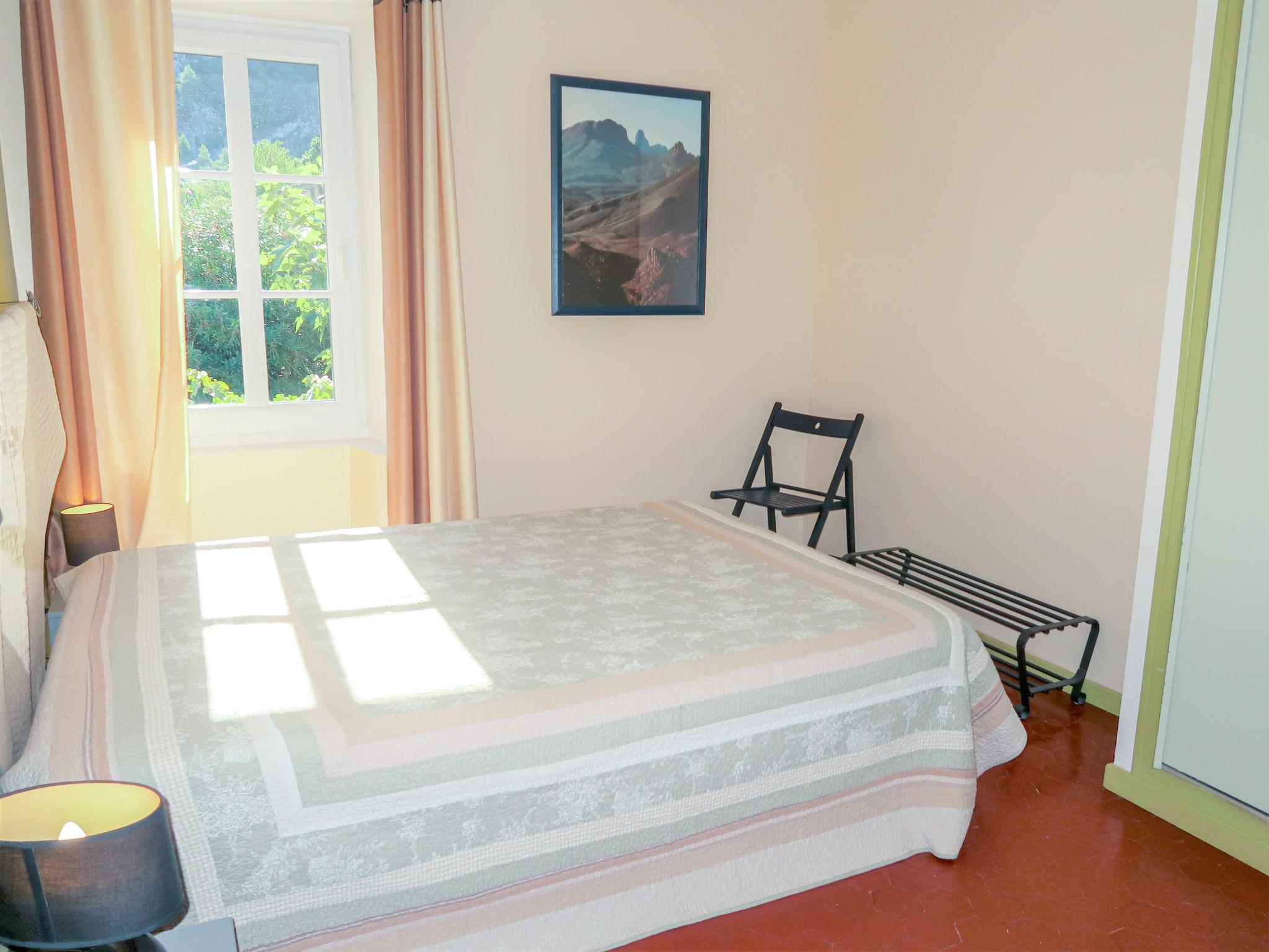 3-Zimmer-Reihenhaus 65 m2 auf 2 Stockwerken. Rustikal eingerichtet: Wohn-/Esszimmer mit TV und Flachbildschirm. Kochnische (4 Kochplatten, Geschirrspüler, elektrische Kaffeemaschine). Obergeschoss: 1 Zimmer mit 1 franz. Bett (140 cm, Länge 190 cm). 1 Zimmer mit 1 Bett (90 cm, Länge 190 cm), 1 franz. Bett (1 x 140 cm, Länge 190 cm). Dusche, sep. WC. Heizung, Klimaanlage. Terrasse 15 m2. Terrassenmöbel, Gartengrill, Liegestühle (4). Sicht. Zur Verfügung: Waschmaschine, Bügeleisen, Kinderhochstuhl, Babybett, Haartrockner. Internet (Wireless LAN, gratis). Bitte beachten: Rauchmelder. FR8019.103.1