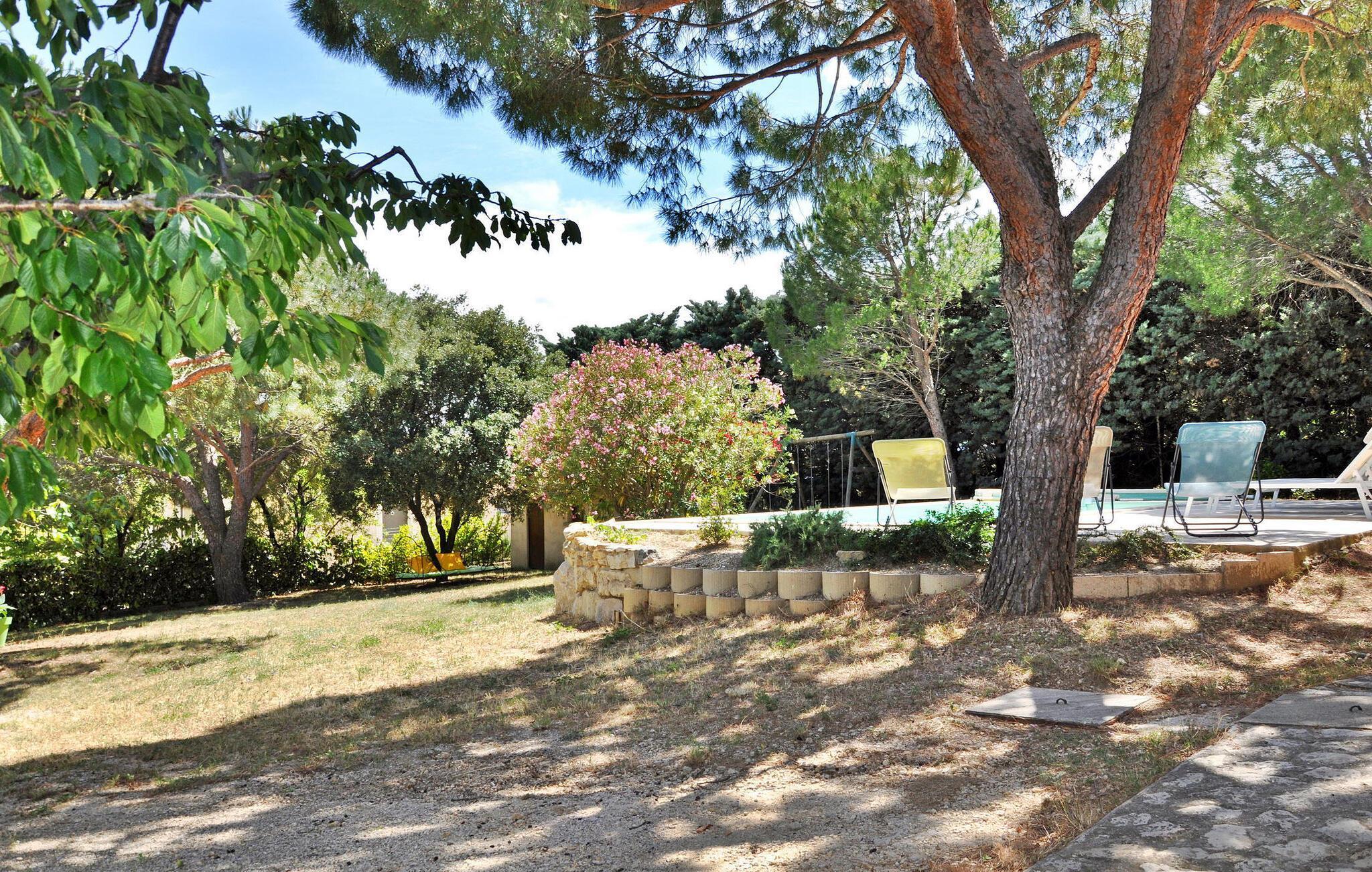 Entdecken Sie dieses ruhige provenzalische Ferienhaus in Rochefort du Gard, in der Nähe von Avignon. Es liegt in einer ruhigen Wohngegend und günstig in der Nähe des Dorfzentrums. Das Haus bietet im Erdgeschoss alles, einschließlich einer gut ausgestatteten Küche mit modernen Geräten. Der Ess-Wohnbereich ist mit bequemen Sitzgelegenheiten und einem Fernseher ausgestattet und führt durch französische Fenster auf die Terrasse. Weitere Annehmlichkeiten wie ein Gefrierschrank und eine Waschmaschine stehen in der Garage zur Verfügung. Im Freien bietet das umzäunte Grundstück inmitten von Pinien und Eichen Ruhe. Die über Stufen zugängliche Terrasse bietet einen schattigen Essbereich mit einer Plancha und ist der perfekte Ort für Zusammenkünfte im Freien. Der private Pool ist mit einer Sicherheitsabdeckung gesichert, misst 6 x 3,50 m und verfügt über Sonnenliegen zum Entspannen. Diese provenzalische Oase lädt Sie ein, inmitten der Schönheit der Natur zu entspannen und bietet einen privaten Pool und eine friedliche Umgebung für ein erholsames Urlaubserlebnis in Rochefort du Gard, in dem Sie die Essenz der Provence genießen können. Das Haus liegt in einer ruhigen und grünen Wohngegend auf den Höhen des Dorfes Rochefort du Gard, mitten in einem Pinienwald, etwa 1,5 km vom Dorf und den Geschäften entfernt. Rochefort du Gard liegt in der Nähe von Avignon, dem Pont du Gard, der Stadt Uzès und ihrem Herzogtum. Auch die Alpilles, das Lubéron und die Camargue können Sie bei Ihren Tagesausflügen in der Provence entdecken.