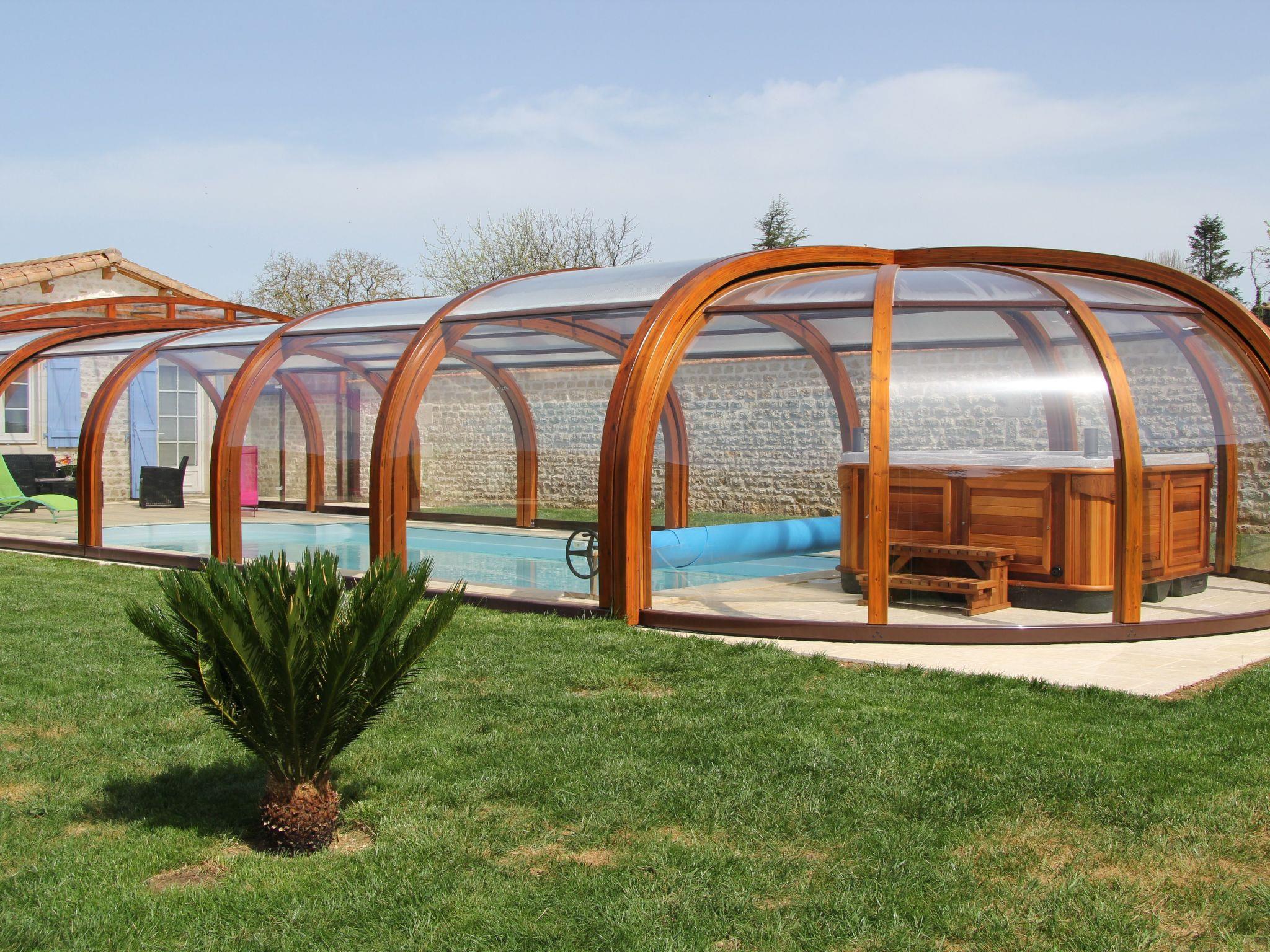 Im Herzen dieser Residenz finden Sie einen privaten, überdachten Swimmingpool und ein Spa, die entspannende und erfrischende Momente unter der Sonne versprechen. Die angrenzende Terrasse bietet den perfekten Platz für Mahlzeiten im Freien oder einfach nur, um die Ruhe der Umgebung zu genießen. Der private Garten lädt zum Entspannen und Spielen im Freien ein und bietet eine idyllische Kulisse für Ihren Urlaub.