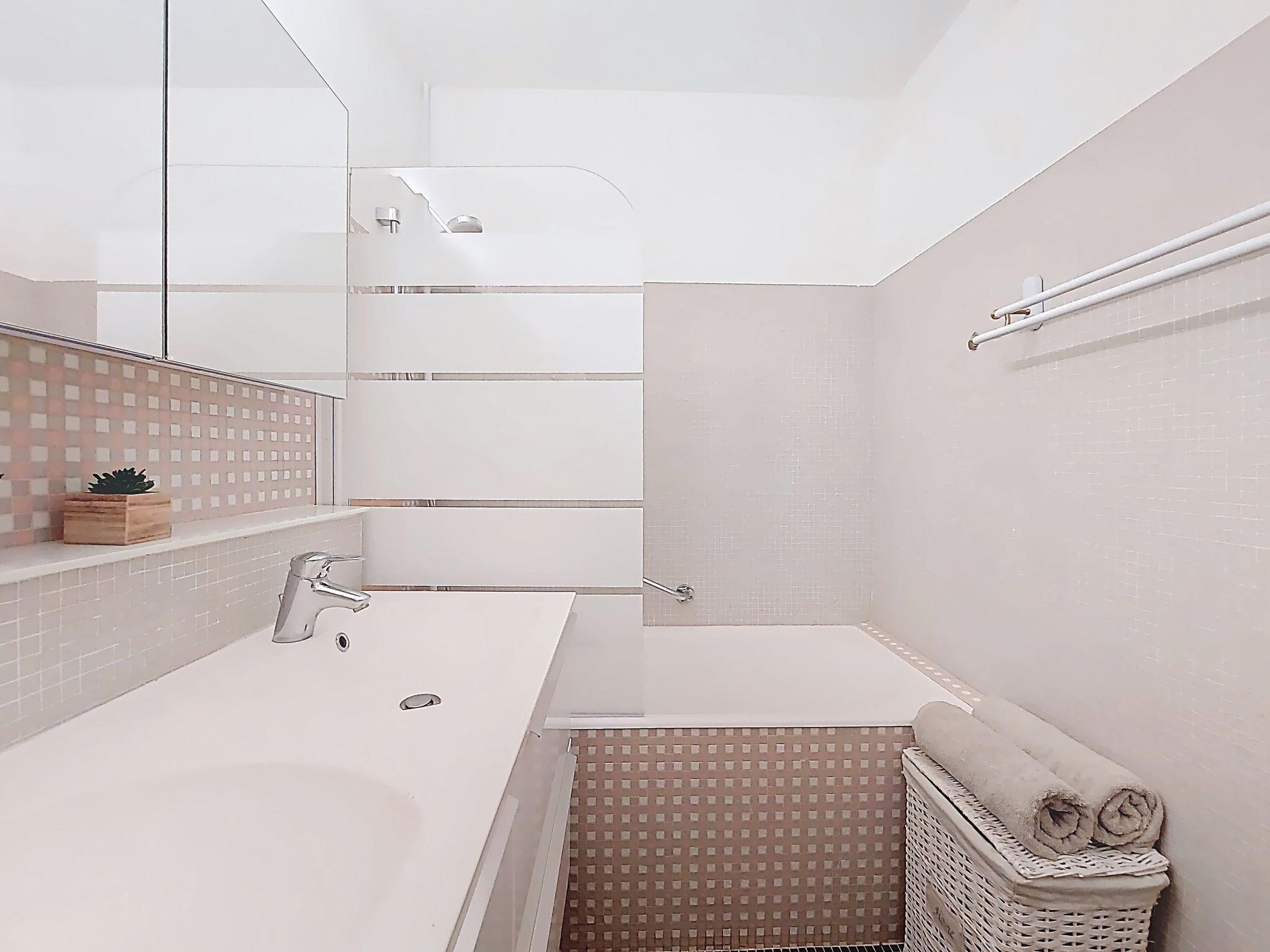 2-Zimmer-Wohnung 47 m2 im 4. Stock. Hell, komfortabel eingerichtet: Wohn-/Esszimmer mit 1 Doppeldiwanbett (140 cm, Länge 190 cm), Flachbildschirm und Klimaanlage. Ausgang zur Terrasse. 1 Zimmer mit 1 Doppelbett (140 cm, Länge 190 cm), Klimaanlage. Ausgang zur Terrasse. Küche (Backofen, Geschirrspüler, 3 Glaskeramikplatten, Toaster, Wasserkocher, Mikrowelle, elektrische Kaffeemaschine). Ausgang zur Terrasse. Bad, sep. WC. Grosse Terrasse 15 m2, Ostlage. Terrassenmöbel, Sitzplatz. Sicht auf das Meer, die Berge und die Ortschaft. Zur Verfügung: Waschmaschine. Internet (Wireless LAN, extra). Parkplatz. Bitte beachten: Parkplatz nur für kleine Wagen. 1 kleines Haustier/Hund erlaubt. Rauchmelder. Inserat einer Privatperson nach Artikel 155, IV, CGI. 06104001557LR