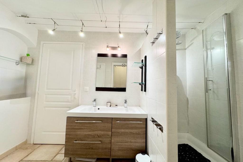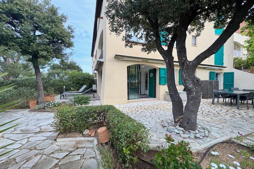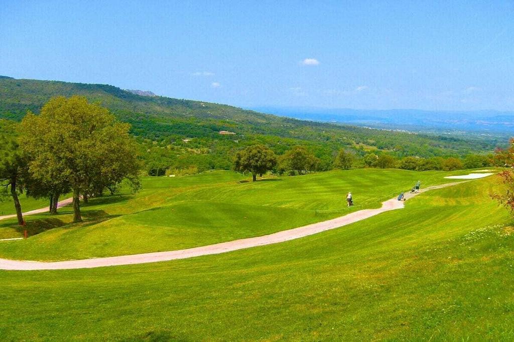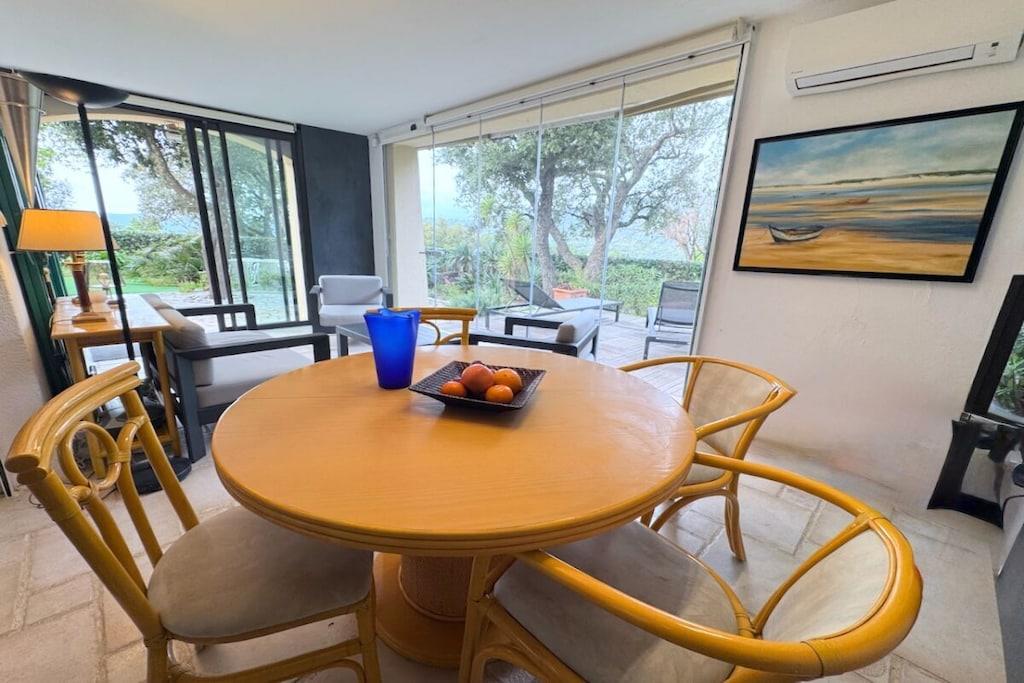 This ground floor-apartment with garden around, two great terraces and views to the golf-course of Roquebrune-sur-Argens is available for 6/7 persons (4 adults & 3 children) with a double bed, a sofa bed and a 3 layers bunkbed, and is situated is the beautiful Domaine du Golf, which facilities include a large pool with a separate children’s pool, sunbeds, shadow places, three tennis courts, jeu de boules area and access to many countryside walks! Located in the environs of the 18-hole golf course of Roquebrune sur Argens at the ground-floor of an apartment complex in Le Domaine du Golf, 5 min. from the Mediterranean sea and the villages of Saint Aygulf, Les Issambres and Sainte Maxime. The format is as follows: private entrance through the garden around the apartment with a large dining terrace with Gas-BBQ and a second terrace with sumbeds, conservatory with seating and dining area, sliding doors to 2nd seating area with sofa bed, closed kitchen with oven, microwave, fridge/freezer. Bedroom with double bed and doors to the side garden, bathroom with shower, separate toilet and a bedroom with a 3-layer bunk bed. The apartment is equipped with airconditioning.
