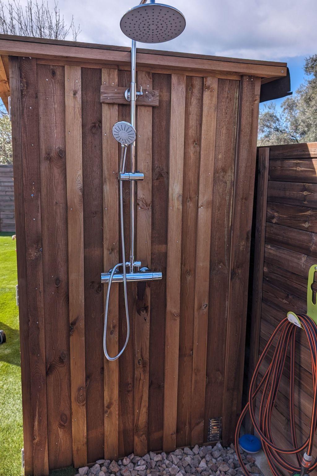 Private Terrasse ??? : Genießen Sie entspannte Momente auf Ihrer privaten Terrasse mit Lounge, Sonnenschirm, Liegestühlen, Tisch und Stühlen sowie der Außendusche. Genießen Sie einen Kaffee am Morgen mit Blick auf den Sonnenaufgang oder ein Glas Wein am Abend mit Blick auf die Sterne.
