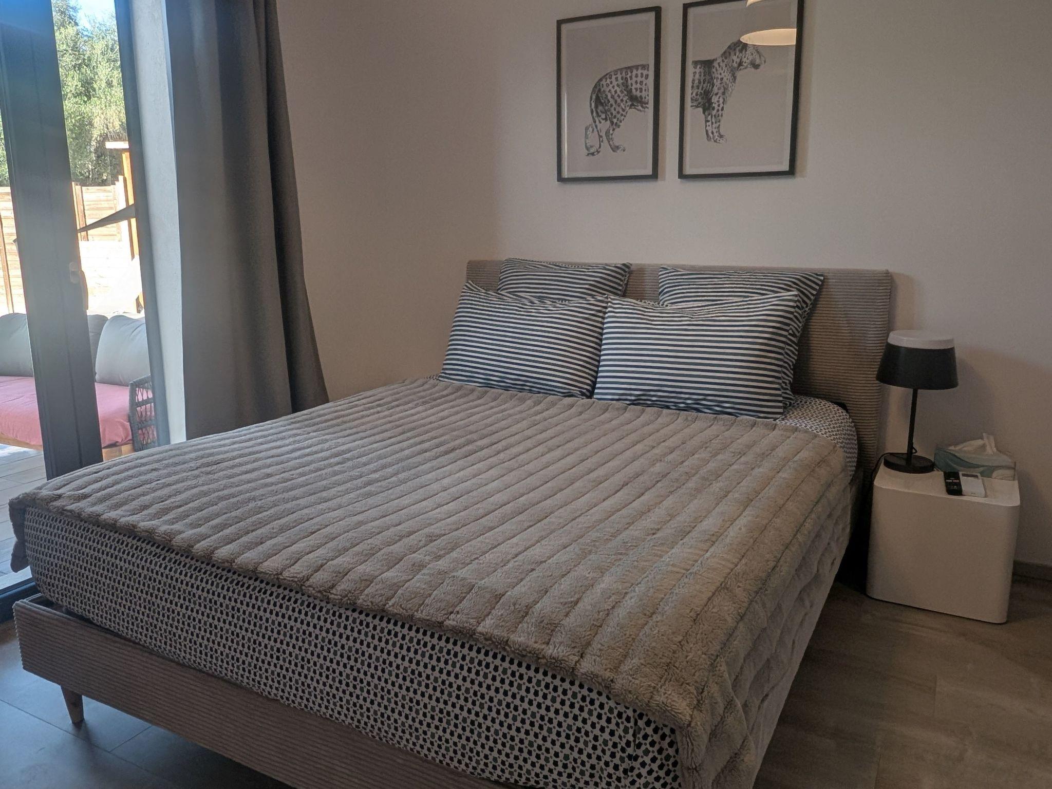 Cocooning-Zimmer ?????: Das Hauptschlafzimmer ist ein echter Komfort-Kokon mit einem 160 cm breiten Bett, Connected TV und einer Klimaanlage für ruhige Nächte. Das Bett ist bereits für Ihre Ankunft vorbereitet, um Sie herzlich willkommen zu heißen.