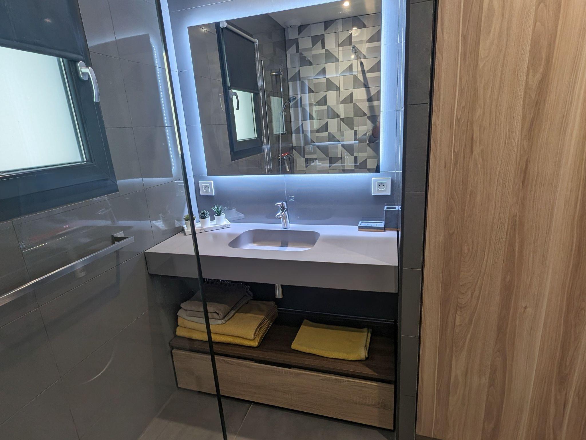 Elegantes Badezimmer ???? : Das Badezimmer ist mit einer wunderschönen Dusche und einem Waschbecken ausgestattet, mit Handtüchern, die für Ihren Komfort bereitgestellt werden. Die Toilette ist für mehr Privatsphäre separat.