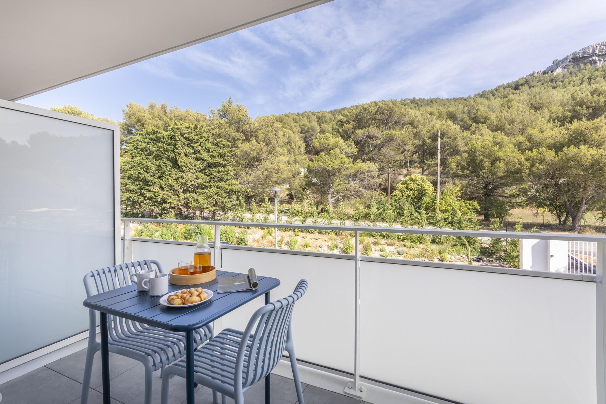 Eine 2023 fertiggestellte Residenz im Herzen der Provence, nur 6 km vom Hafenstädtchen Cassis entfernt! Die voll ausgestatteten und klimatisierten Wohnungen verfügen über Terrassen oder Balkone, damit Sie die Sonne der Region genießen und draußen essen können. Entdecken Sie die Umgebung und kosten die Köstlichkeiten der Region. Cassis mit seinen engen Gassen und malerischen Quartiers mit Straßencafés und Restaurants und dem Hafen, der an St. Tropez in den 60er Jahren erinnert, liegt zwischen Marseille und Toulon. Kiesstrände, Felsbuchten, Pinienwälder und Weinberge bestimmen hier das Panorama. Entlang der Klippen der Höhenstraße eröffnet sich ein großartiger Ausblick auf das 350 m tiefer liegende Meer und die Felsen der Calanques, darunter der bekannteste, Cap Canaille. Das Massiv der Calanques besteht aus einer 400m dicken Kalksteinschicht und gehört zu den schönsten Landschaften, die Frankreich zu bieten hat. Unter Wasser haben sich Täler gebildet, durch die kleine Fjorde mit wunderschöne natürliche Buchten entstanden sind. Entdecken Sie tagsüber die Heidelandschaft, malerische Fischerdörfchen oder wandern Sie durch die Calanques, bevor Sie sich im Pool der Residenz erfrischen. Wassersportler sollten die Strände von Cassis oder La Ciotat besuchen, die nur wenige Kilometer entfernt liegen.
